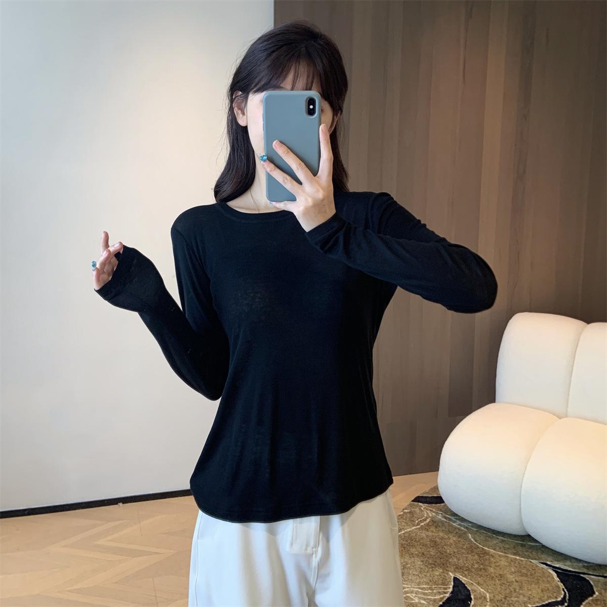 El diseño de cuello redondo es discreto cuando se usa solo, y la parte posterior del escote está ribeteada con doble costura de cadena.