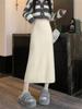 Falda informal de punto, de cintura alta, con abertura en forma de A, recta, para otoño e invierno de 2024, de longitud media.