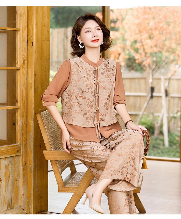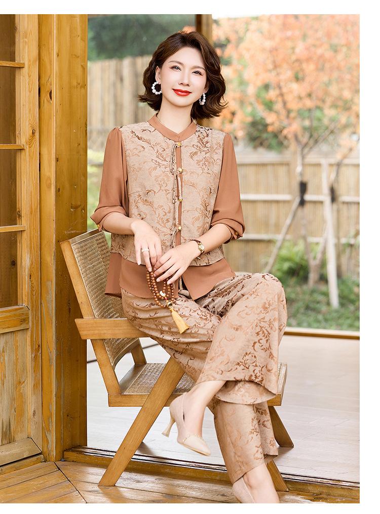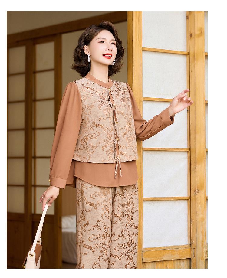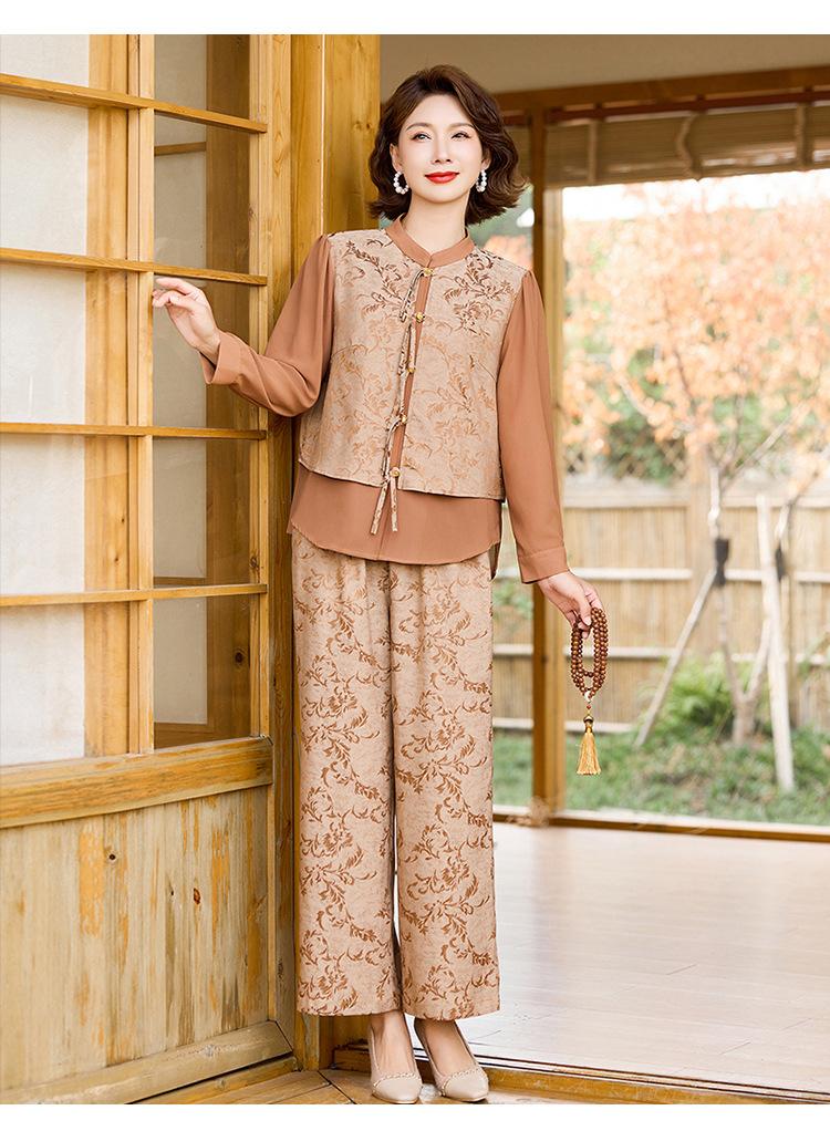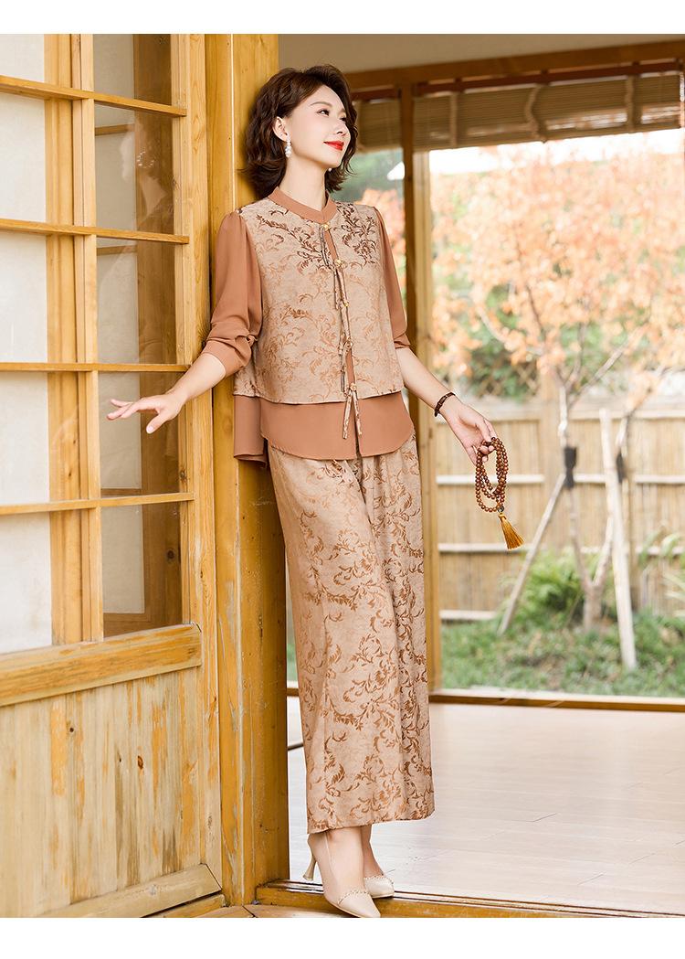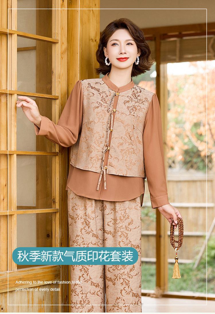 Traje de estilo nacional chino nuevo de otoño para madre de mediana edad 2024, nuevo temperamento extranjero, ropa de mujer de mediana edad, conjunto noble de dos piezas