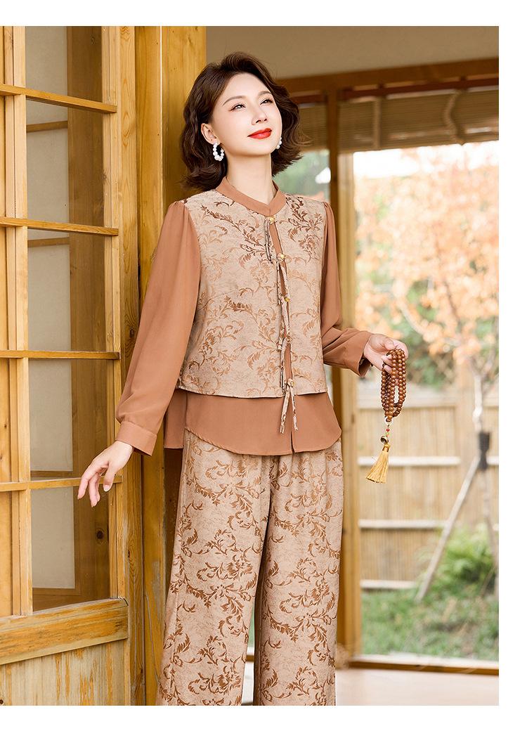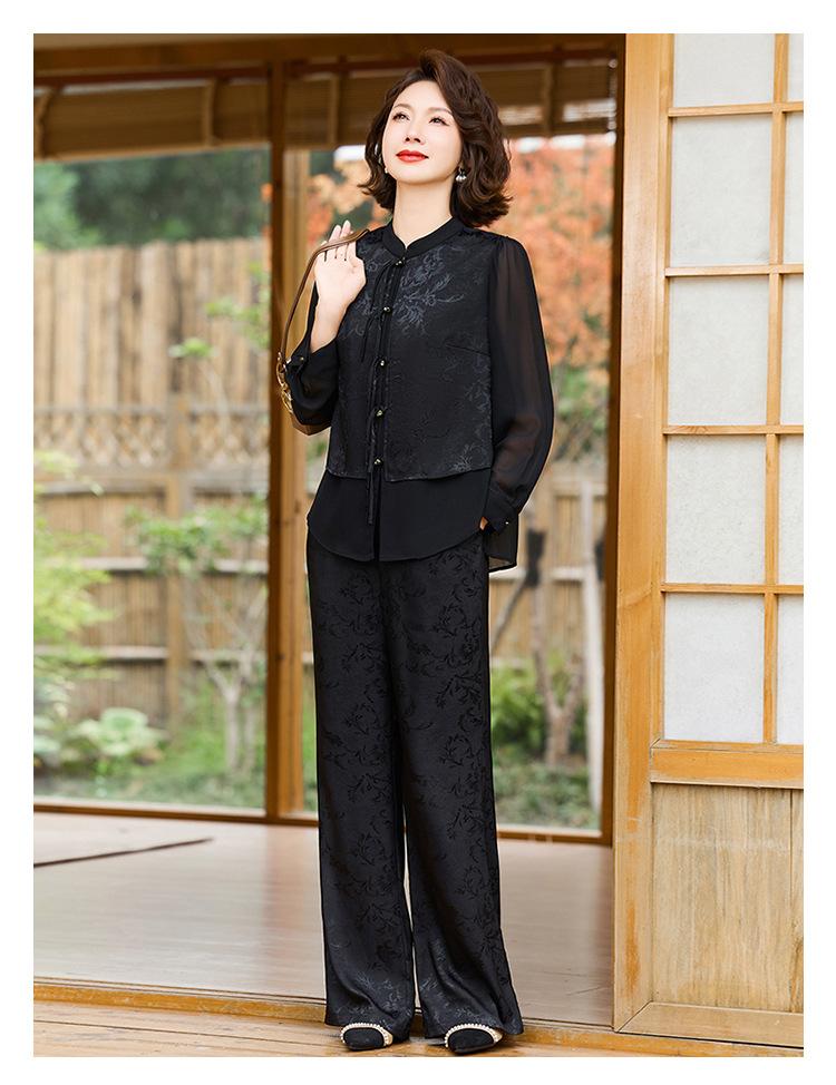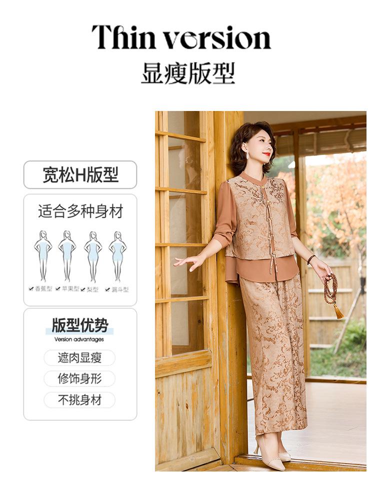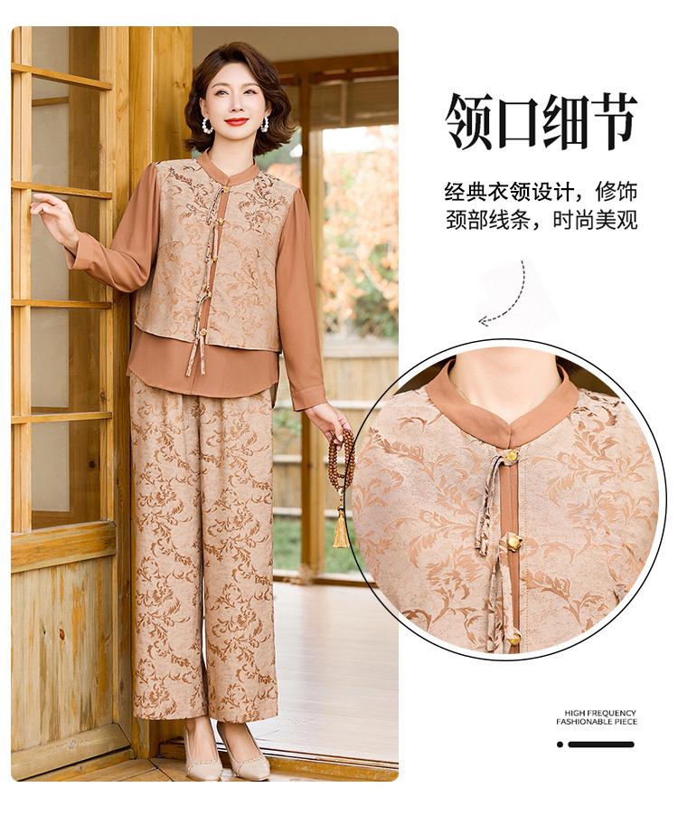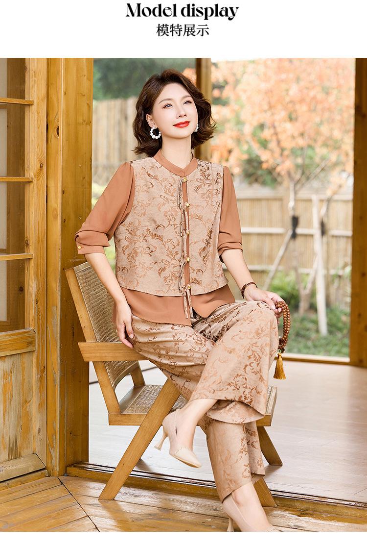 Traje de estilo nacional chino nuevo de otoño para madre de mediana edad 2024, nuevo temperamento extranjero, ropa de mujer de mediana edad, conjunto noble de dos piezas