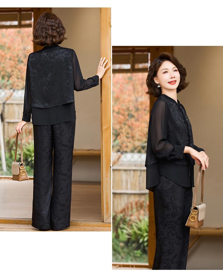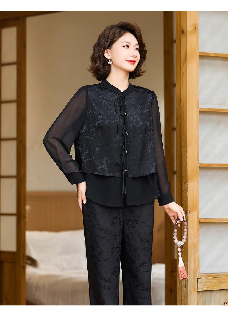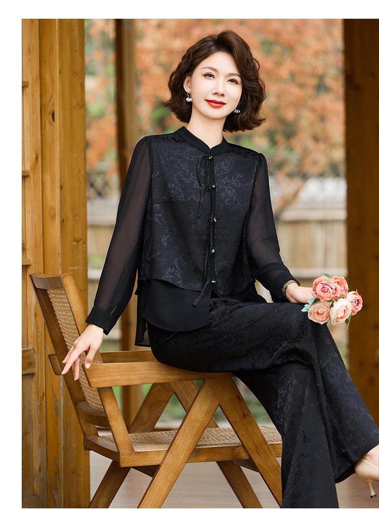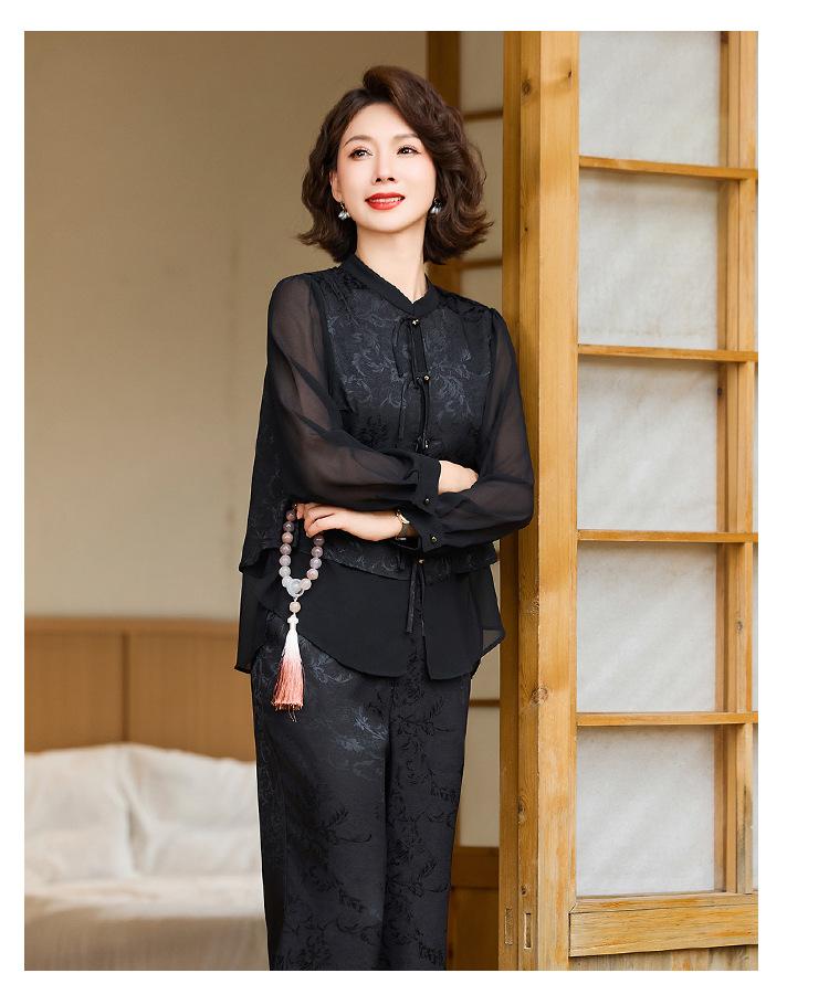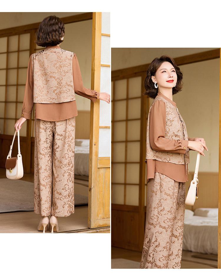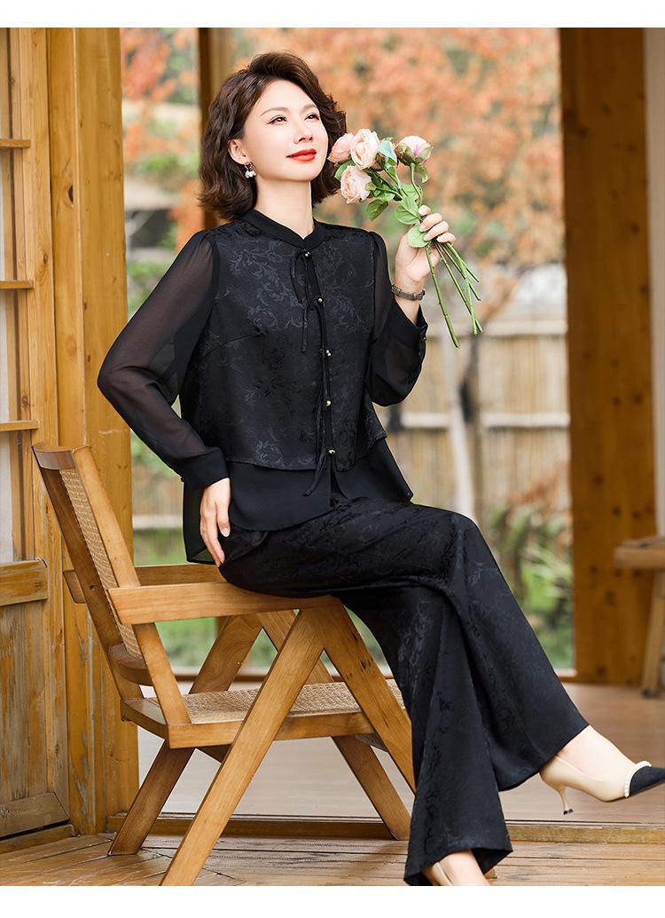 Traje de estilo nacional chino nuevo de otoño para madre de mediana edad 2024, nuevo temperamento extranjero, ropa de mujer de mediana edad, conjunto noble de dos piezas