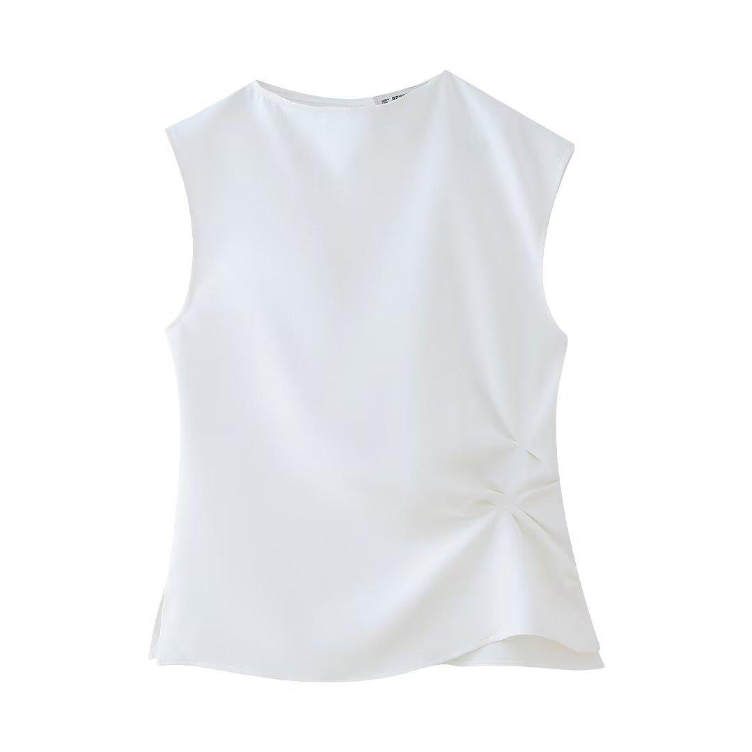 Blusa de crepé decorativa plisada de estilo europeo y americano para mujer, verano 2024, comercio transfronterizo de Amazon