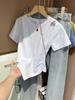Camiseta de manga corta con diseño calado para mujer, nueva camiseta de verano adelgazante, versátil, irregular, corta, ajustada, de algodón