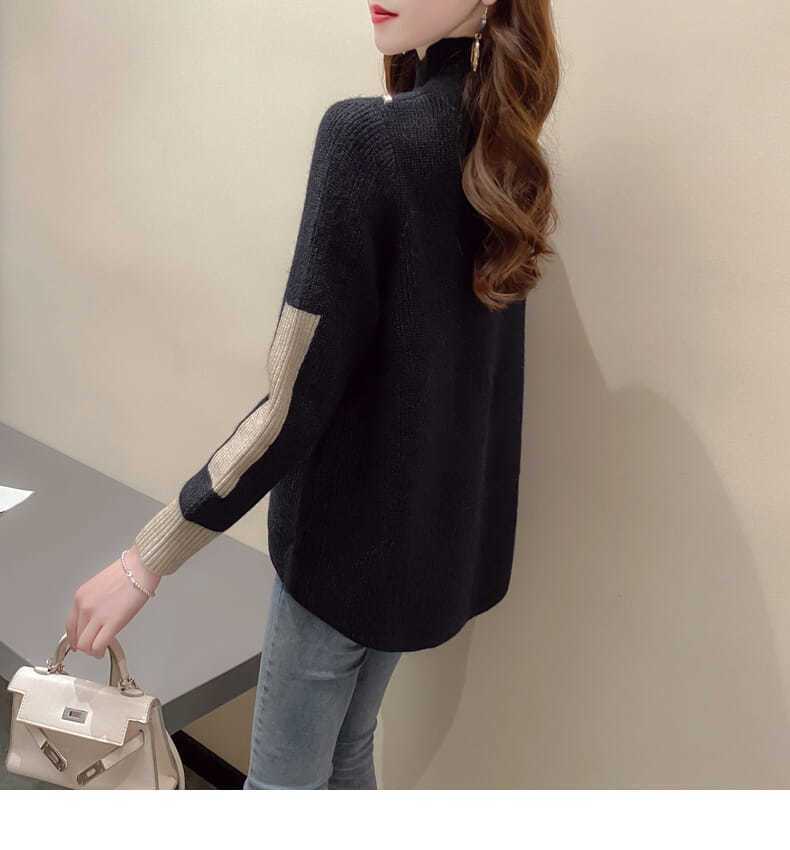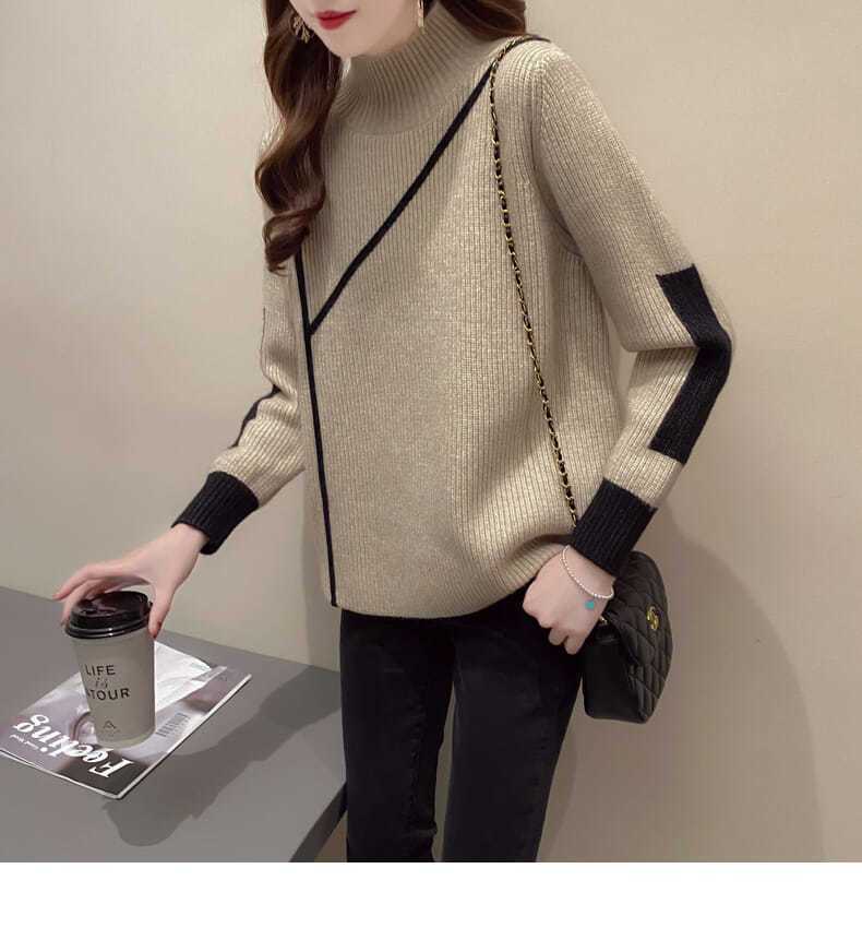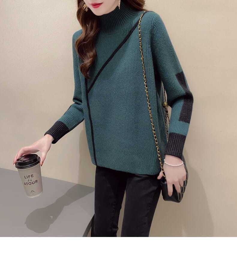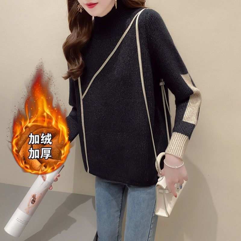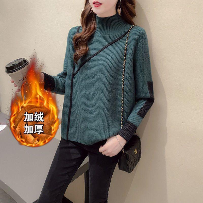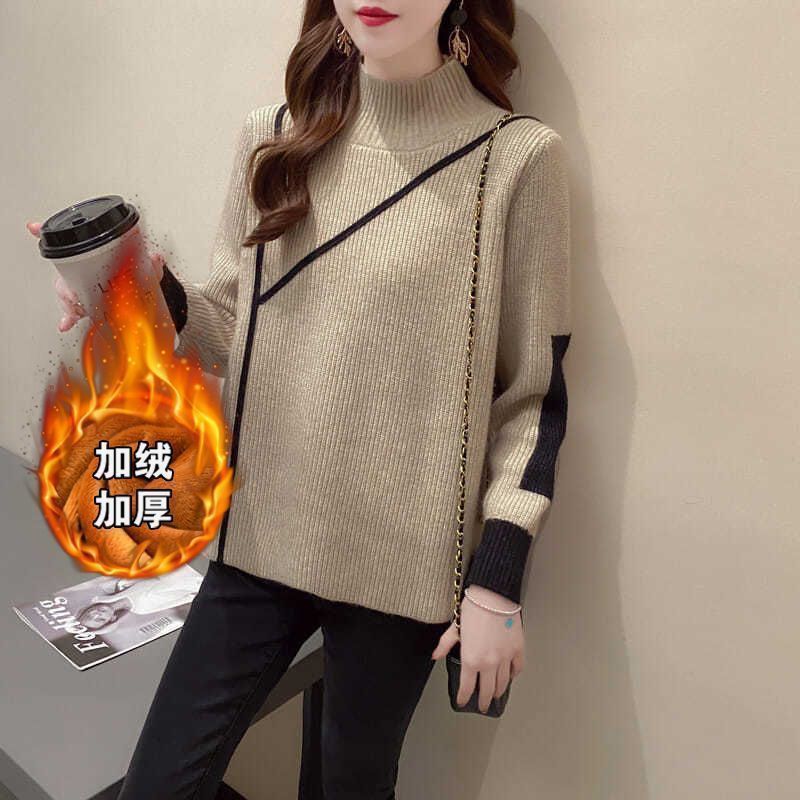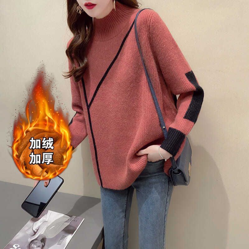 Suéter de cuello alto para mujer, cálido, forro polar, grueso, suelto, suéter de punto interior, base superior de moda gruesa, otoño e invierno