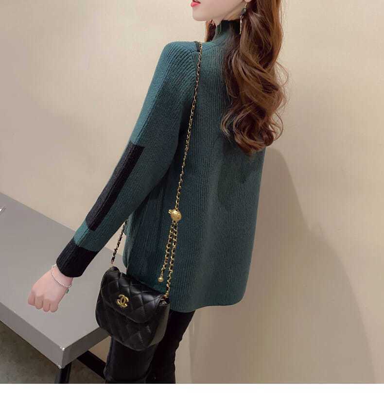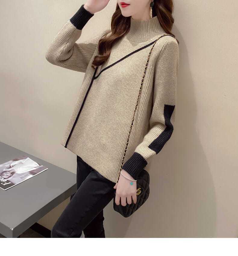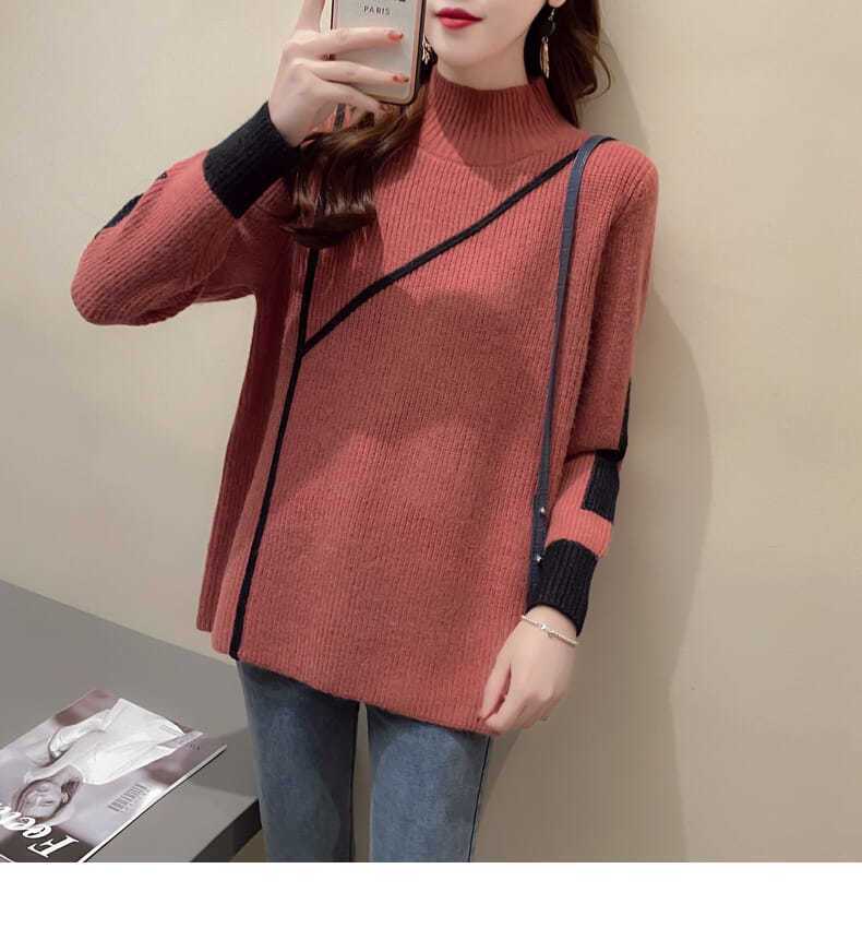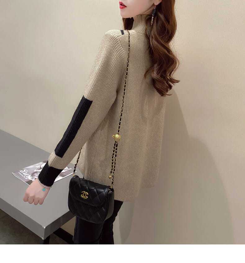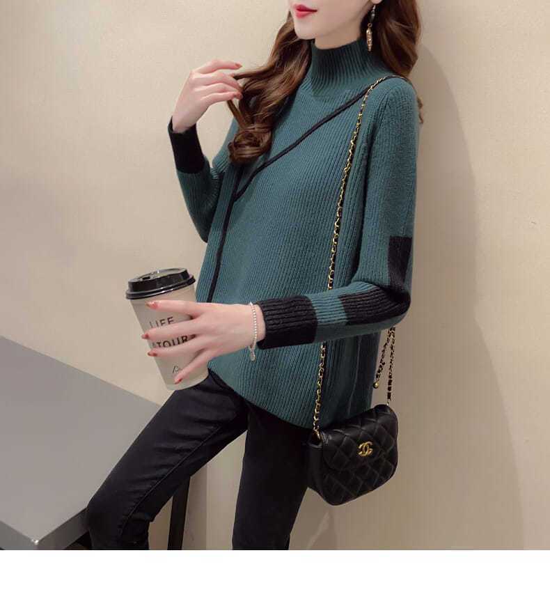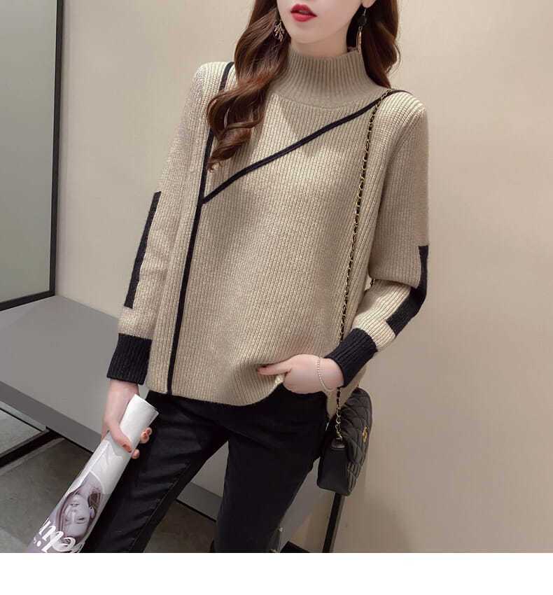 Suéter de cuello alto para mujer, cálido, forro polar, grueso, suelto, suéter de punto interior, base superior de moda gruesa, otoño e invierno
