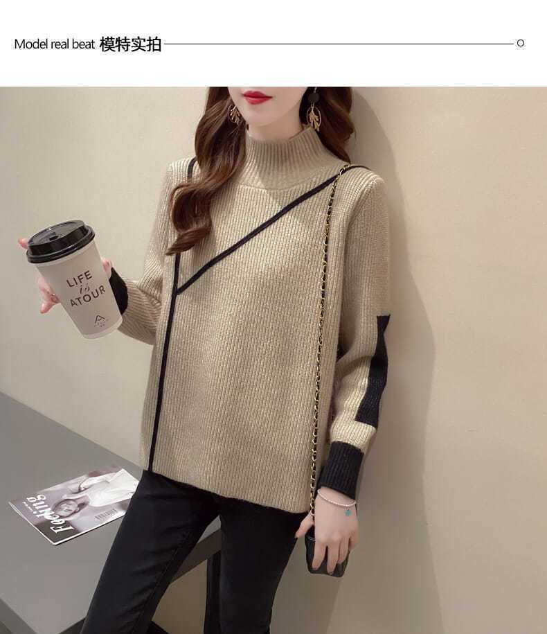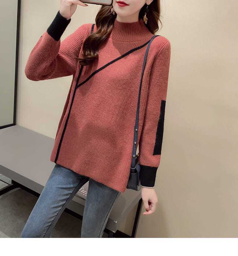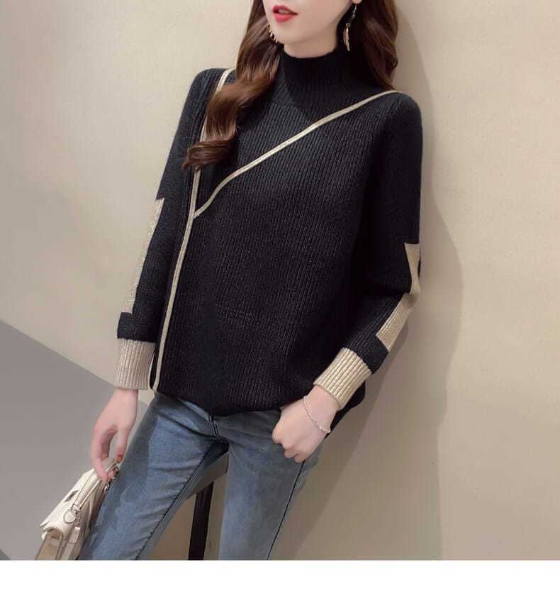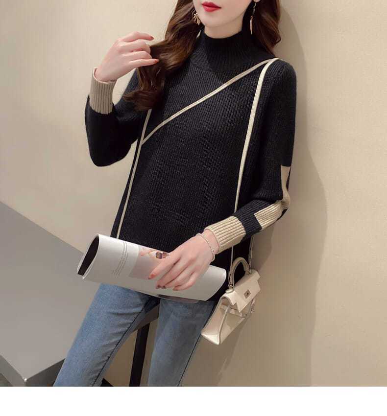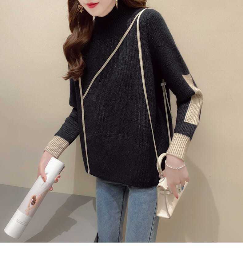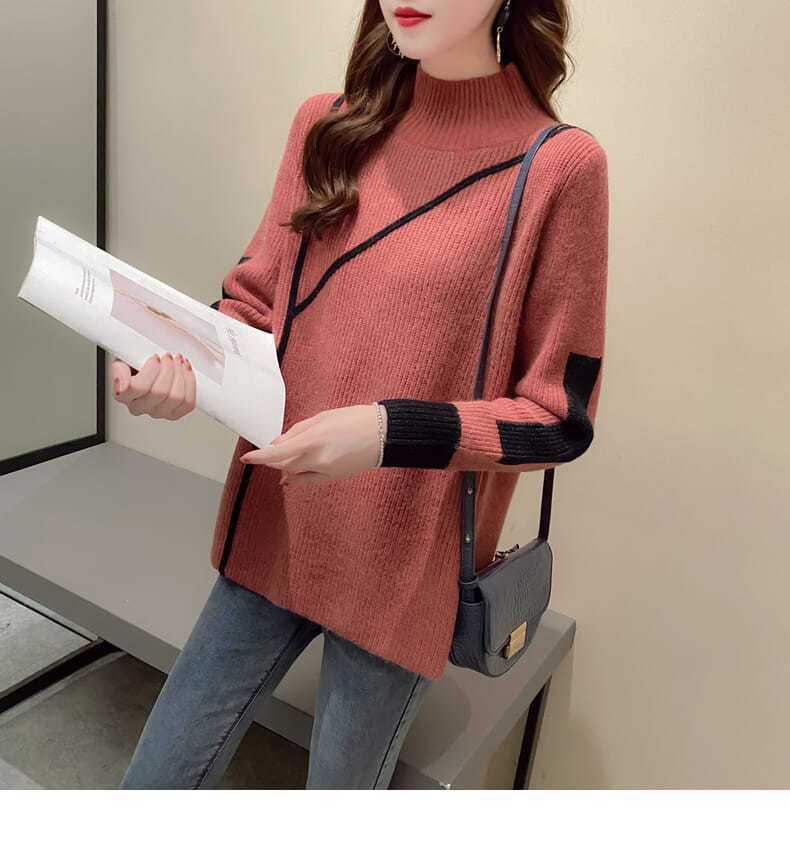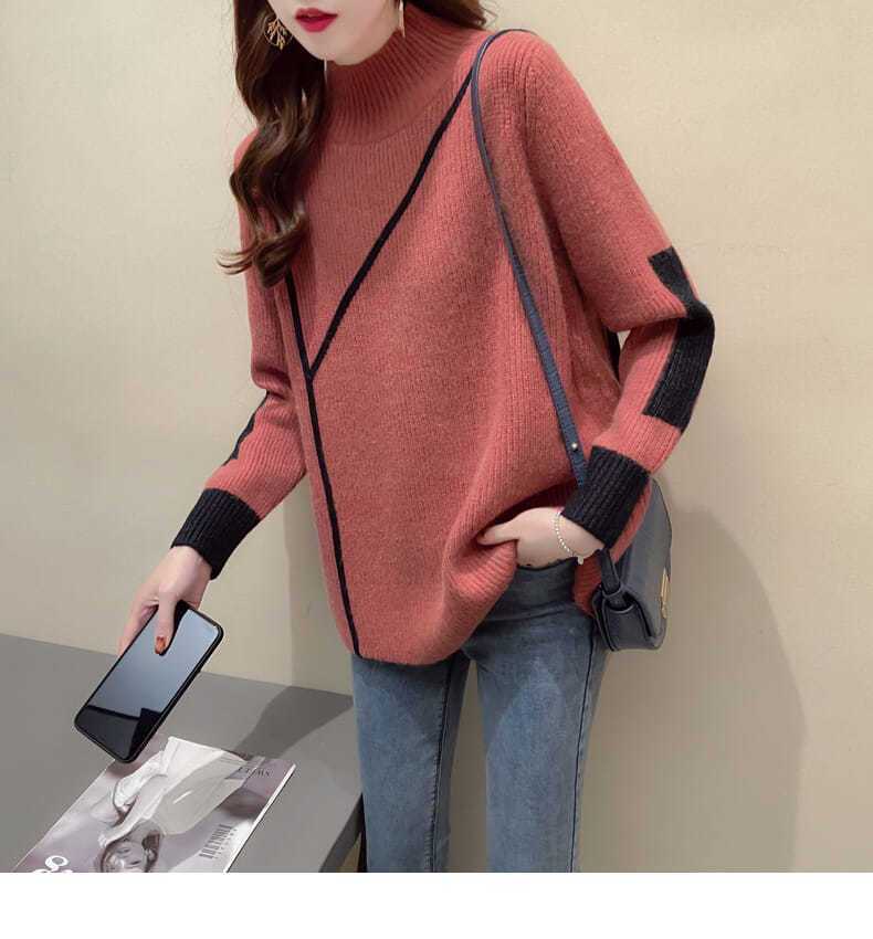 Suéter de cuello alto para mujer, cálido, forro polar, grueso, suelto, suéter de punto interior, base superior de moda gruesa, otoño e invierno