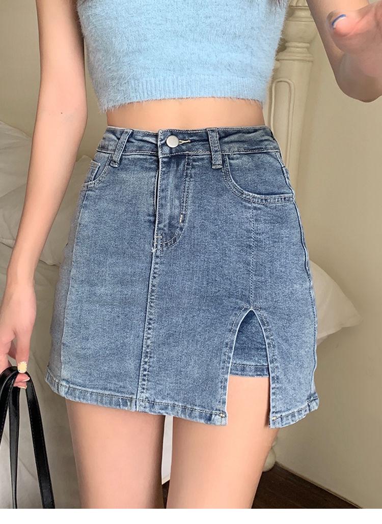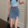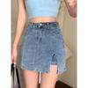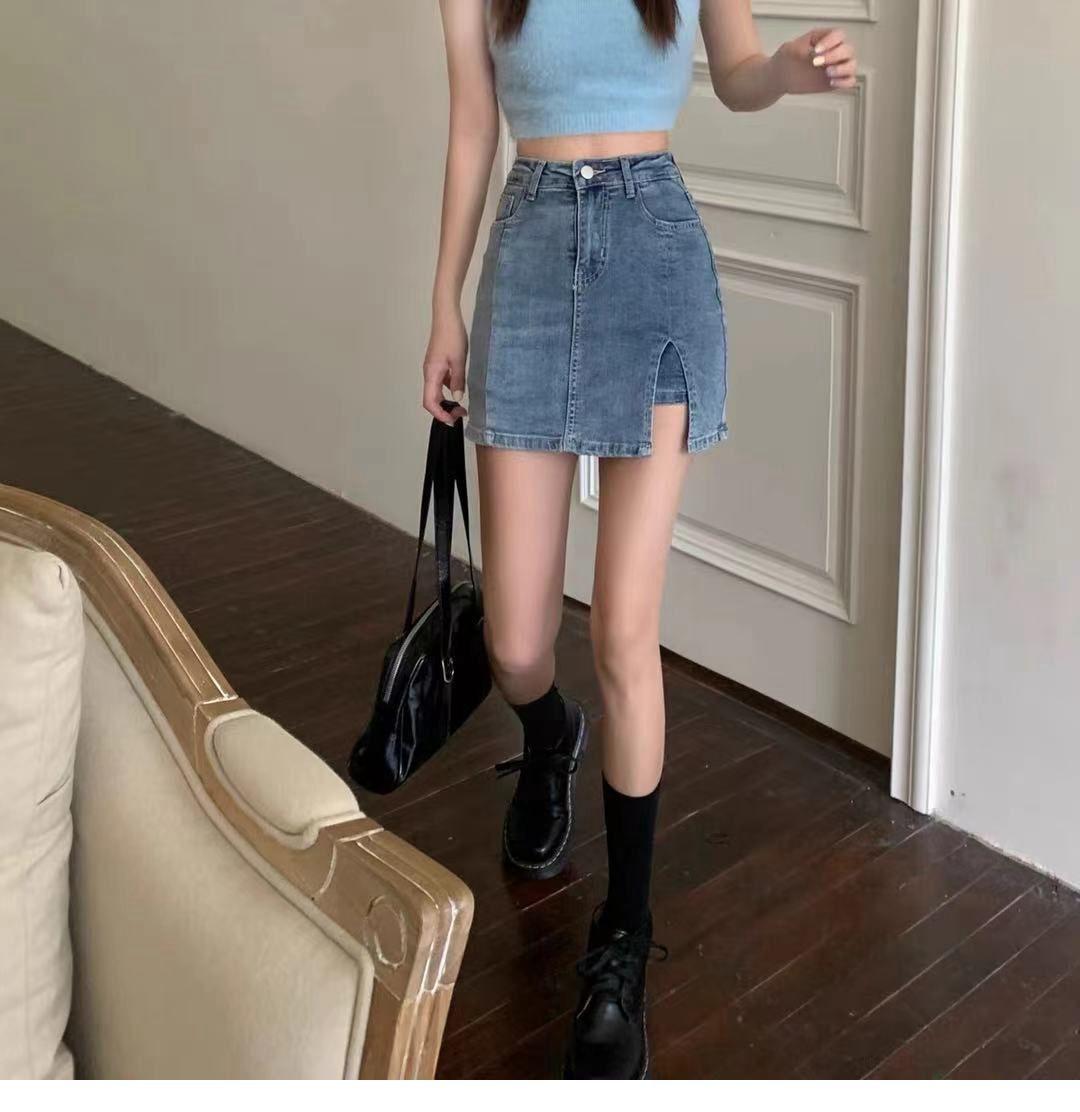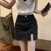 Falda vaquera negra Spice Girl, falda de corte A con abertura, falda de verano de cintura alta, falda corta antideslizante, falda que combina con todo para mujer