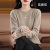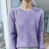 Suéter básico de otoño e invierno 2024 con cuello redondo corto y suelto de terciopelo de visón, suéter básico simple de color sólido sin lana para mujer