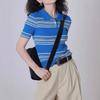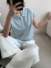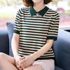 Suéter de punto con cuello polo fino estilo francés para mujer, elegante cárdigan corto de manga corta entallado de verano, combinable con todo.