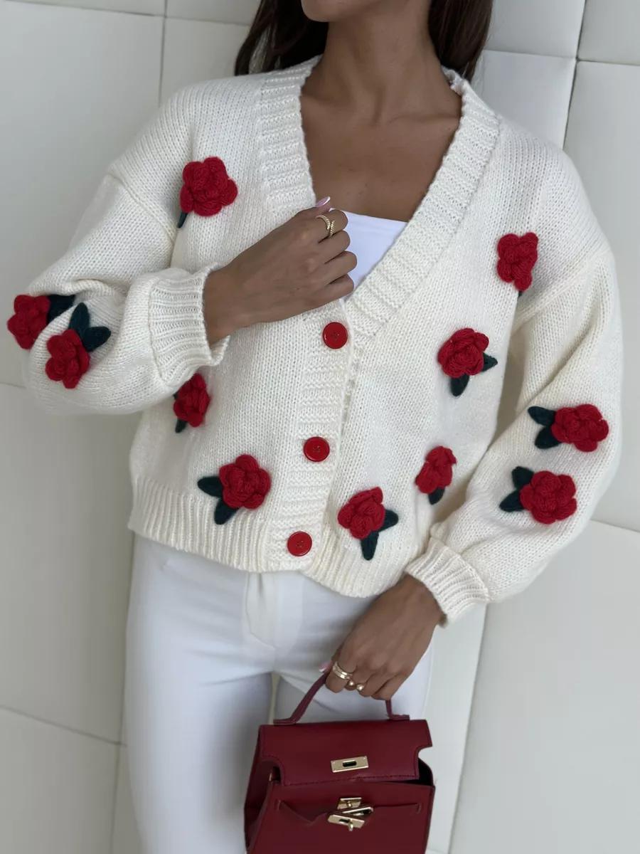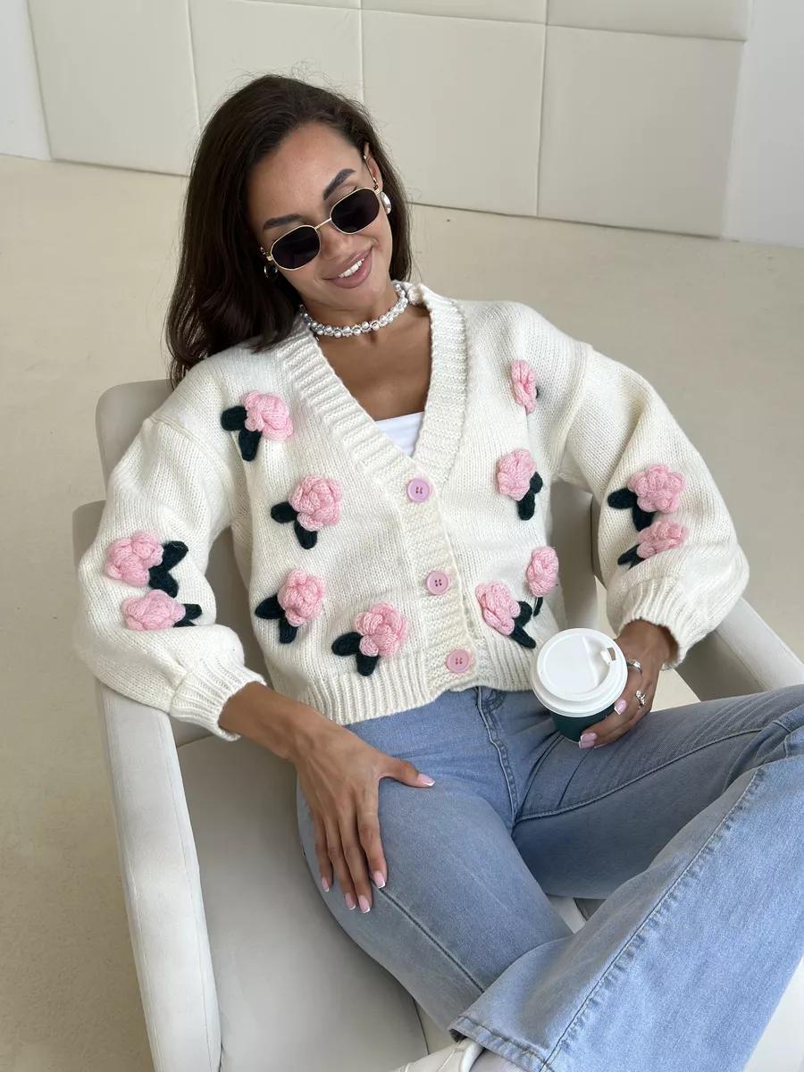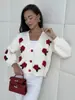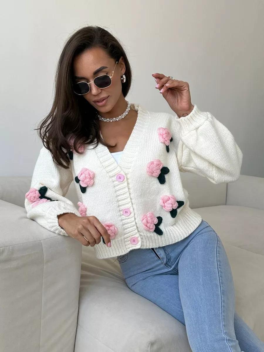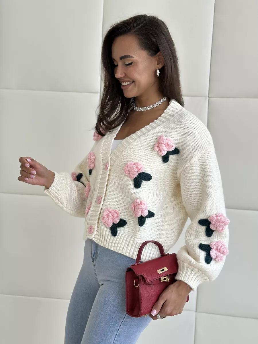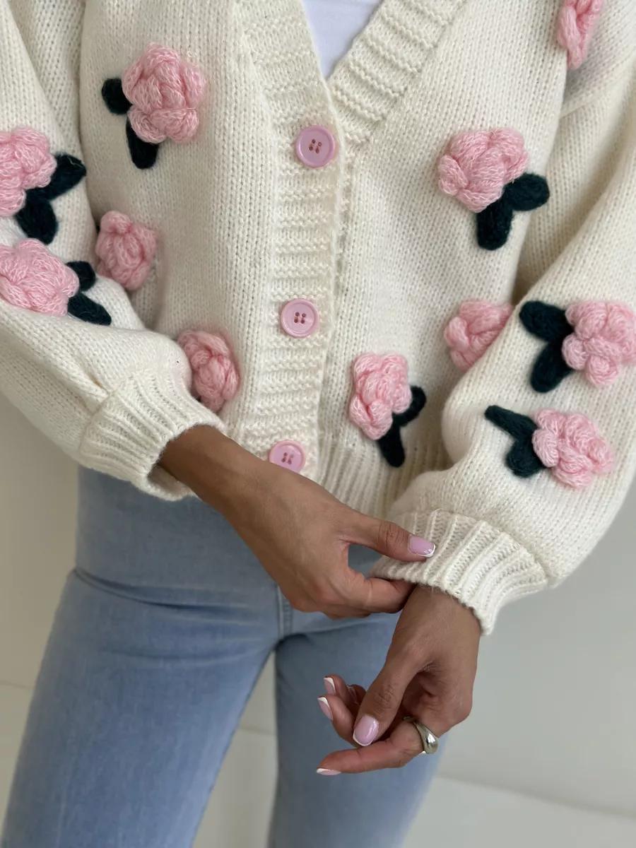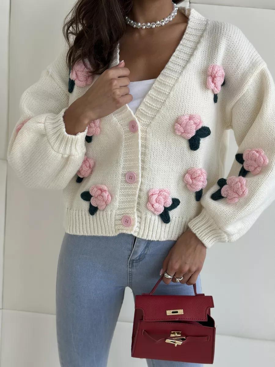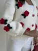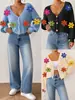 Cárdigan de punto con flores tridimensionales transfronterizo europeo y americano para mujer, otoño e invierno, nuevo, holgado, con cuello en V, chaqueta corta de moda