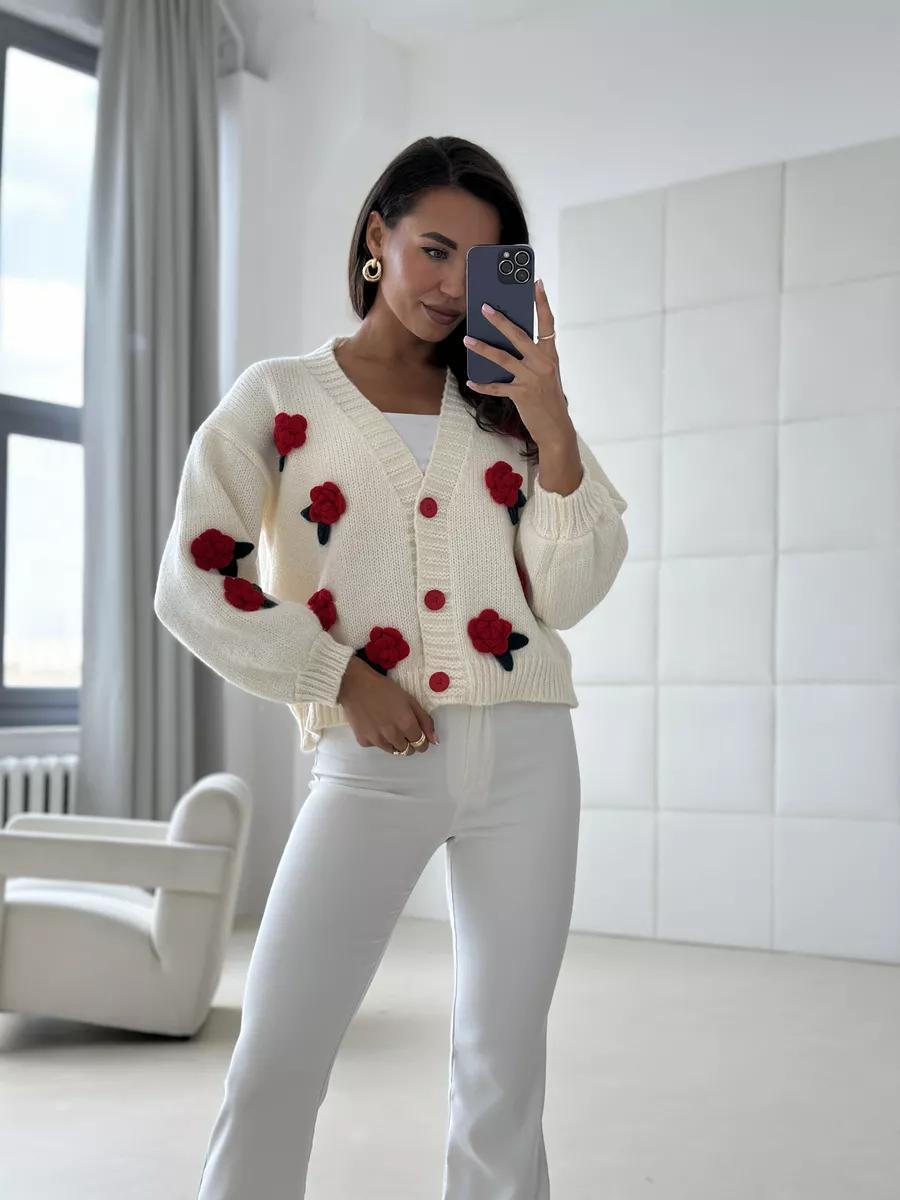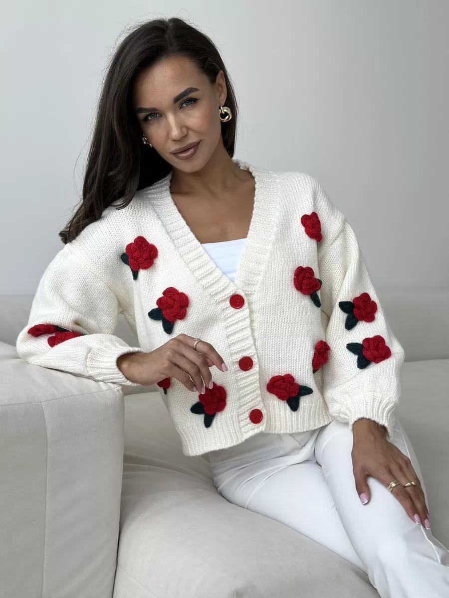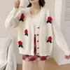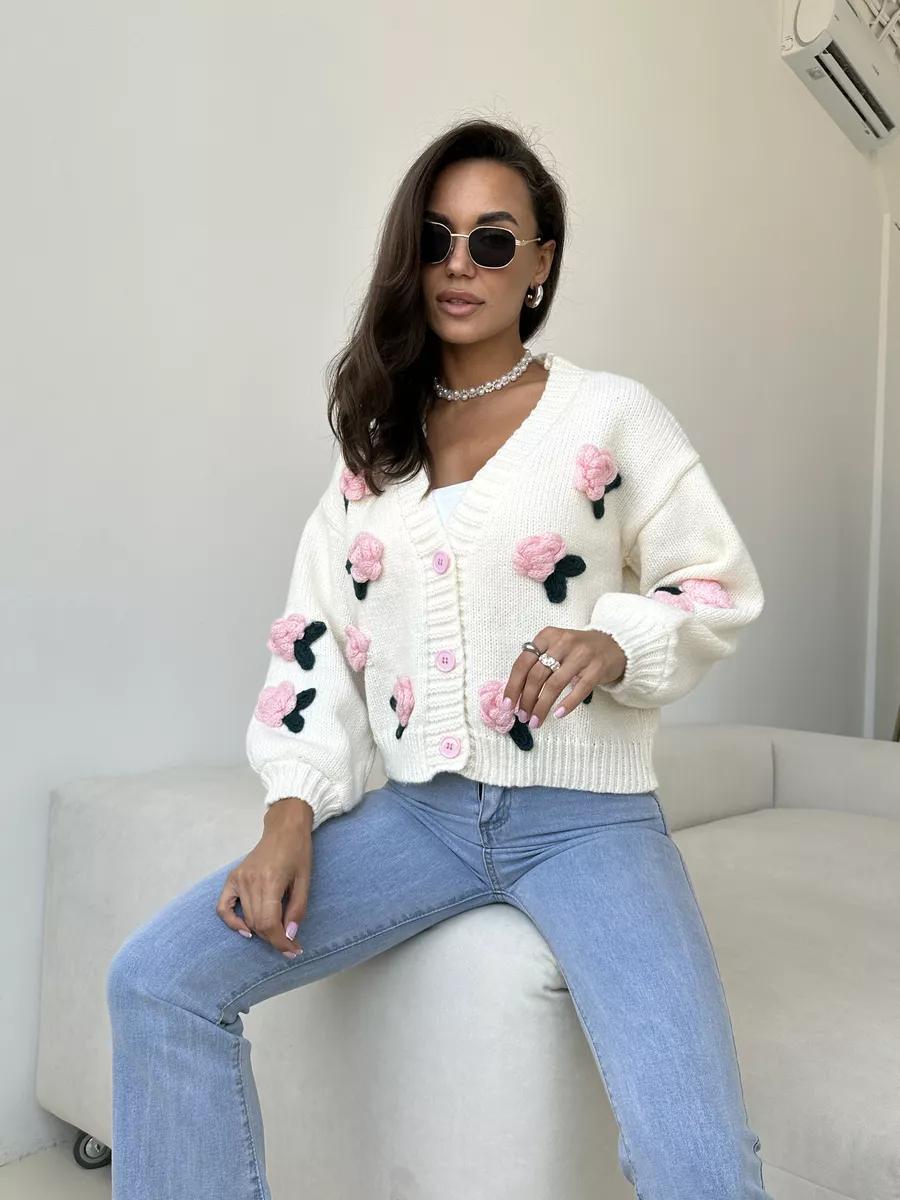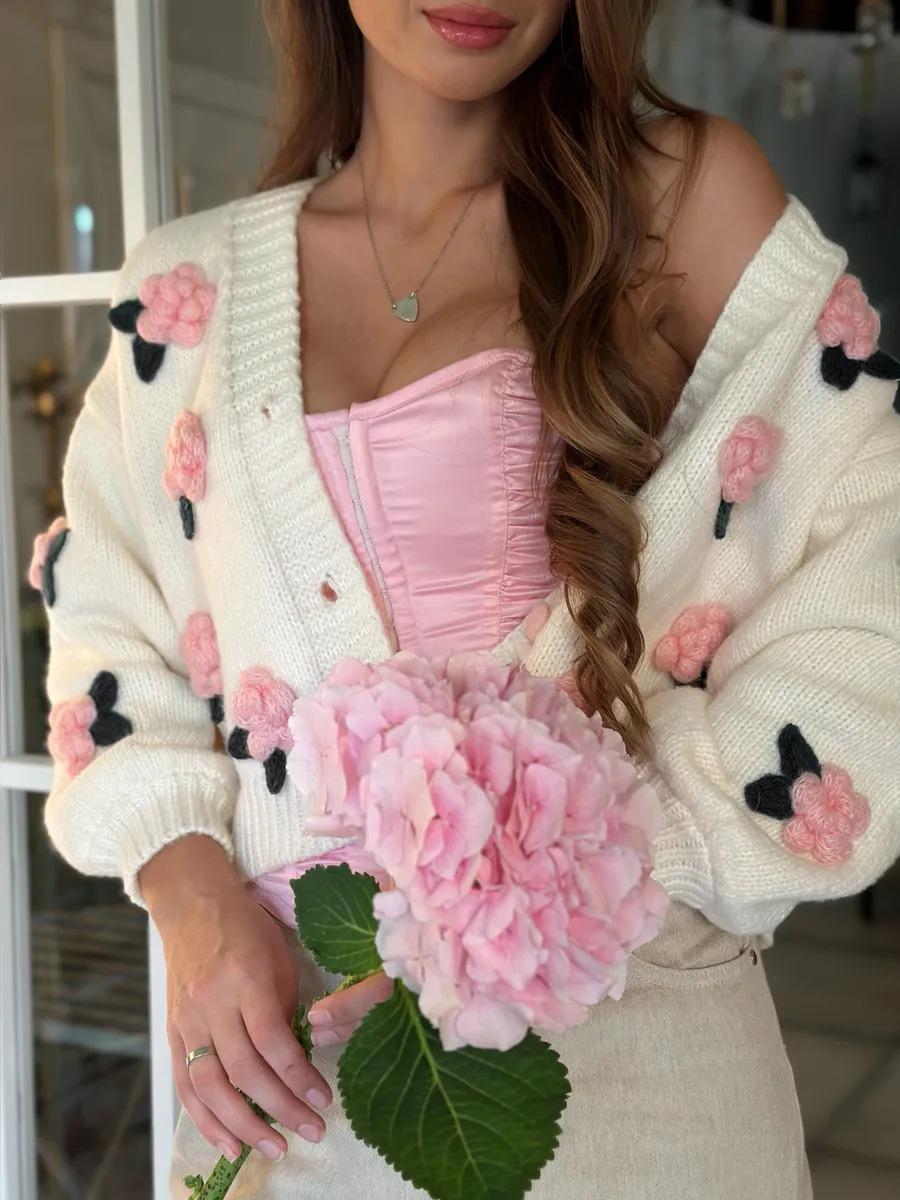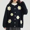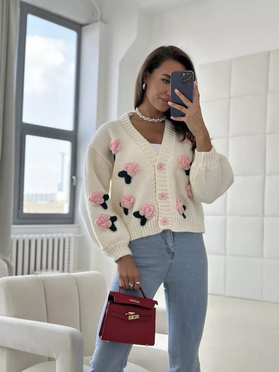 Cárdigan de punto con flores tridimensionales transfronterizo europeo y americano para mujer, otoño e invierno, nuevo, holgado, con cuello en V, chaqueta corta de moda
