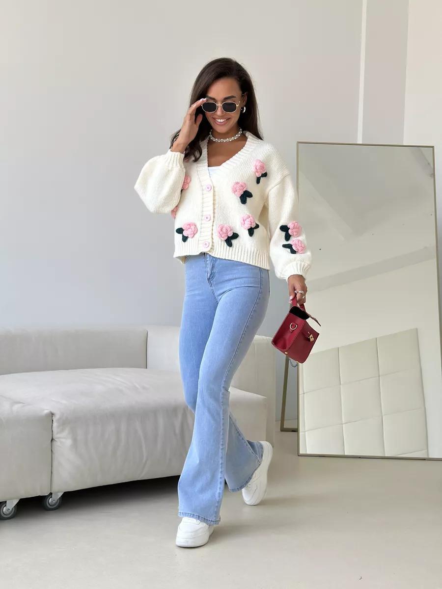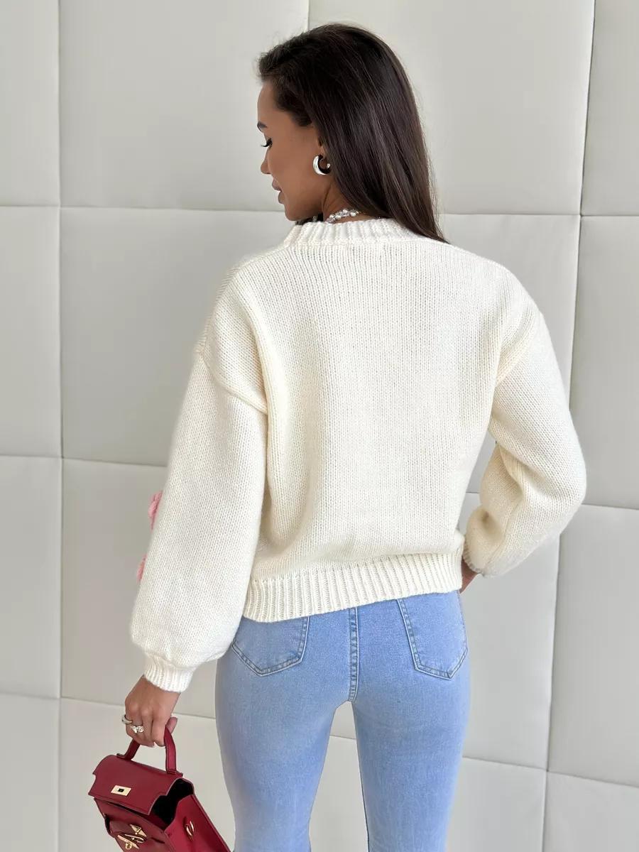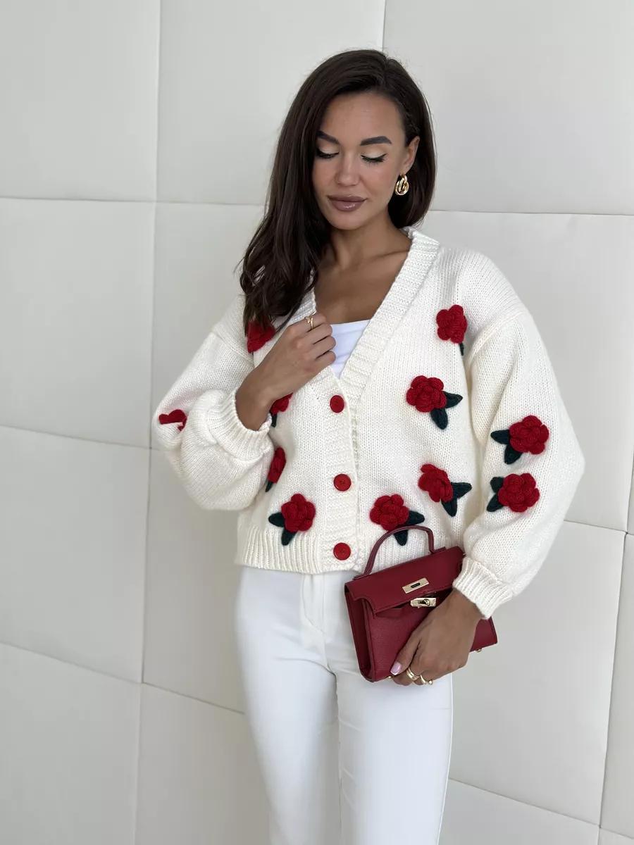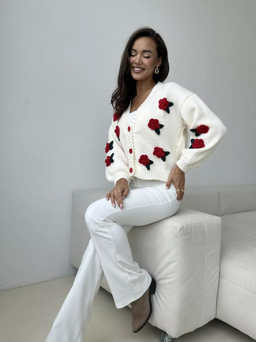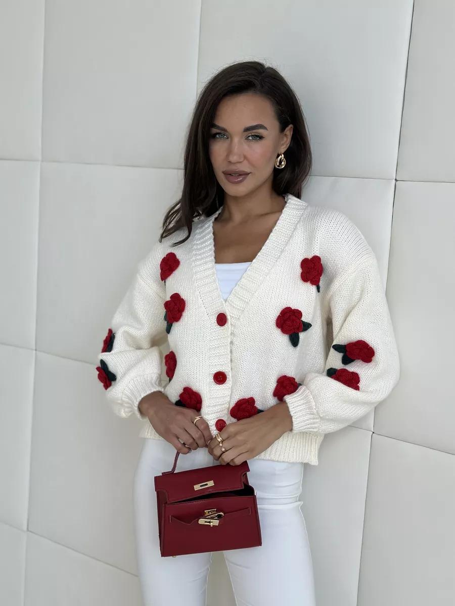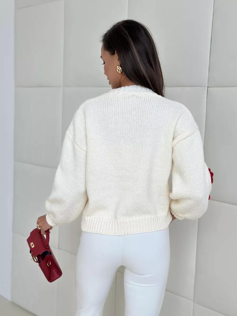 Cárdigan de punto con flores tridimensionales transfronterizo europeo y americano para mujer, otoño e invierno, nuevo, holgado, con cuello en V, chaqueta corta de moda