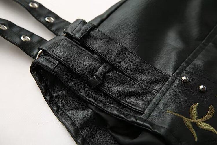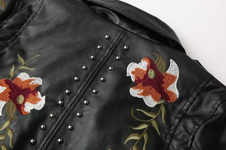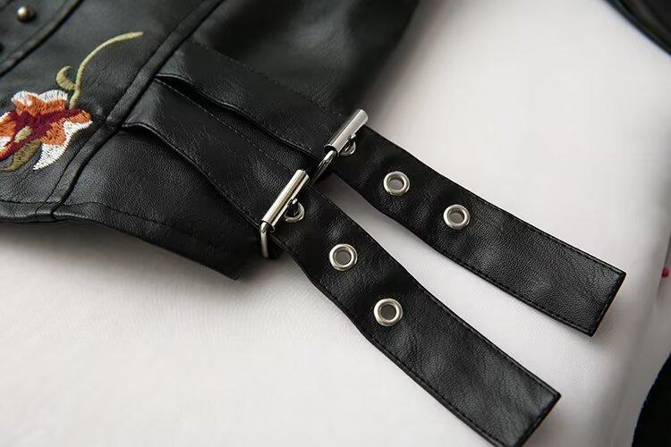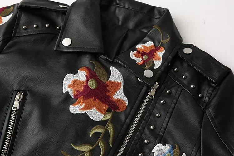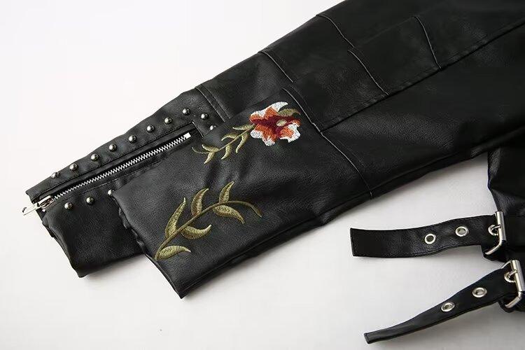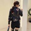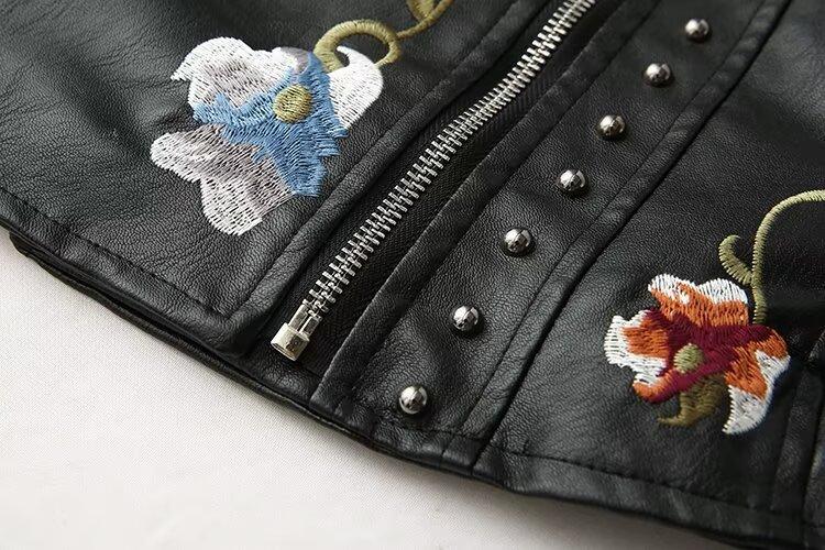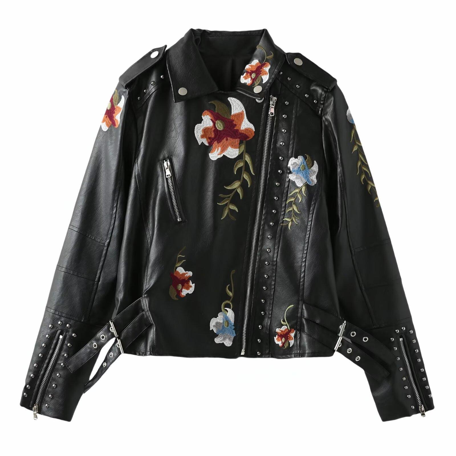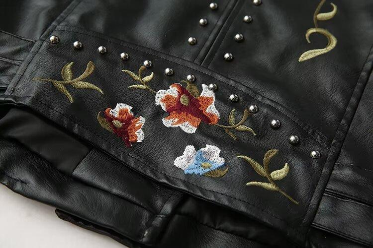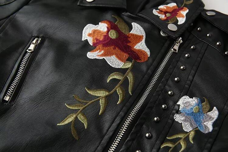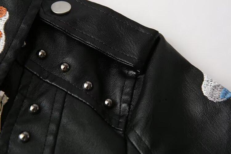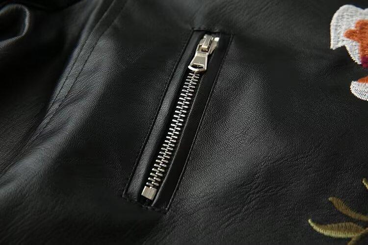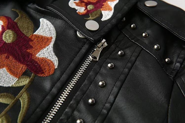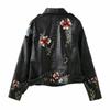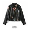 Chaqueta corta de cuero con bordado nuevo de otoño e invierno 2024 para mujer europea y americana de comercio exterior transfronterizo de Amazon, ropa de moto ajustada