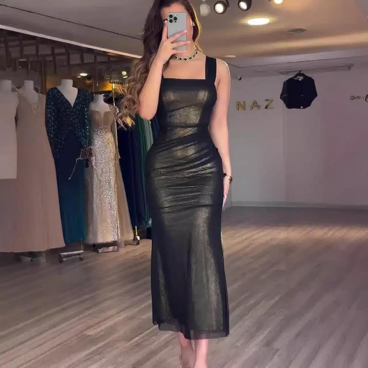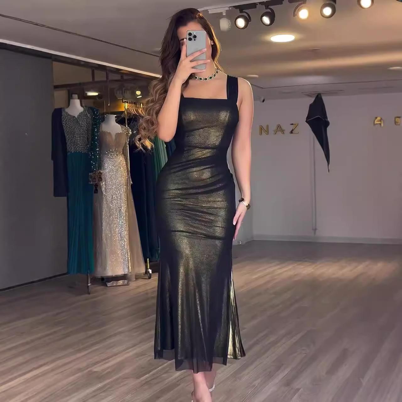 Falda de cola de pez con cuello cuadrado y tirantes finos para mujer, estilo Amazon europeo y americano, novedad de verano de 2024