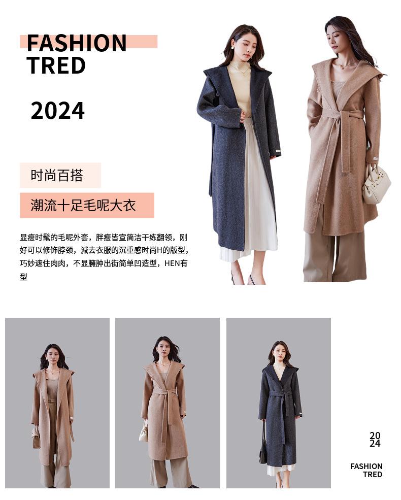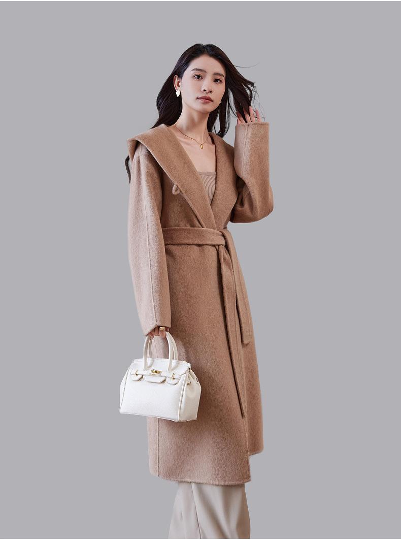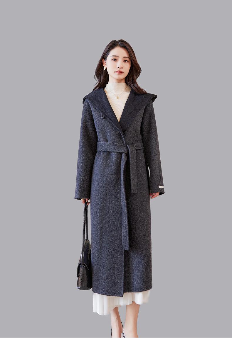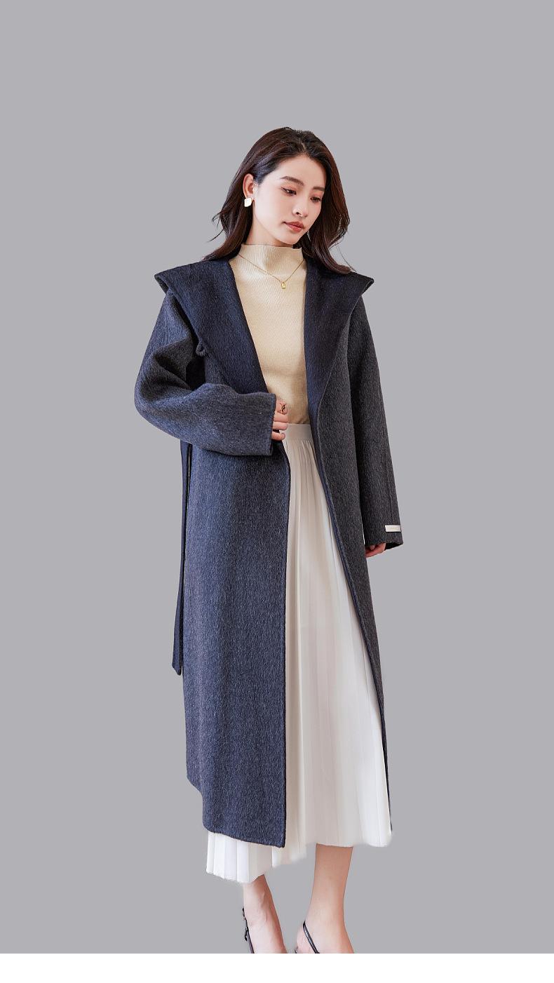 Abrigo de lana francés de principios de otoño, abrigo largo de invierno con capucha, abrigo de cachemira de alta calidad para mujer, abrigo de lana