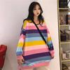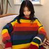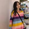 Suéter de rayas arcoíris para mujer, estilo coreano 2019, holgado, estilo holgado, fino, con borde cruzado para principios de otoño.