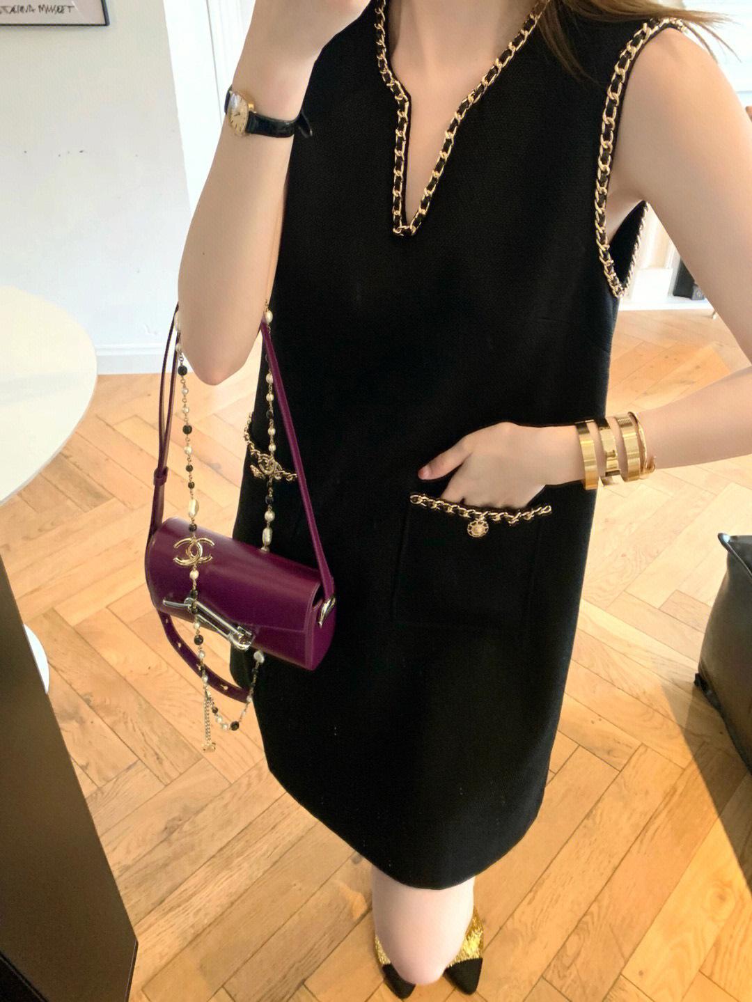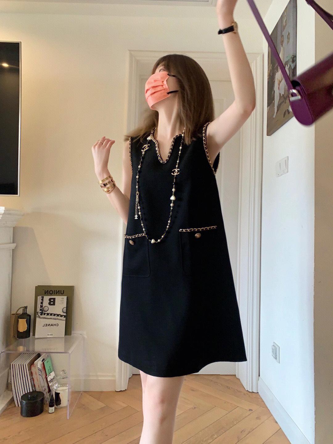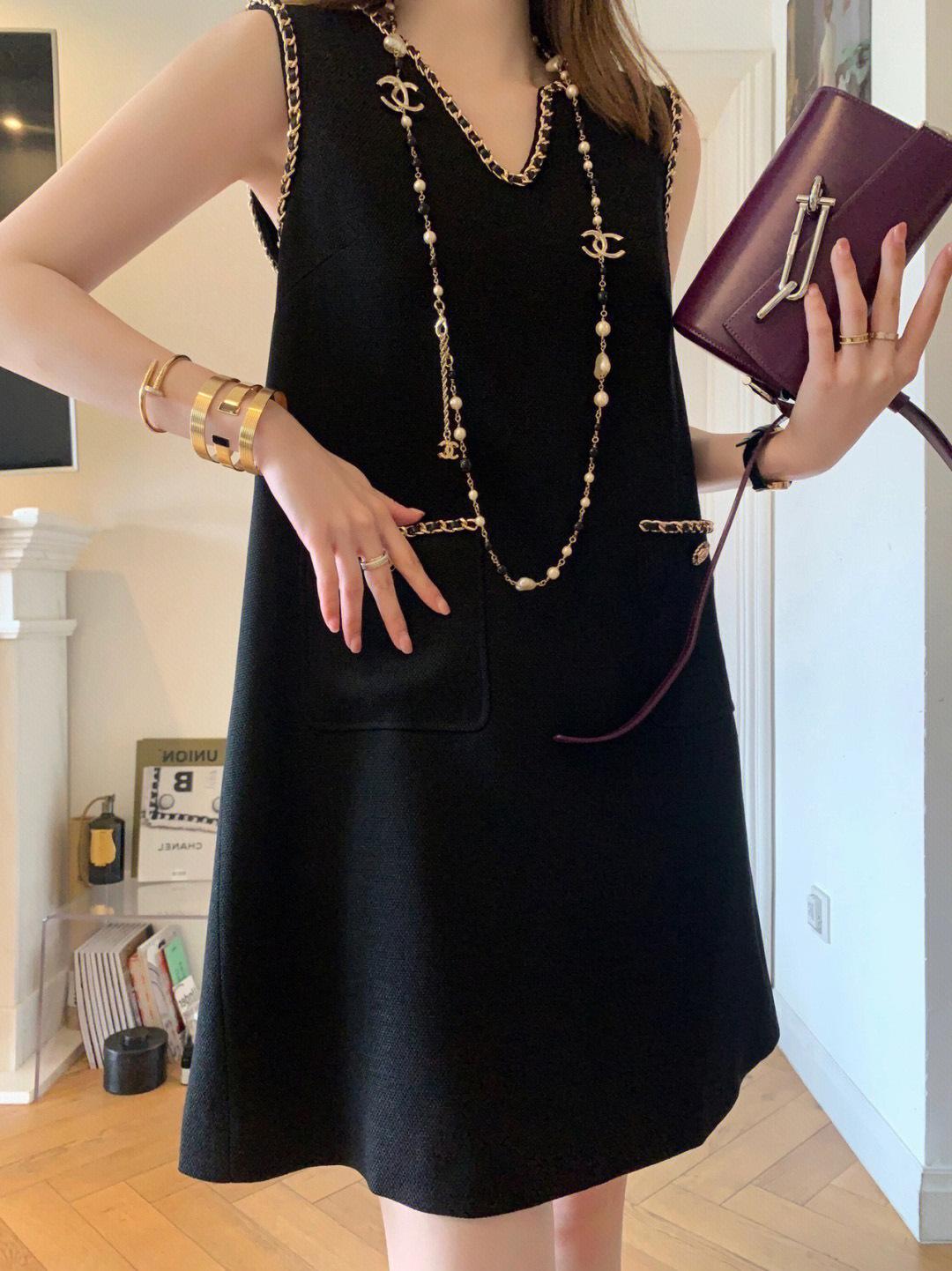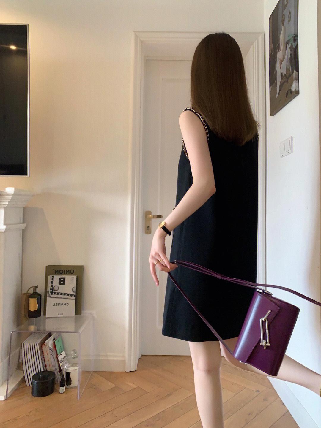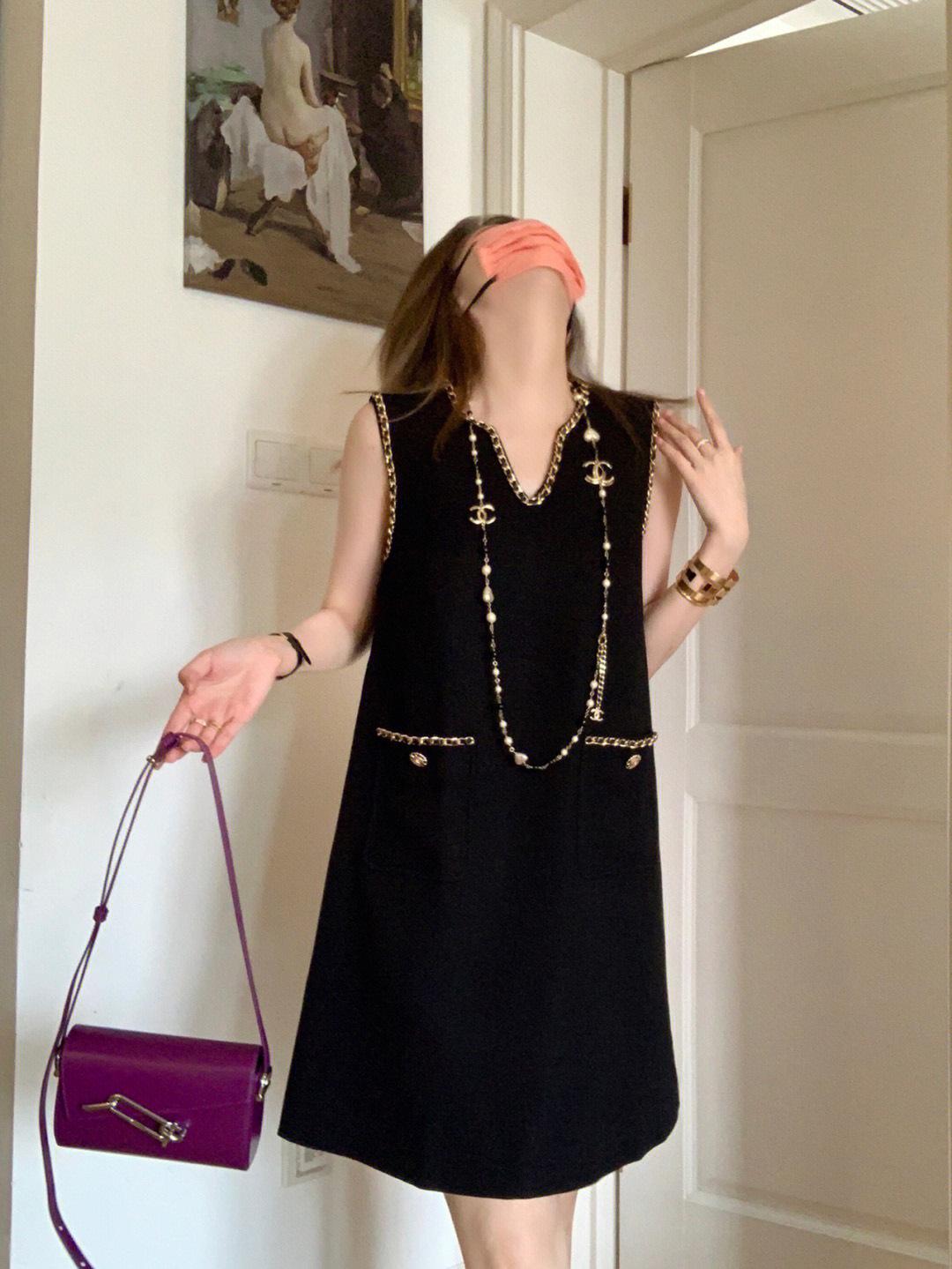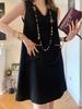 Ropa de verano para mujer, estilo francés, estilo Chanel, temperamento de alta gama, diosa, estilo Hepburn, vestido negro sin mangas.