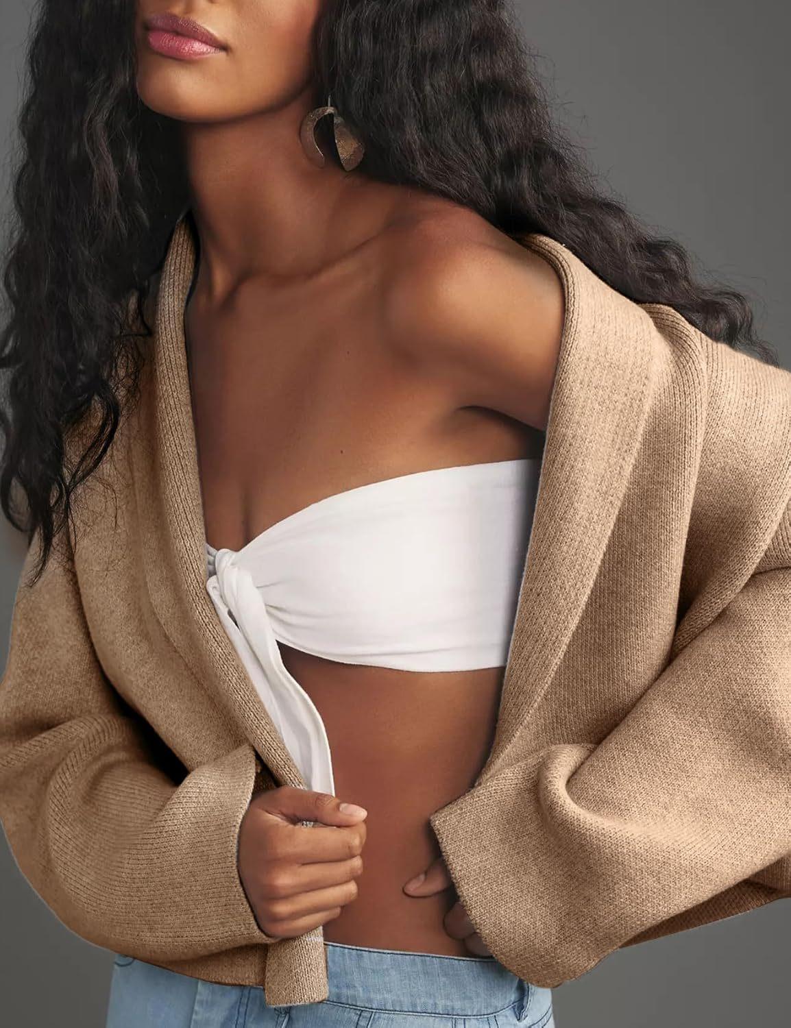 Chaqueta tipo chal de punto con cuello tipo bufanda, versátil, holgada, popular, de Amazon, ropa europea y americana, nueva moda de otoño