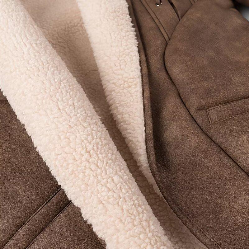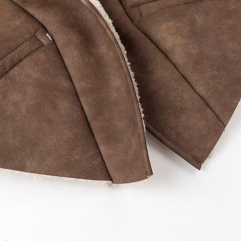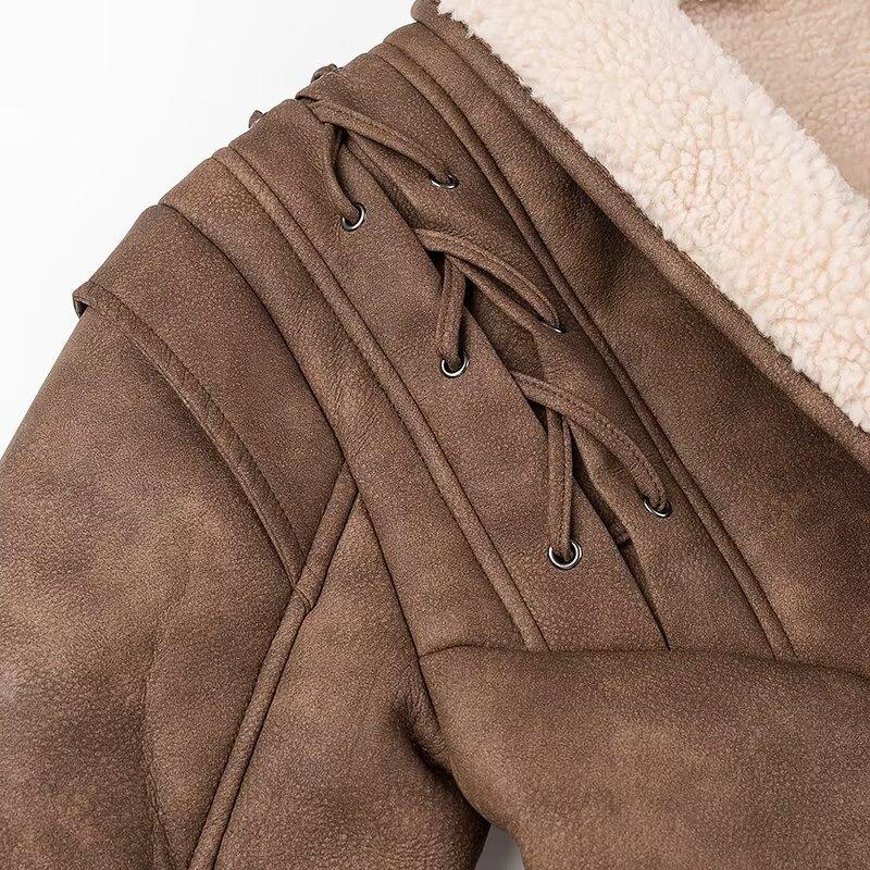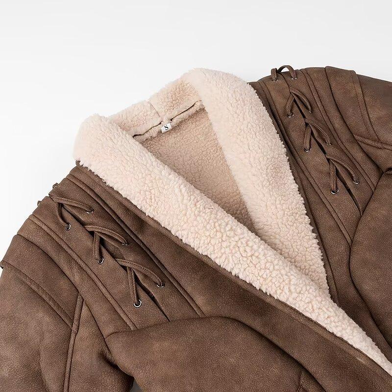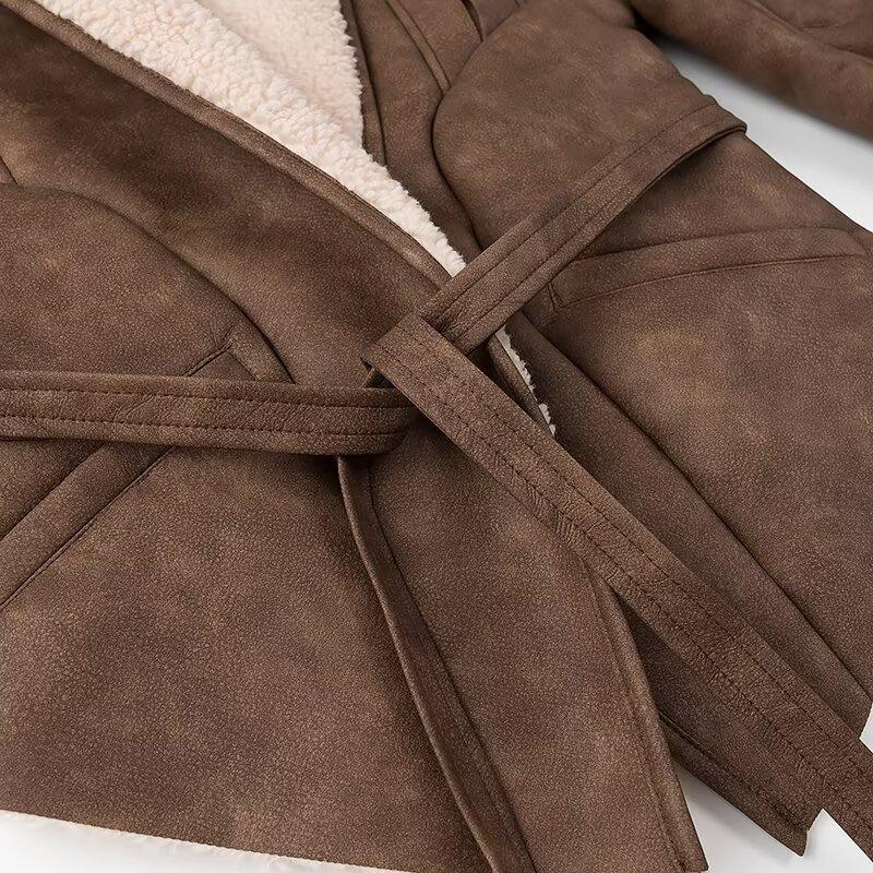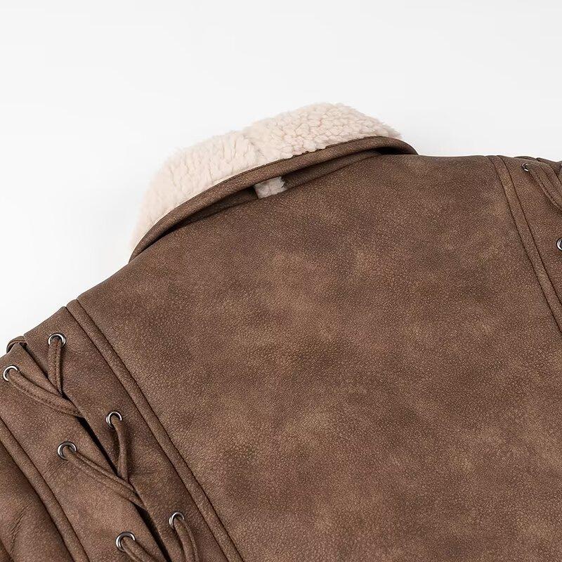 Abrigo de piel con cordones de moda urbana para mujer, otoño e invierno 2024, nuevo, europeo y americano, W091 2236