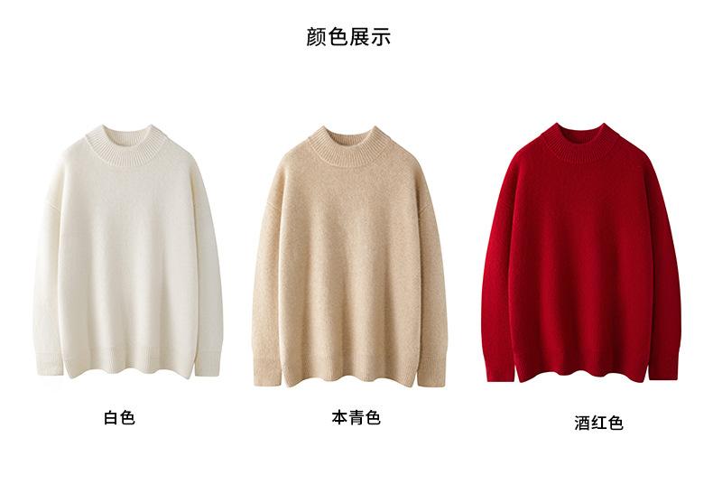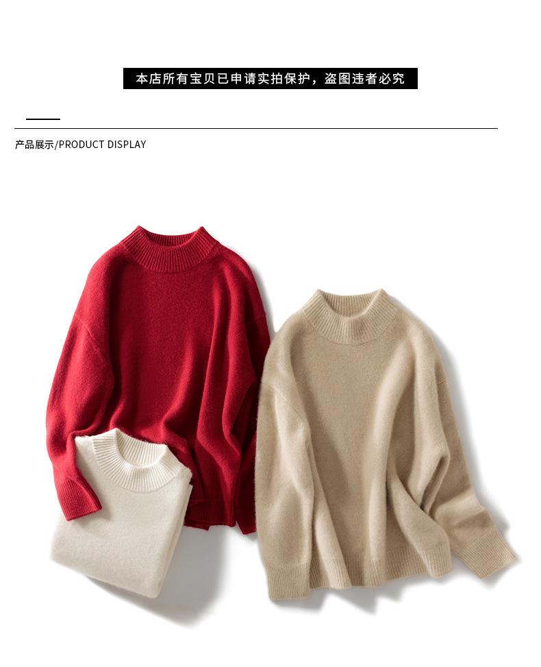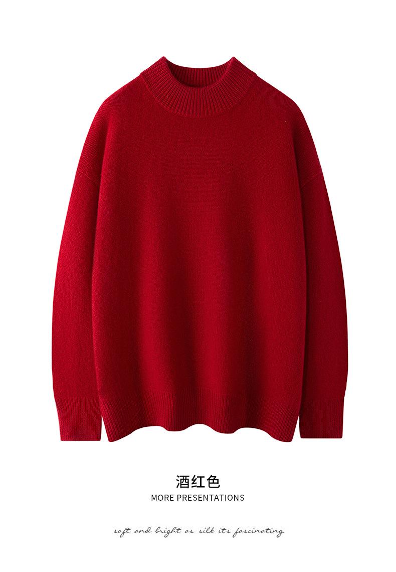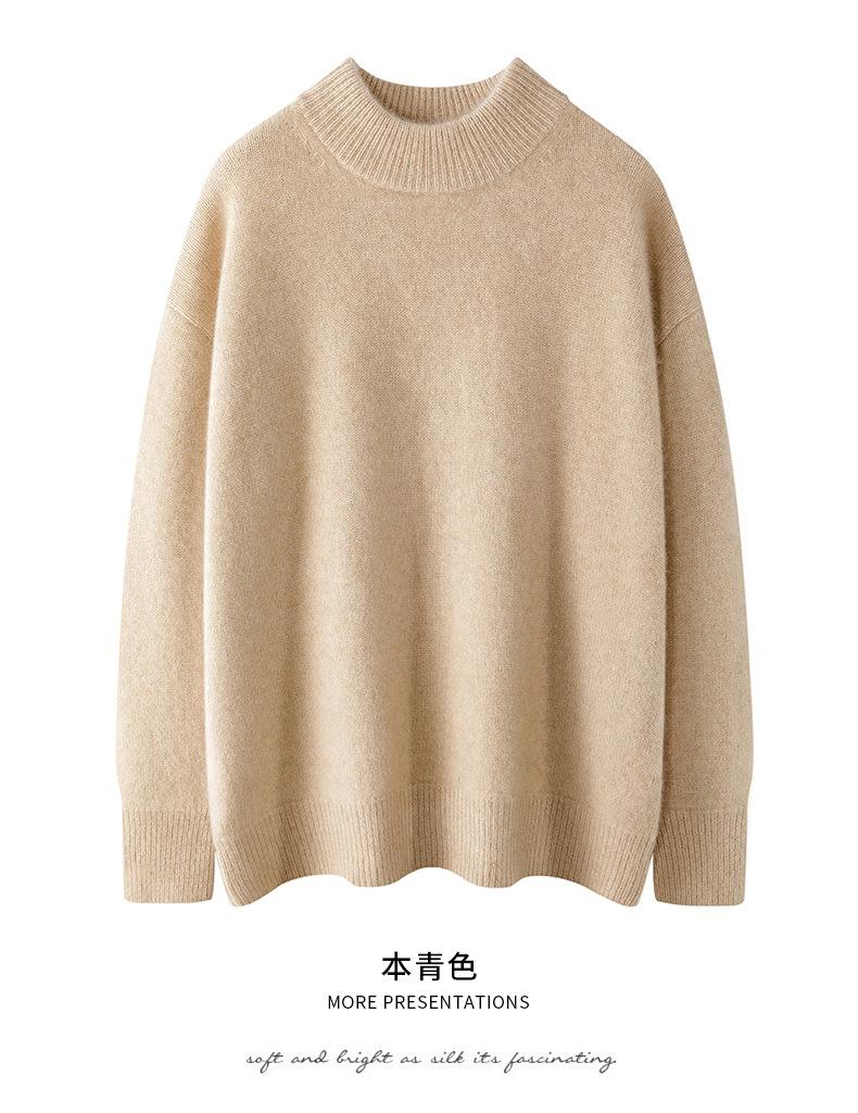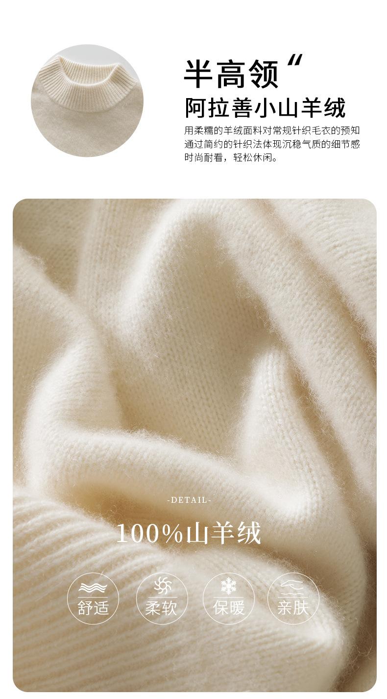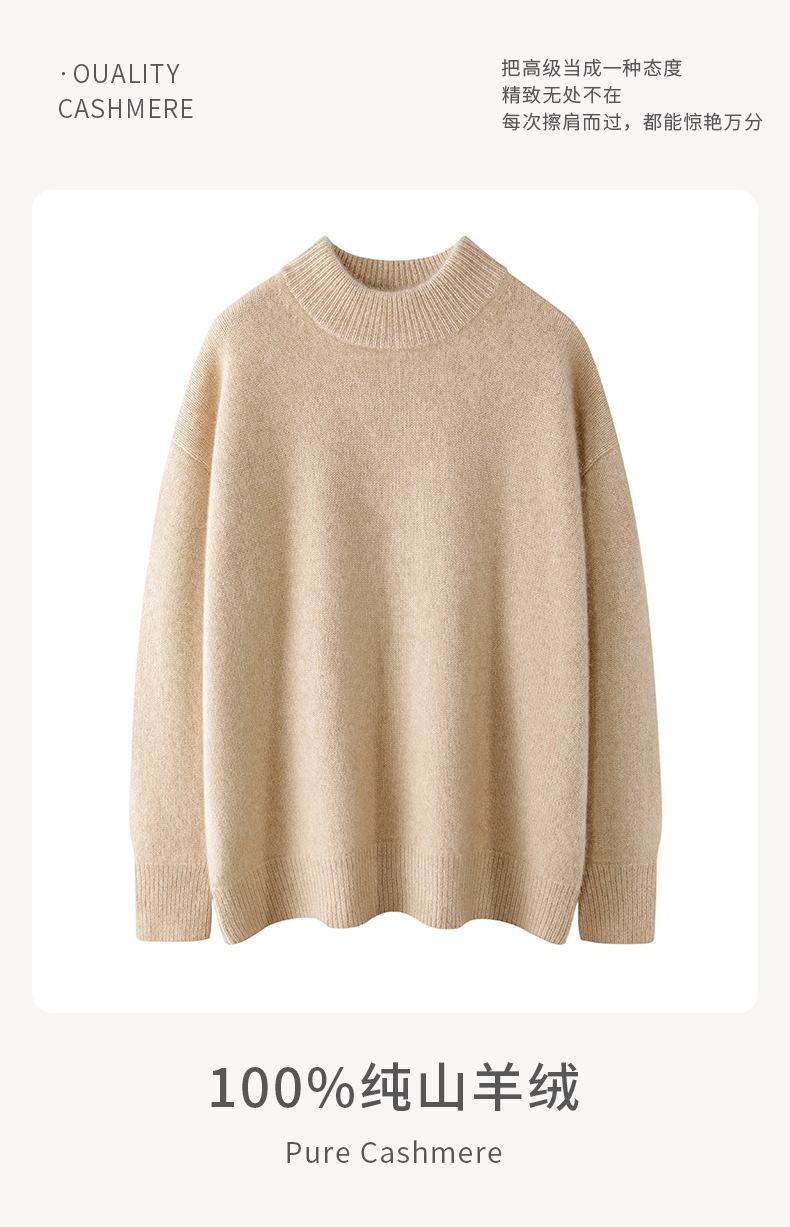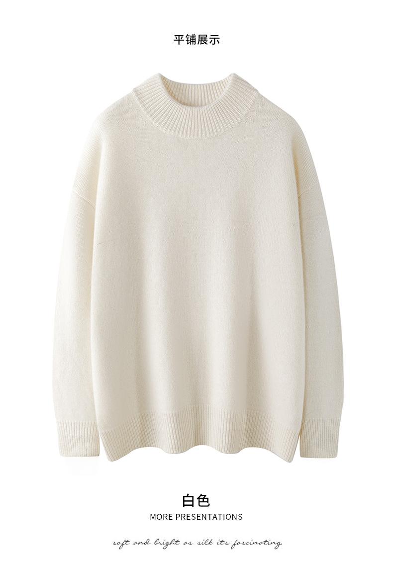 Suéter de Cachemira 100% Puro de Cuello Medio Tortuga para Mujer Estilo Casual Sencillo Versátil Color Puro Camiseta Base Otoño e Invierno Nuevo Suéter de Cachemira