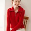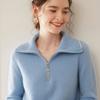 Suéter holgado de cachemira de otoño e invierno 2025 con cremallera media para mujer, suéter grueso a rayas con solapa perezosa