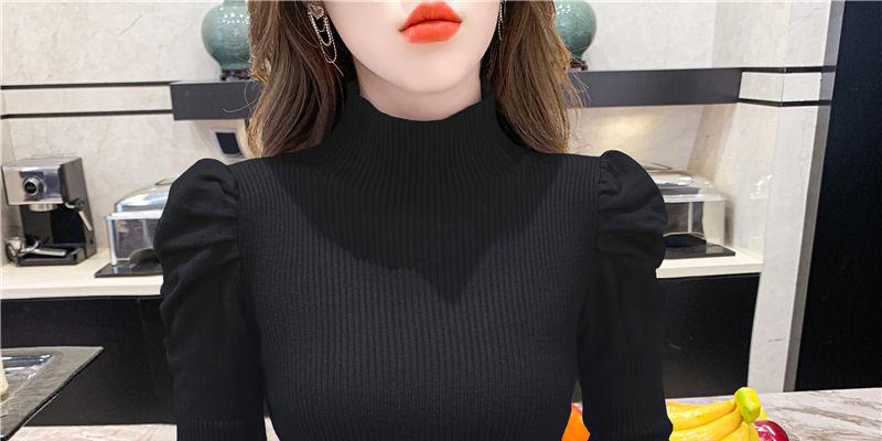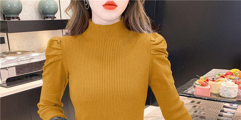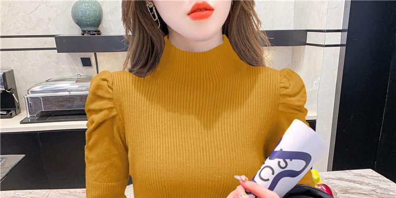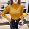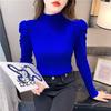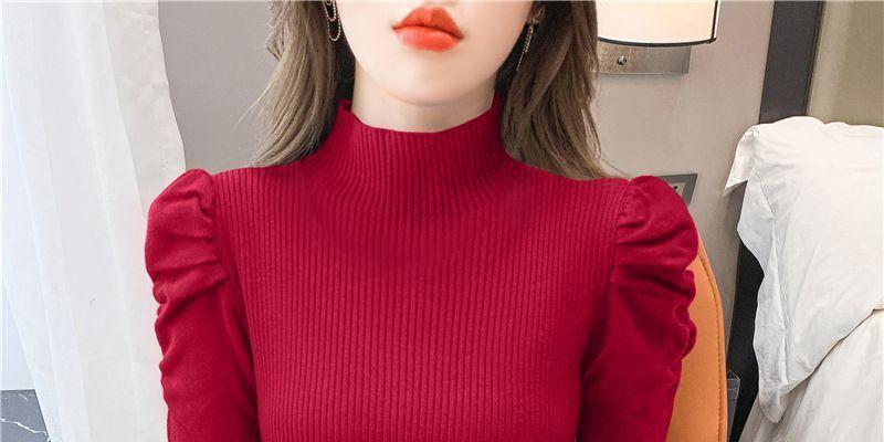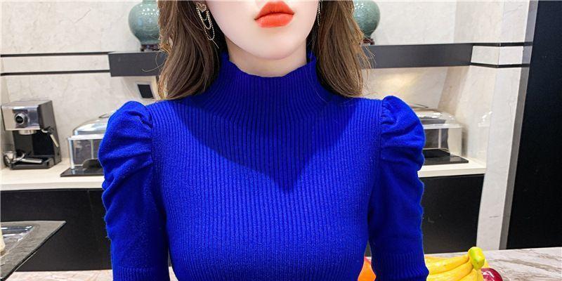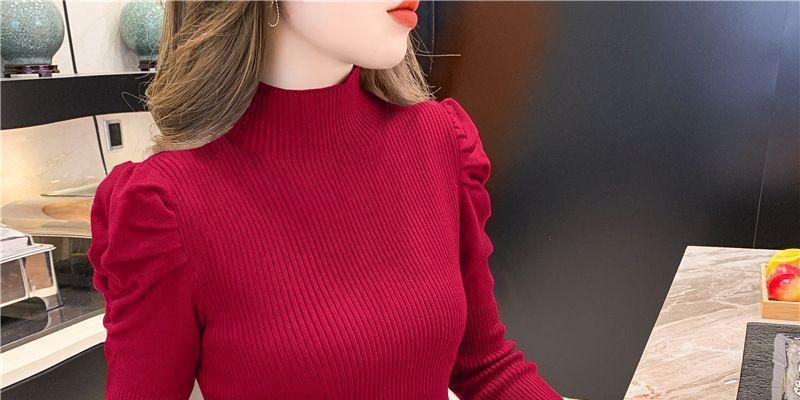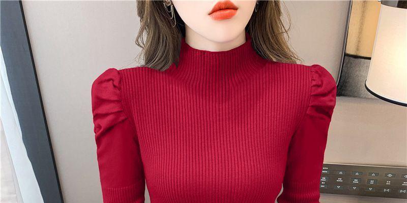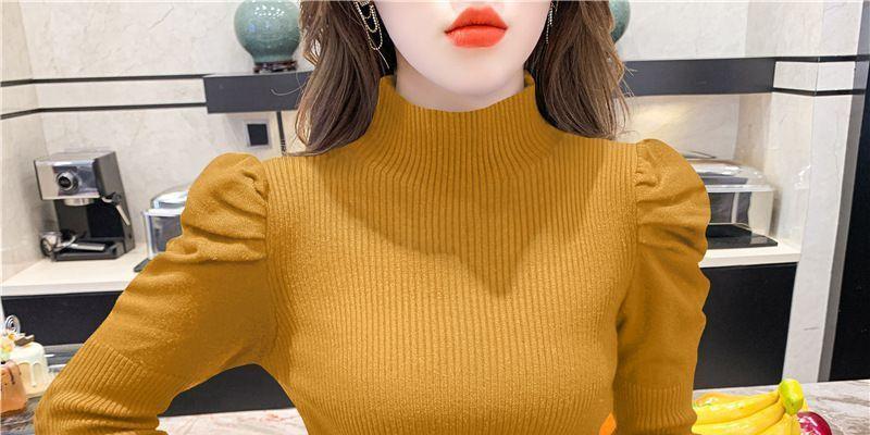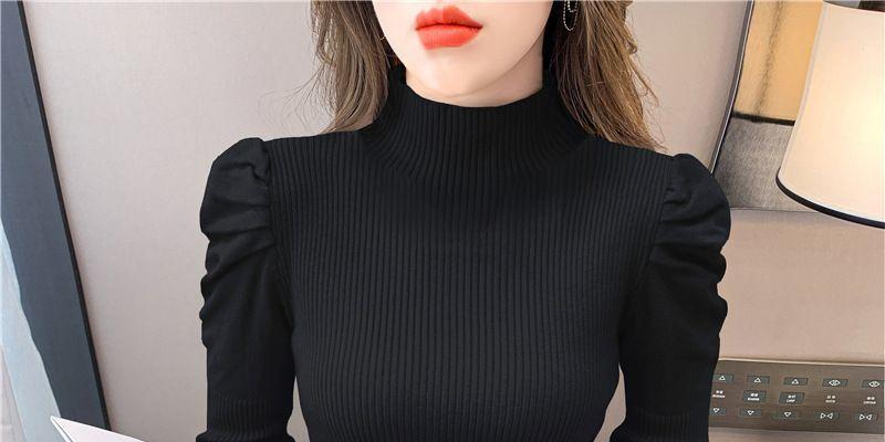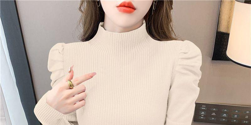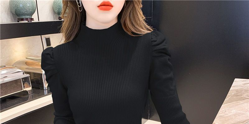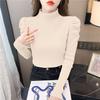 Suéter de cuello alto medio para mujer, otoño e invierno 2024, nueva moda, estilo occidental, camisa base de manga abullonada de alta gama