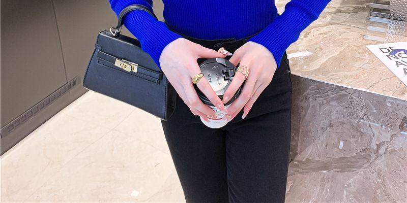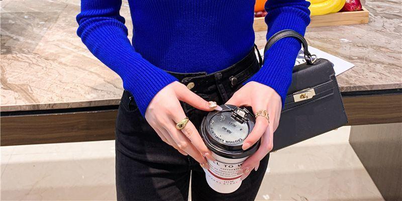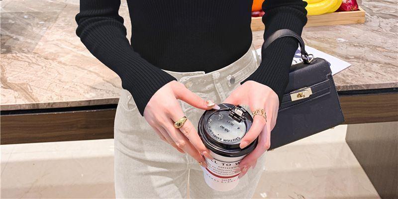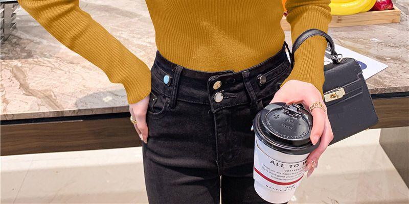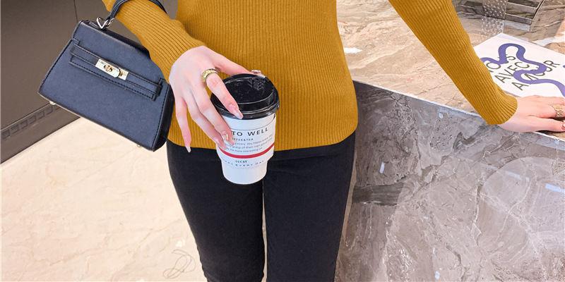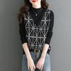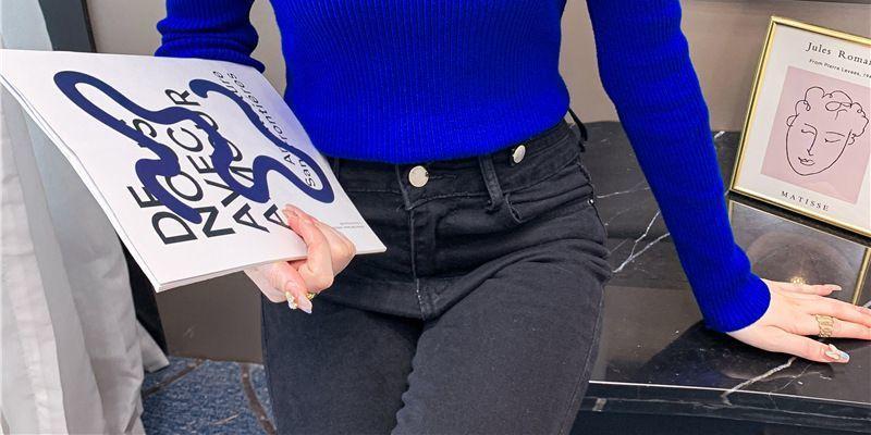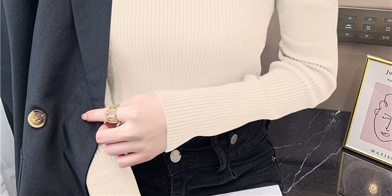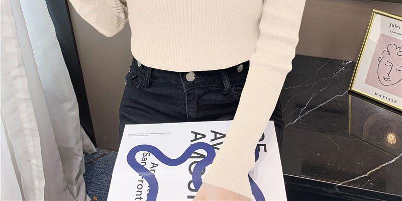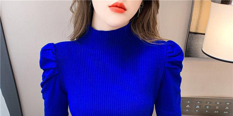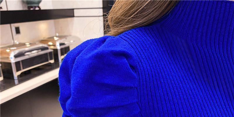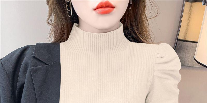 Suéter de cuello alto medio para mujer, otoño e invierno 2024, nueva moda, estilo occidental, camisa base de manga abullonada de alta gama