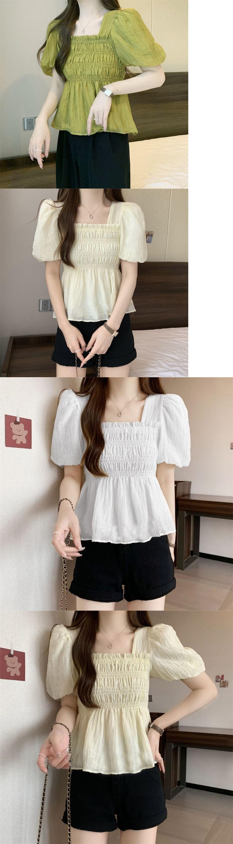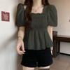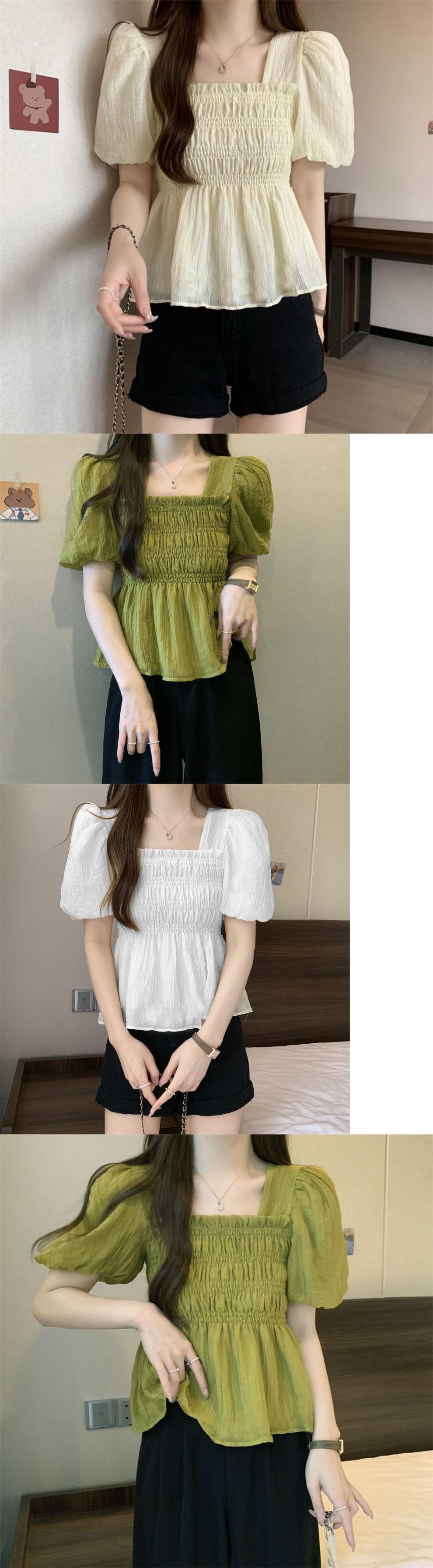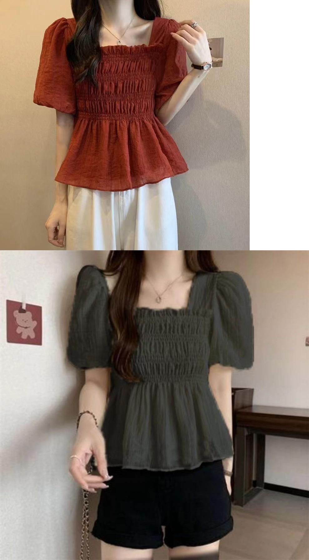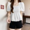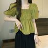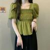 Camisa de gasa de manga corta con cuello cuadrado francés para mujer, nuevo diseño de verano, top corto nicho para cubrir el vientre