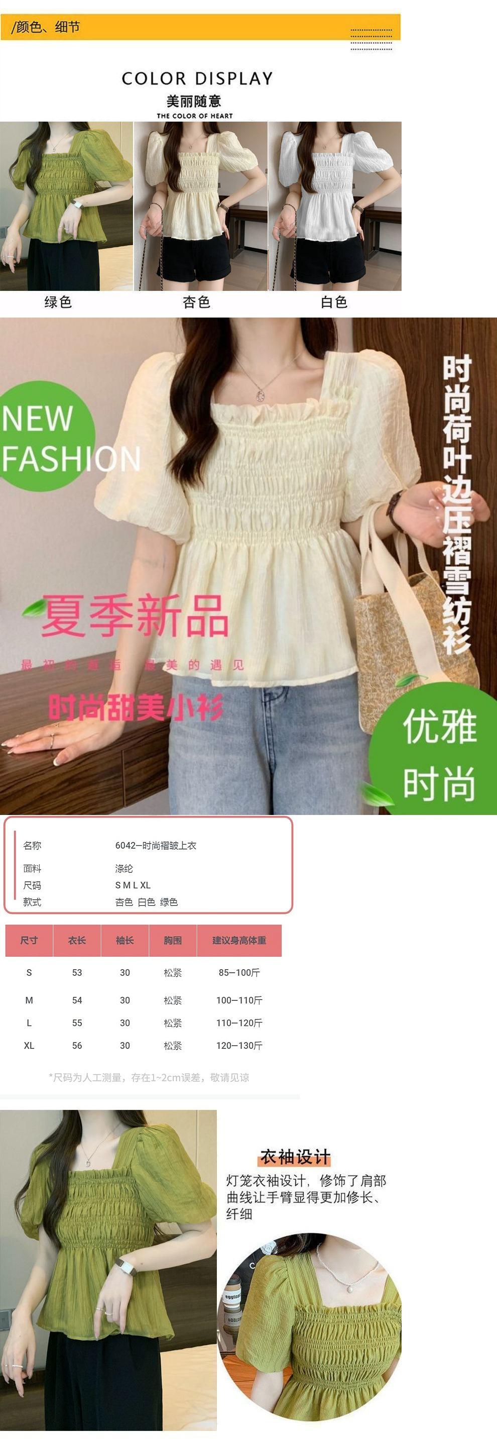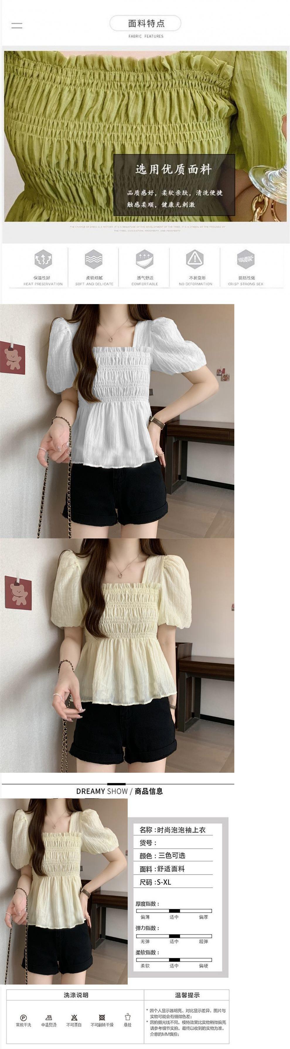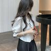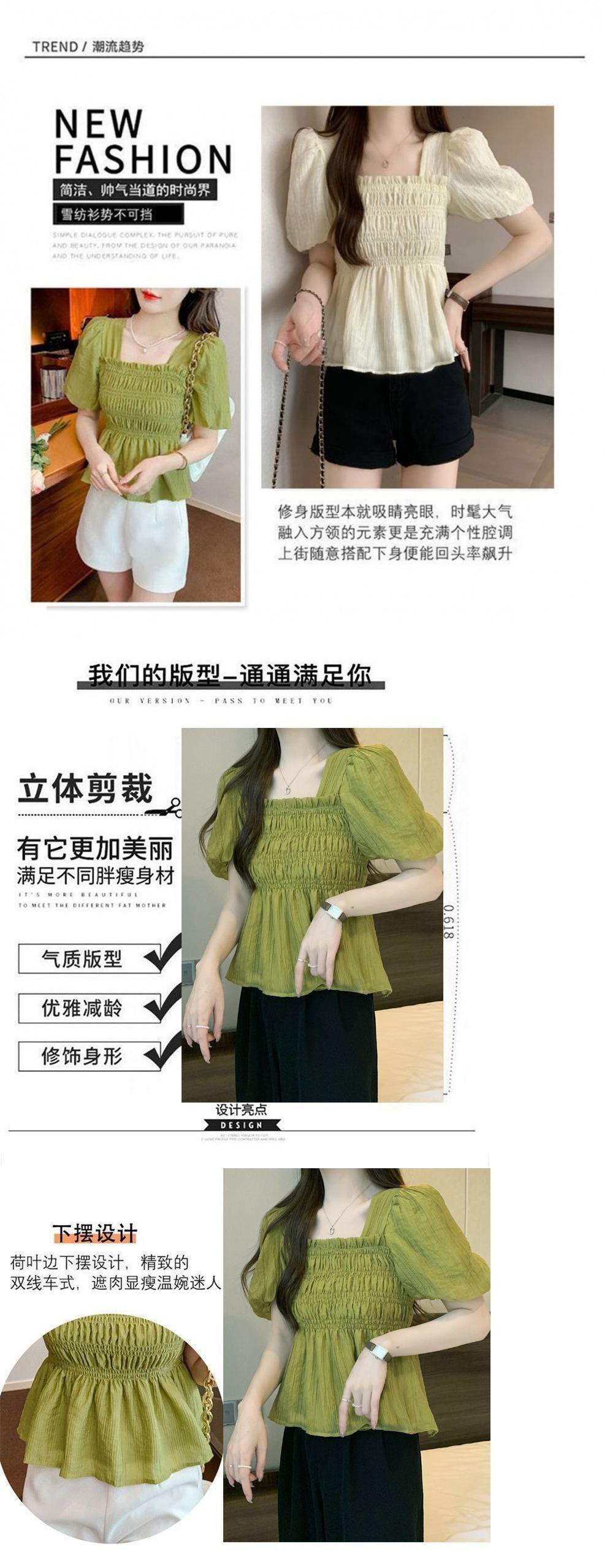 Camisa de gasa de manga corta con cuello cuadrado francés para mujer, nuevo diseño de verano, top corto nicho para cubrir el vientre