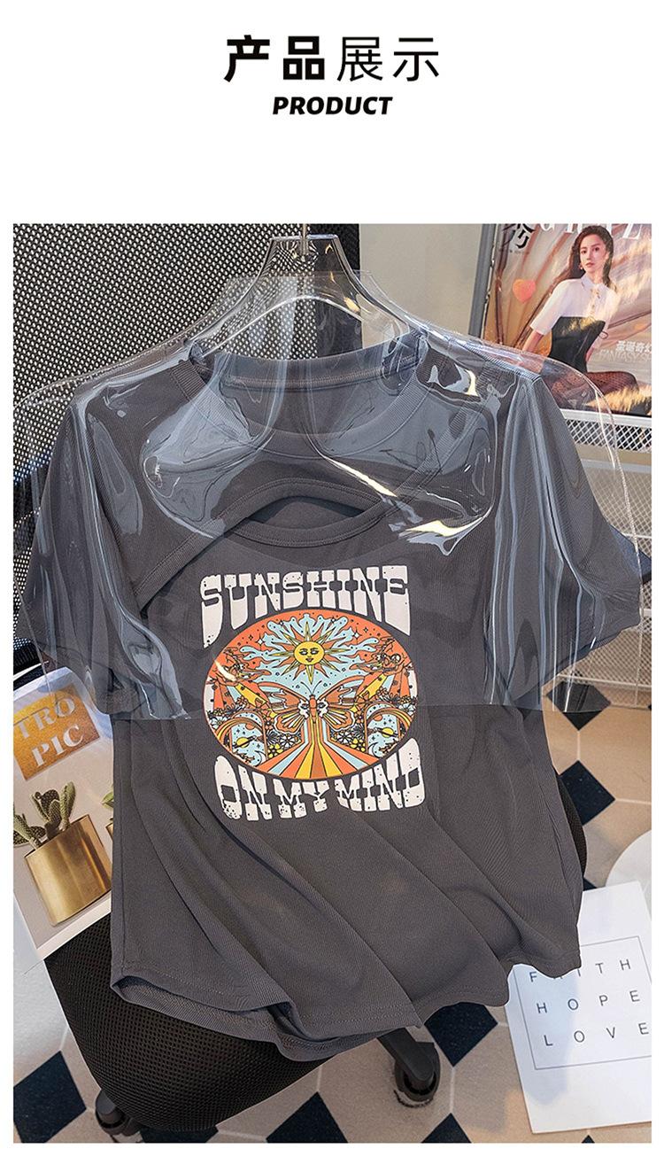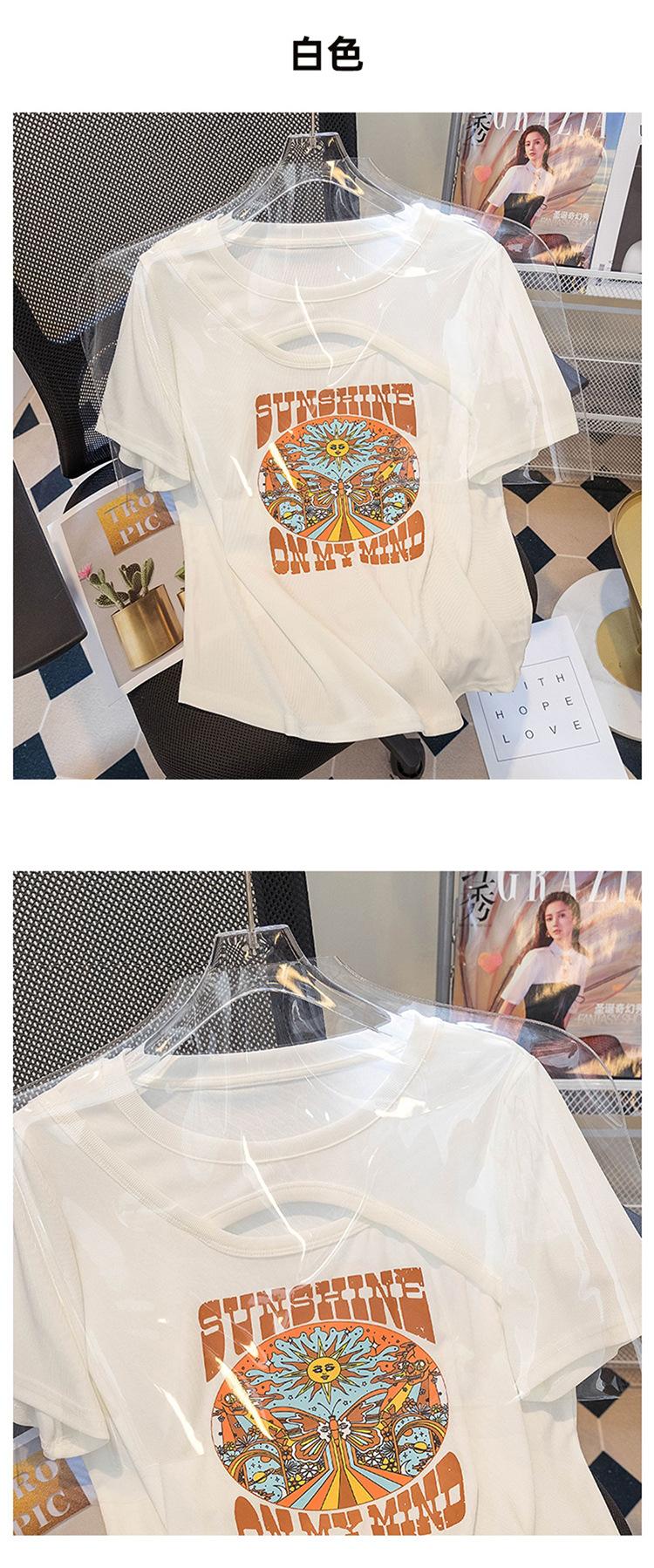 Camiseta de manga corta de algodón puro con hombros descubiertos para mujer, nueva llegada de verano, diseño hueco, camiseta holgada de estilo nicho que combina con todo, top moderno.