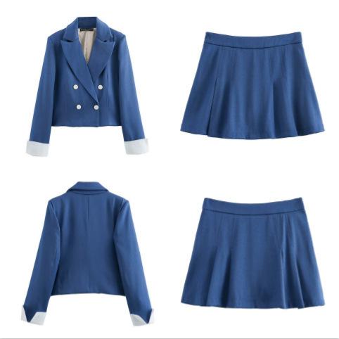 Traje de chaqueta corta con falda pantalón plisada decorativa para mujer europea y americana, verano 2024, Amazon Cross-border