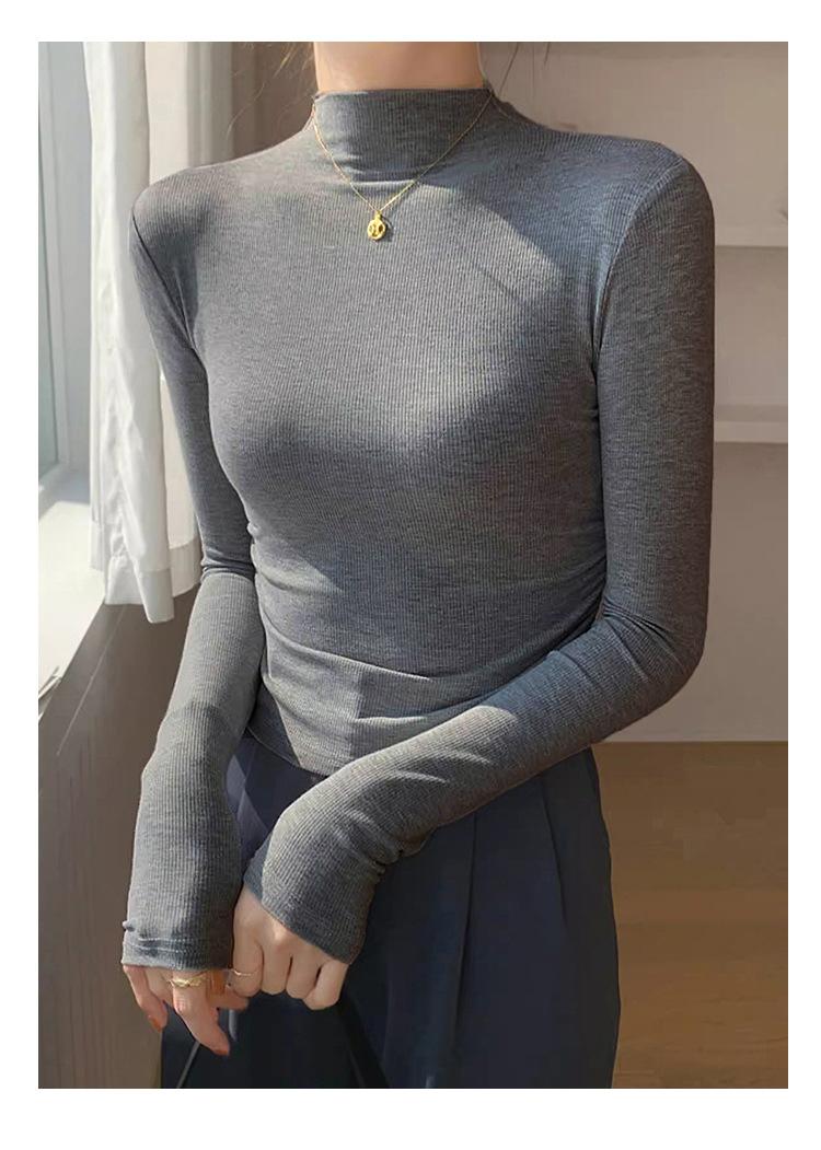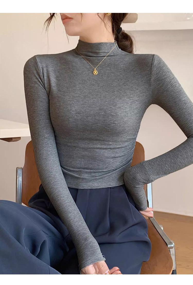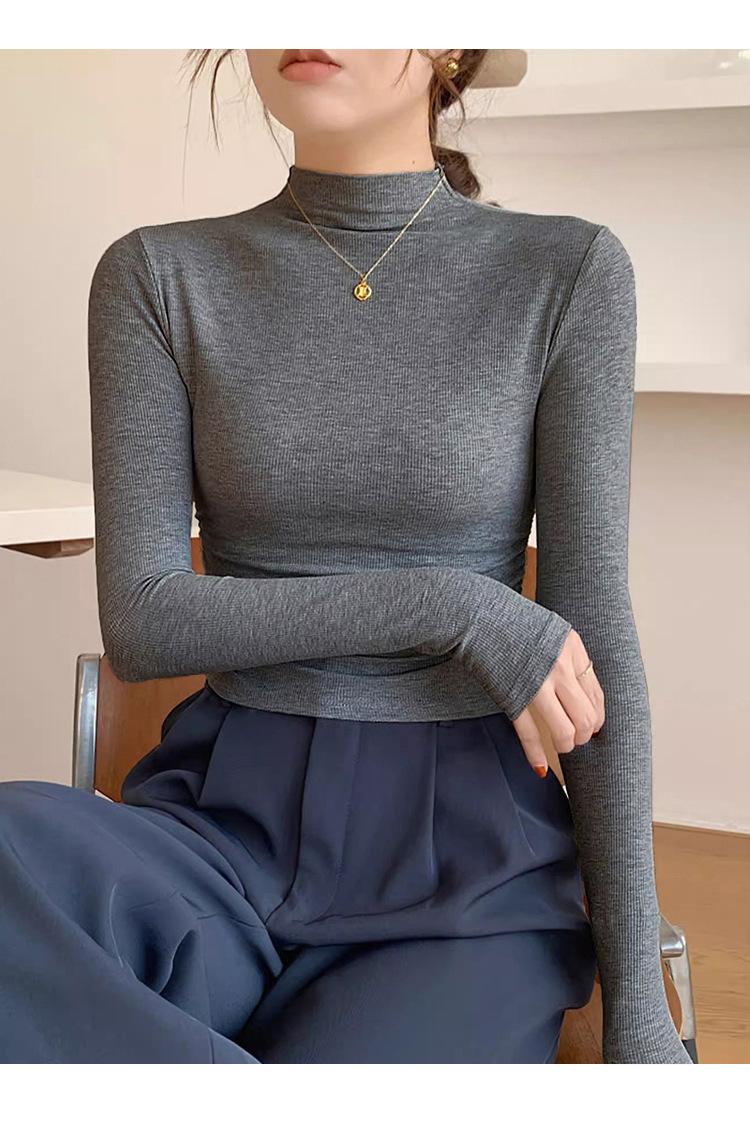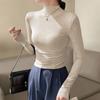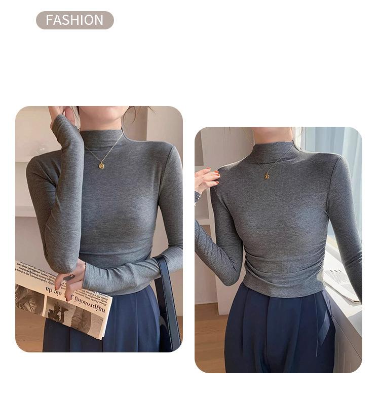 Camisa básica de cuello semialto de terciopelo, otoño e invierno 2024, nuevo diseño, ropa interior ajustada, top de manga larga cálido.