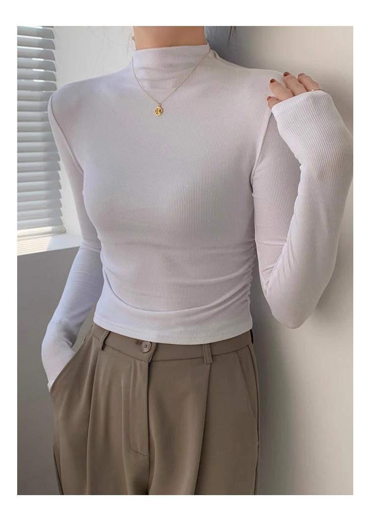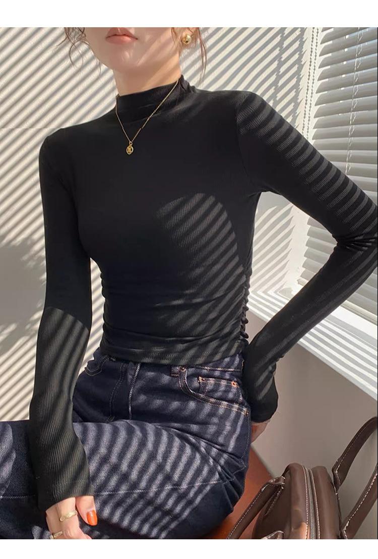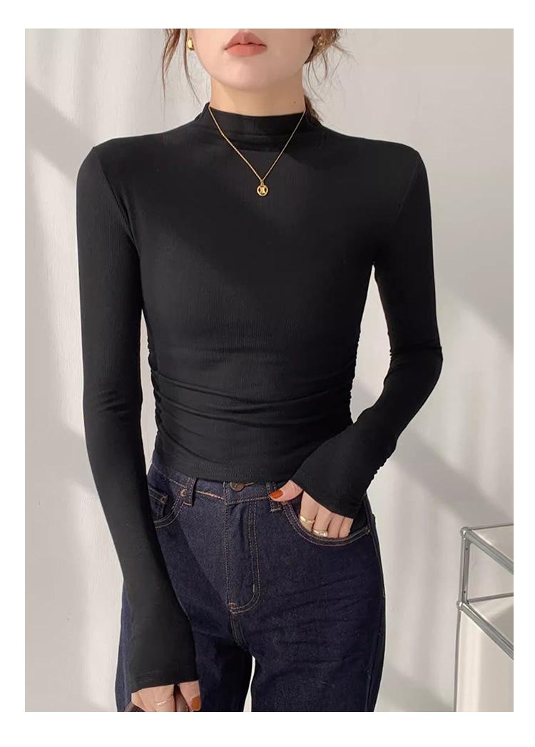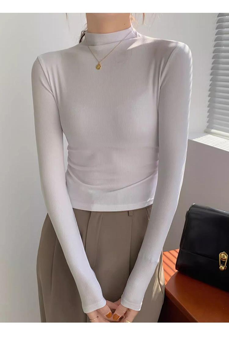 Camisa básica de cuello semialto de terciopelo, otoño e invierno 2024, nuevo diseño, ropa interior ajustada, top de manga larga cálido.