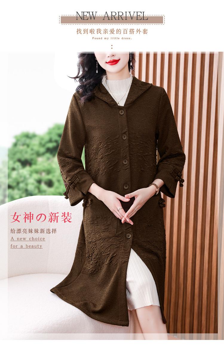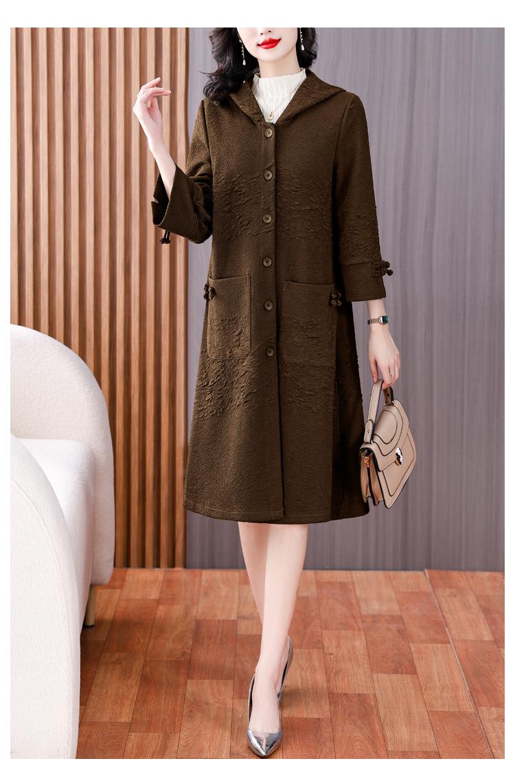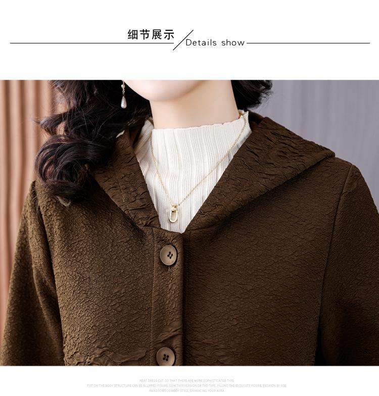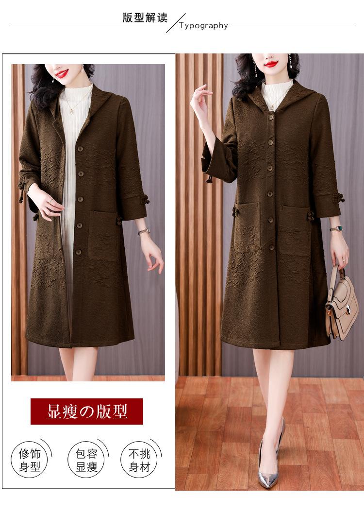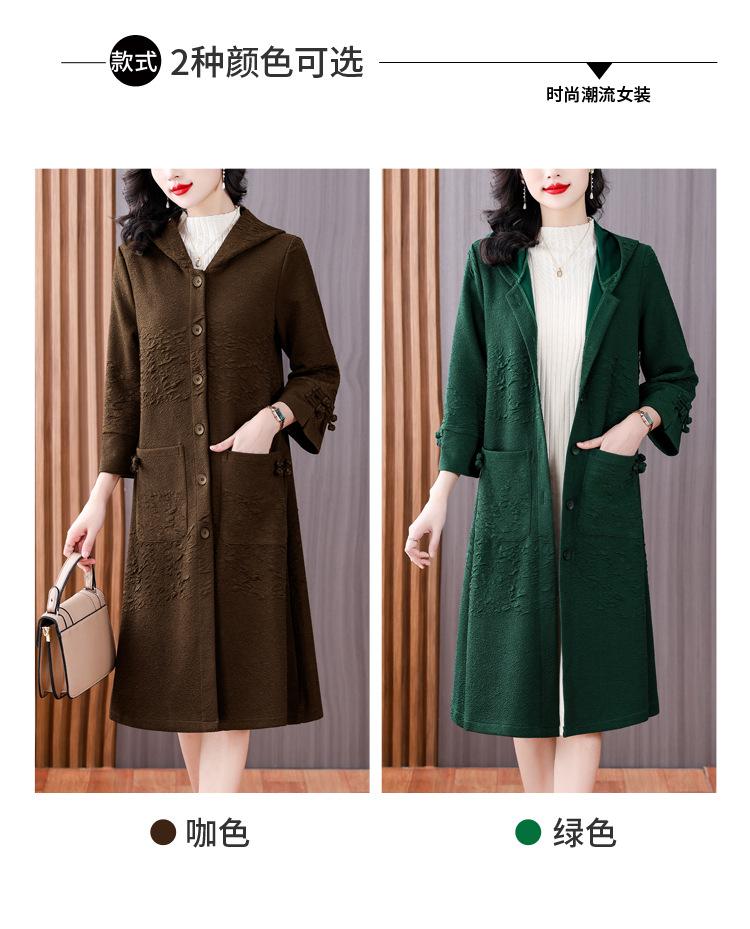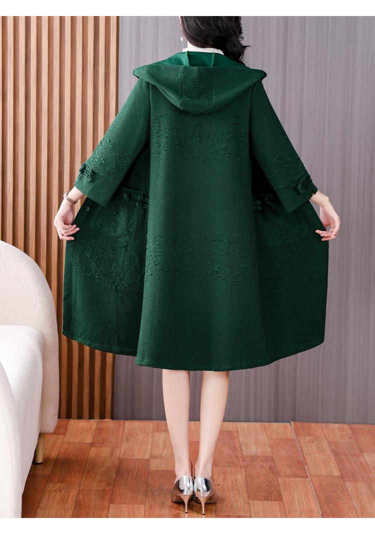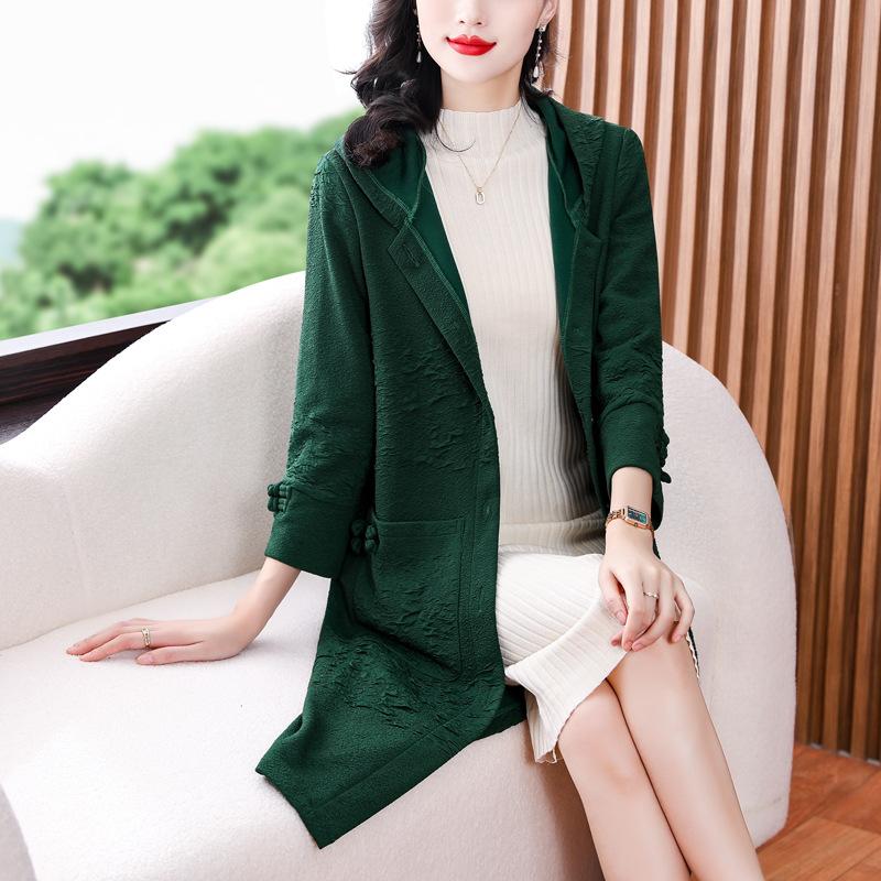 Abrigo holgado de talla grande con capucha para mujer, otoño e invierno 2024, nuevo abrigo vintage con hebilla de jacquard, largo medio, color liso