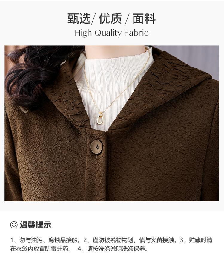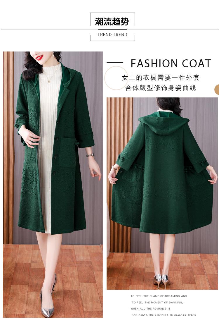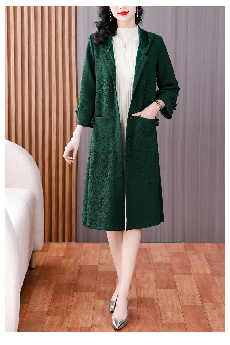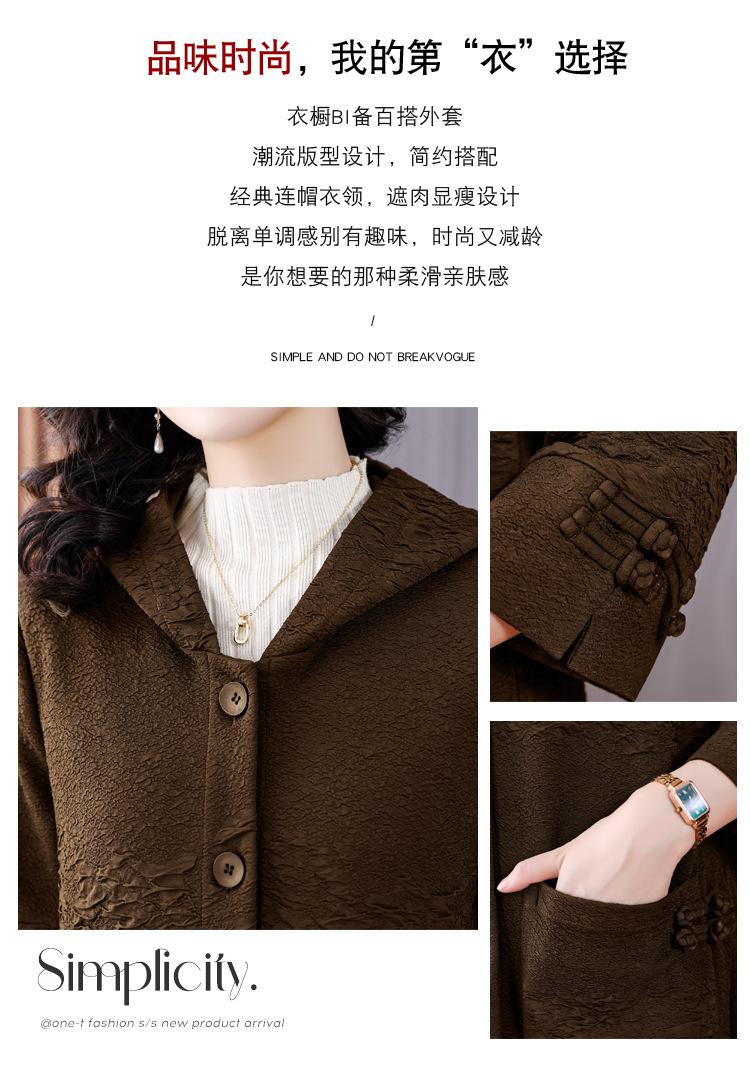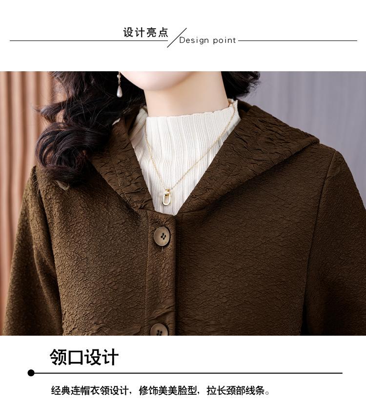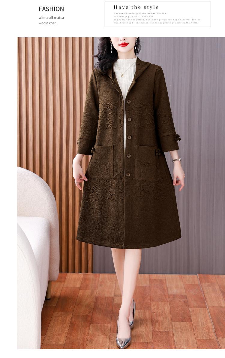 Abrigo holgado de talla grande con capucha para mujer, otoño e invierno 2024, nuevo abrigo vintage con hebilla de jacquard, largo medio, color liso
