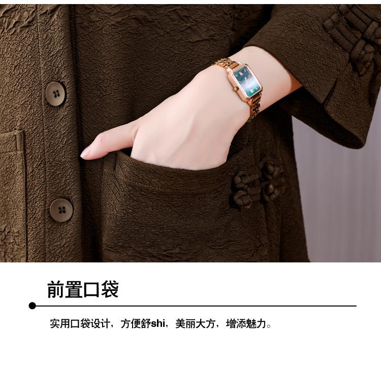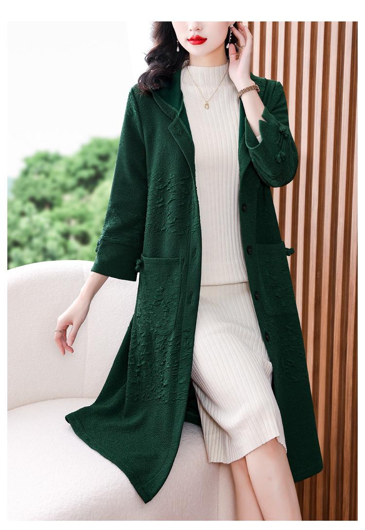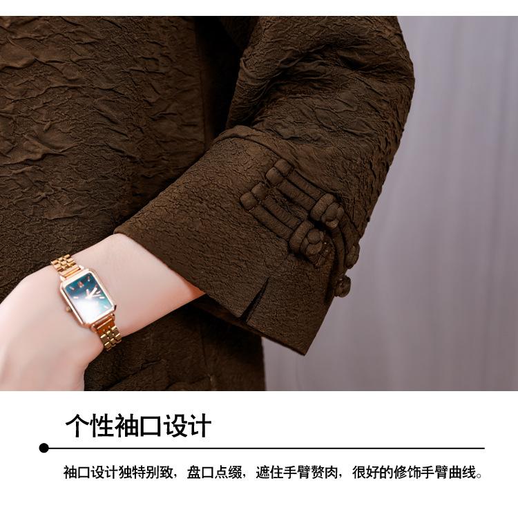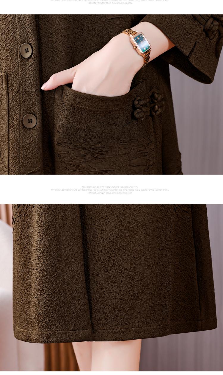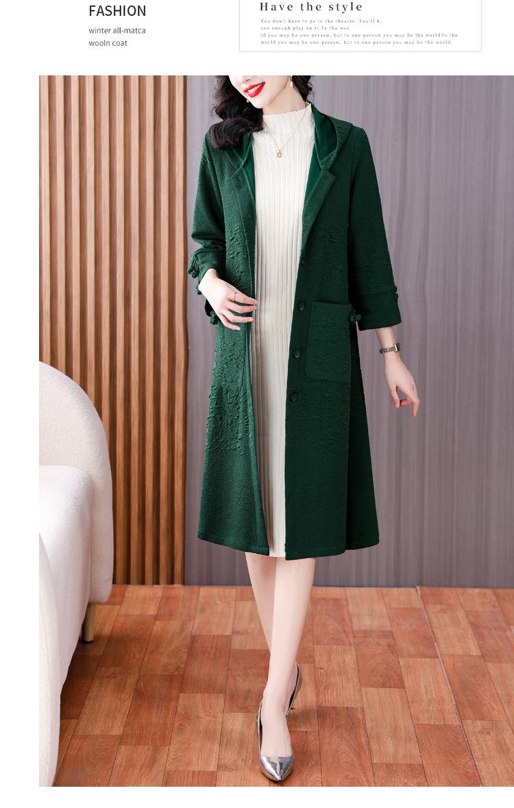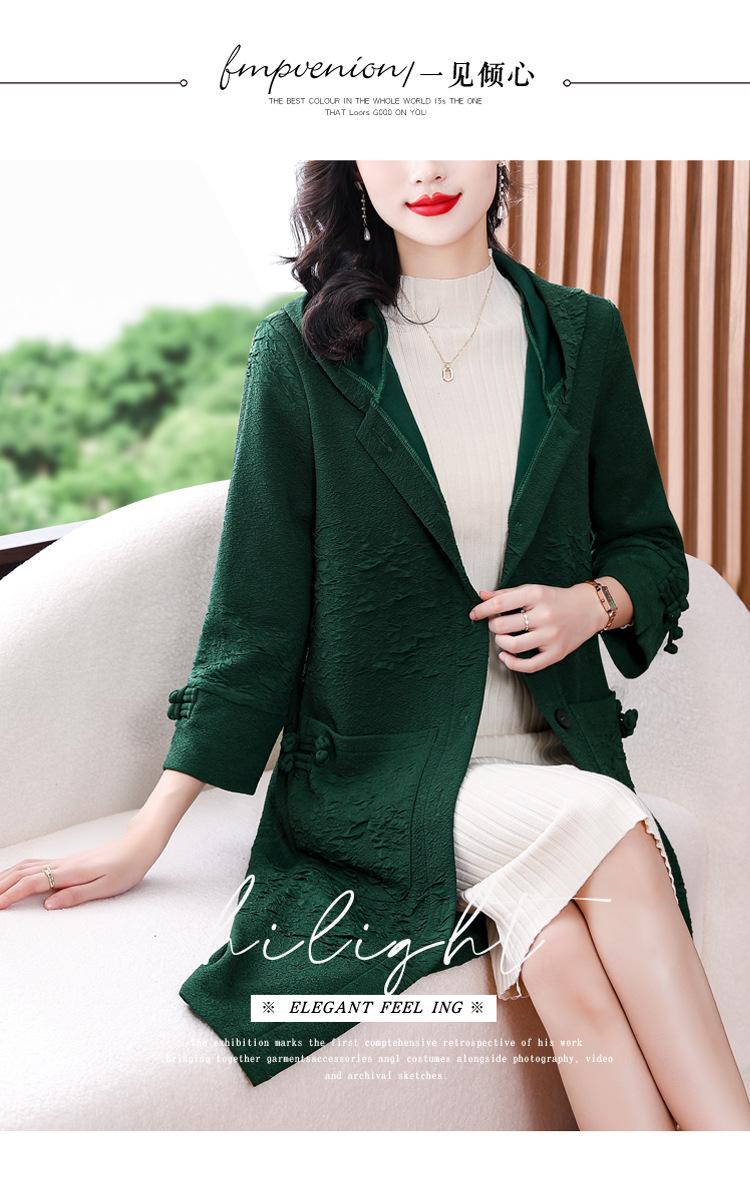 Abrigo holgado de talla grande con capucha para mujer, otoño e invierno 2024, nuevo abrigo vintage con hebilla de jacquard, largo medio, color liso