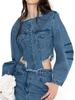 2025 Nuevo Top Corto de Mezclilla Lavada Retro para Mujer Otoño e Invierno Nuevo Top de Cuello Alto Manga Larga Pequeña