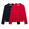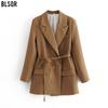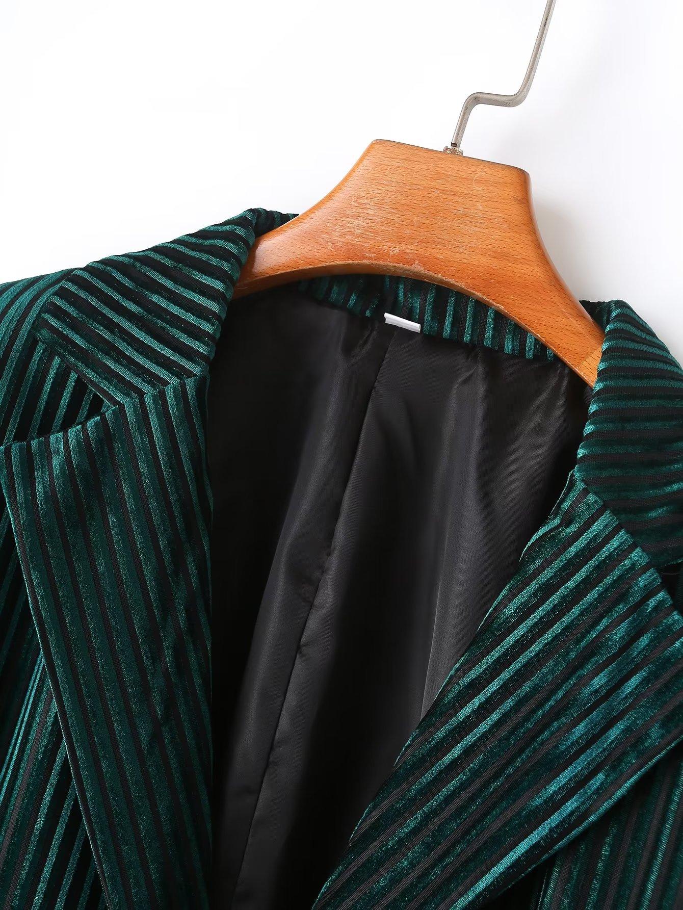 Ropa Europea y Americana Transfronteriza 2023 Otoño Nuevo Color Puro Elegante Commuter Chaqueta de Traje de Terciopelo a Rayas