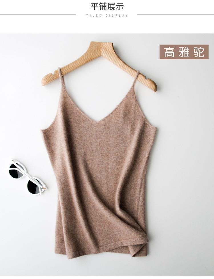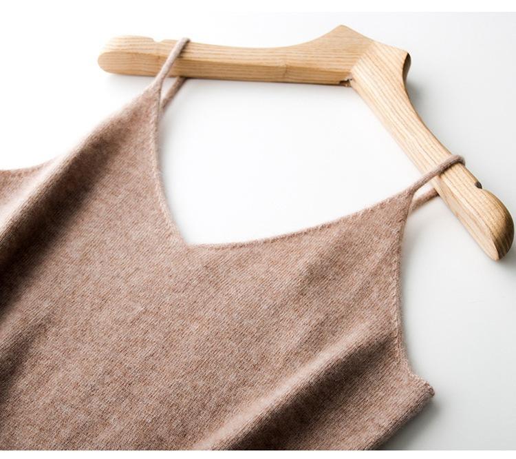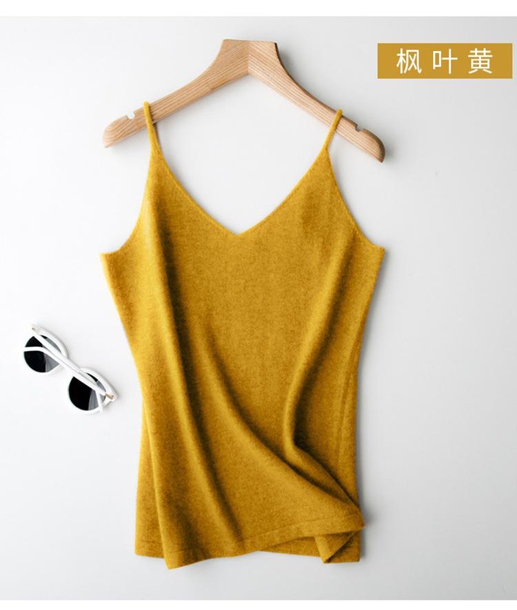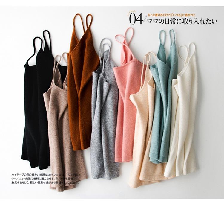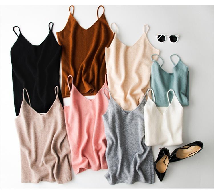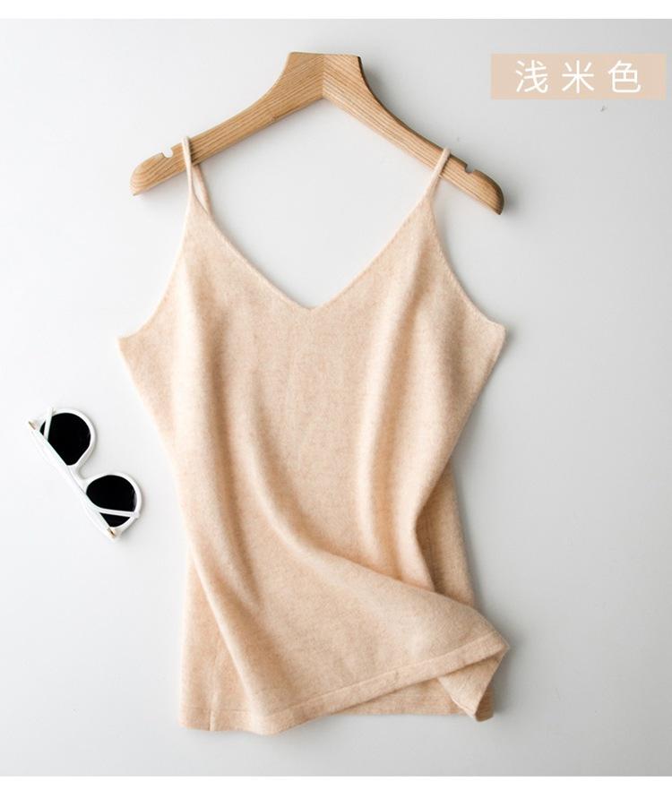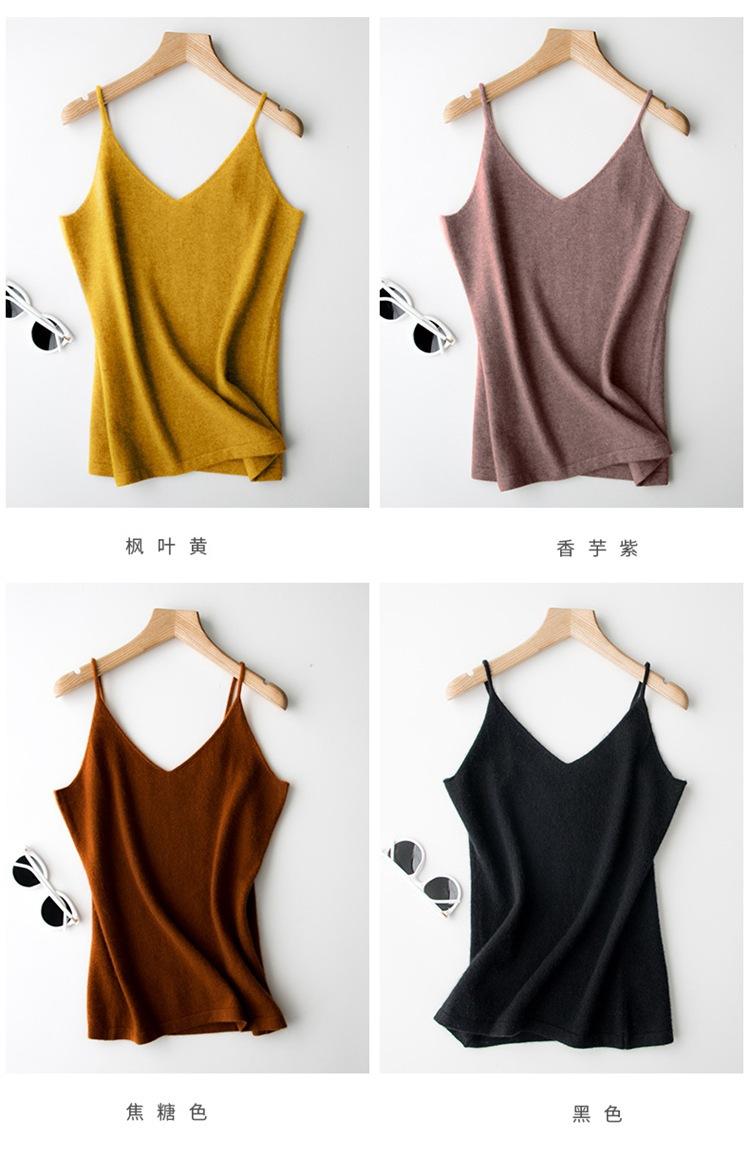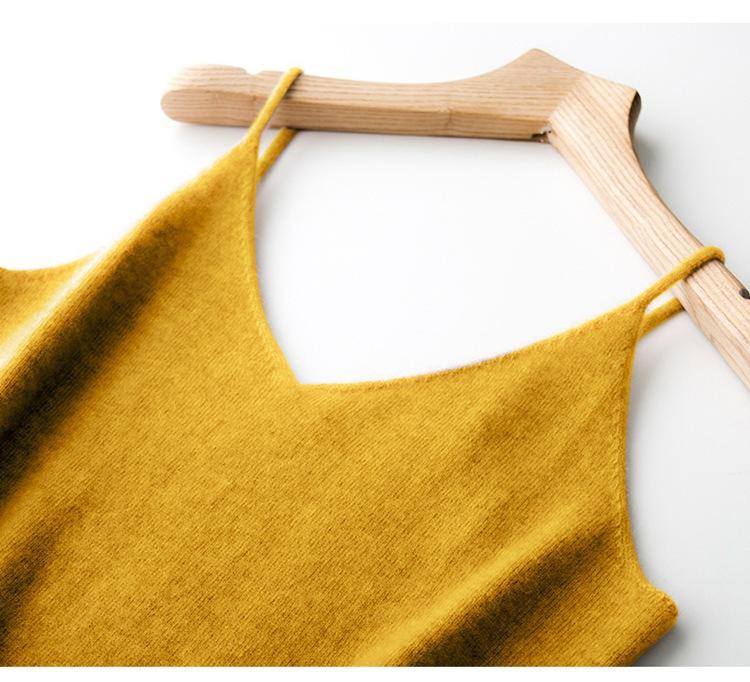 Chaleco de cuello en V con tirantes de lana pura para otoño e invierno, top de punto de lana sin mangas para mujer, top ajustado que combina con todo.