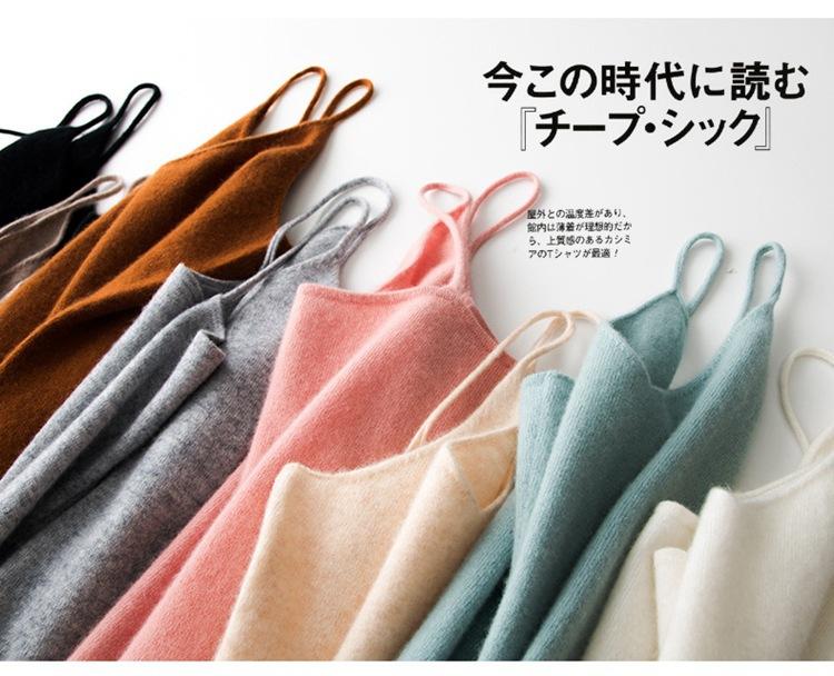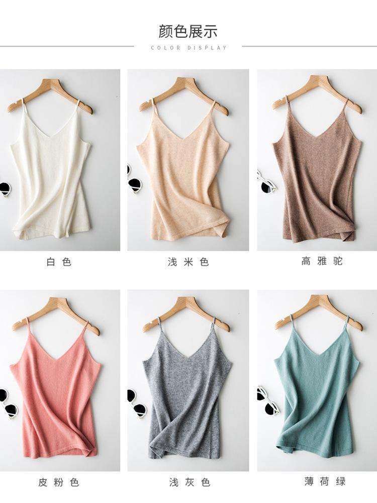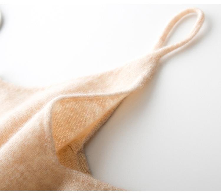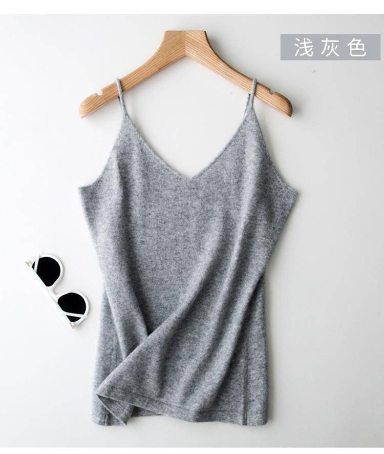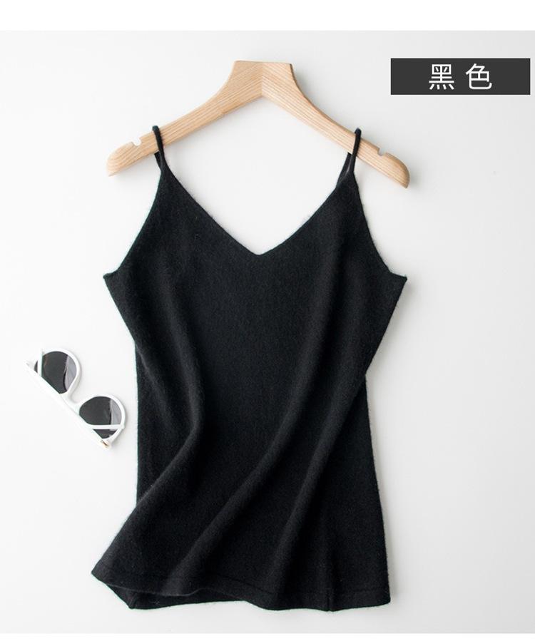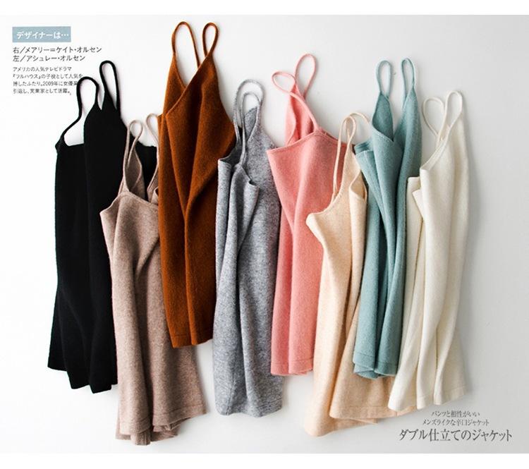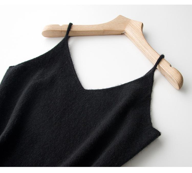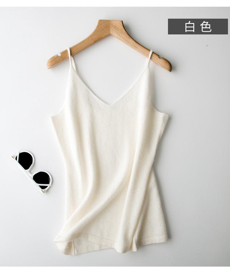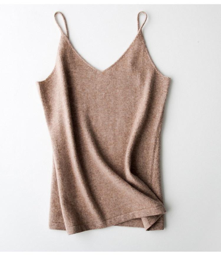 Chaleco de cuello en V con tirantes de lana pura para otoño e invierno, top de punto de lana sin mangas para mujer, top ajustado que combina con todo.