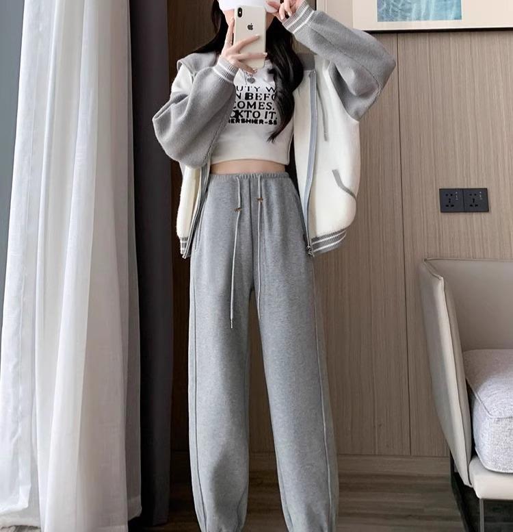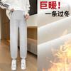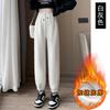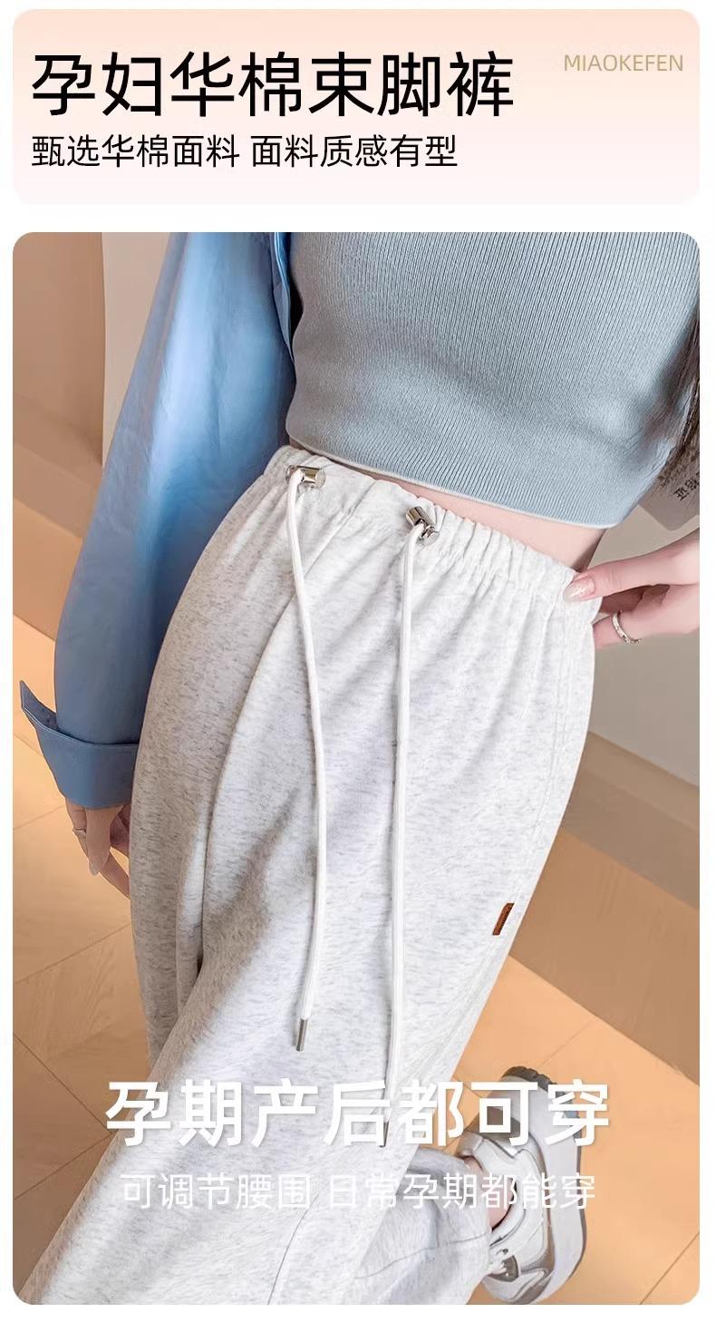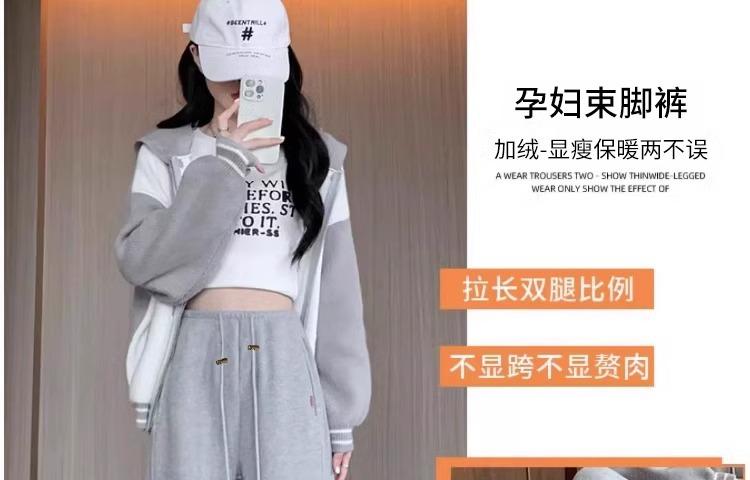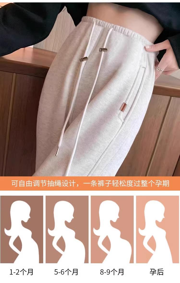 Pantalones de Otoño e Invierno para Mujeres Embarazadas Ropa Exterior con Forro Polar Grueso Pantalones de Pie Atado Pantalones Deportivos Vientre Sin Cuerda Ropa de Maternidad Sin Soporte