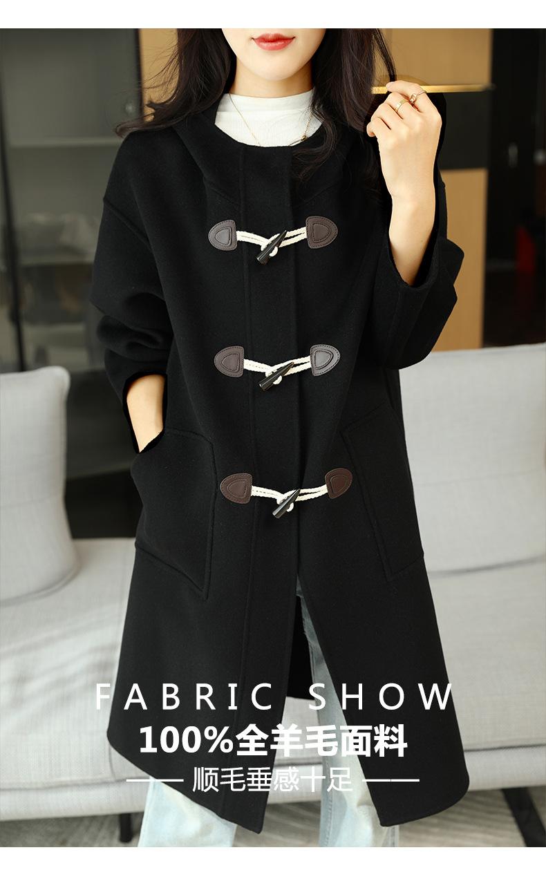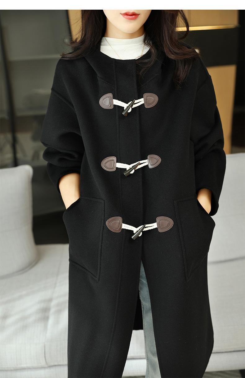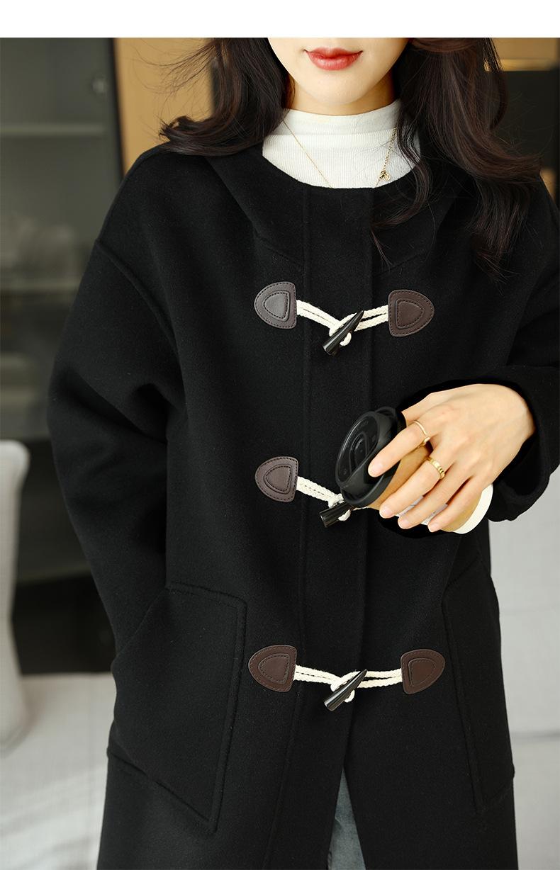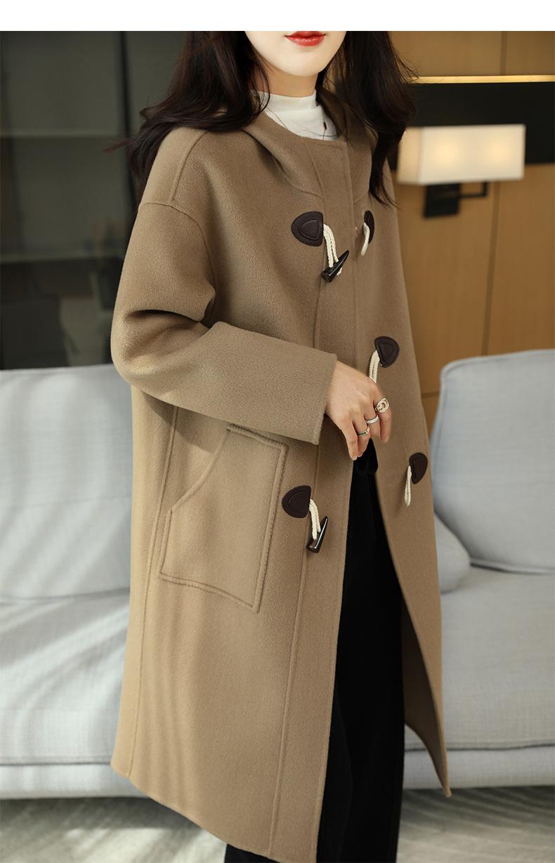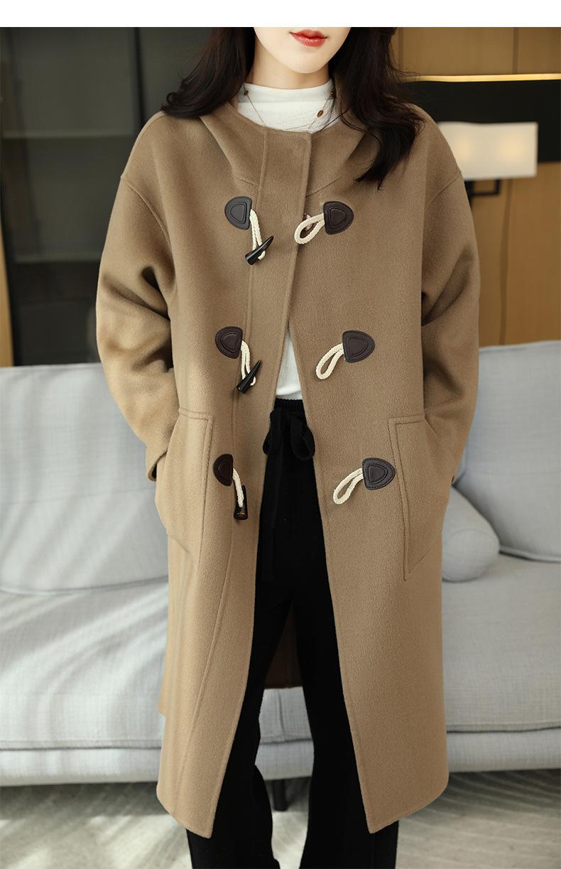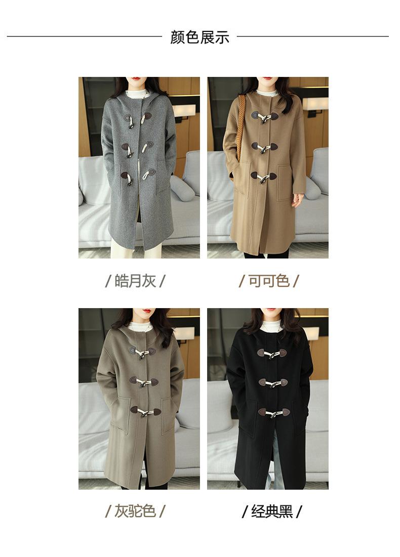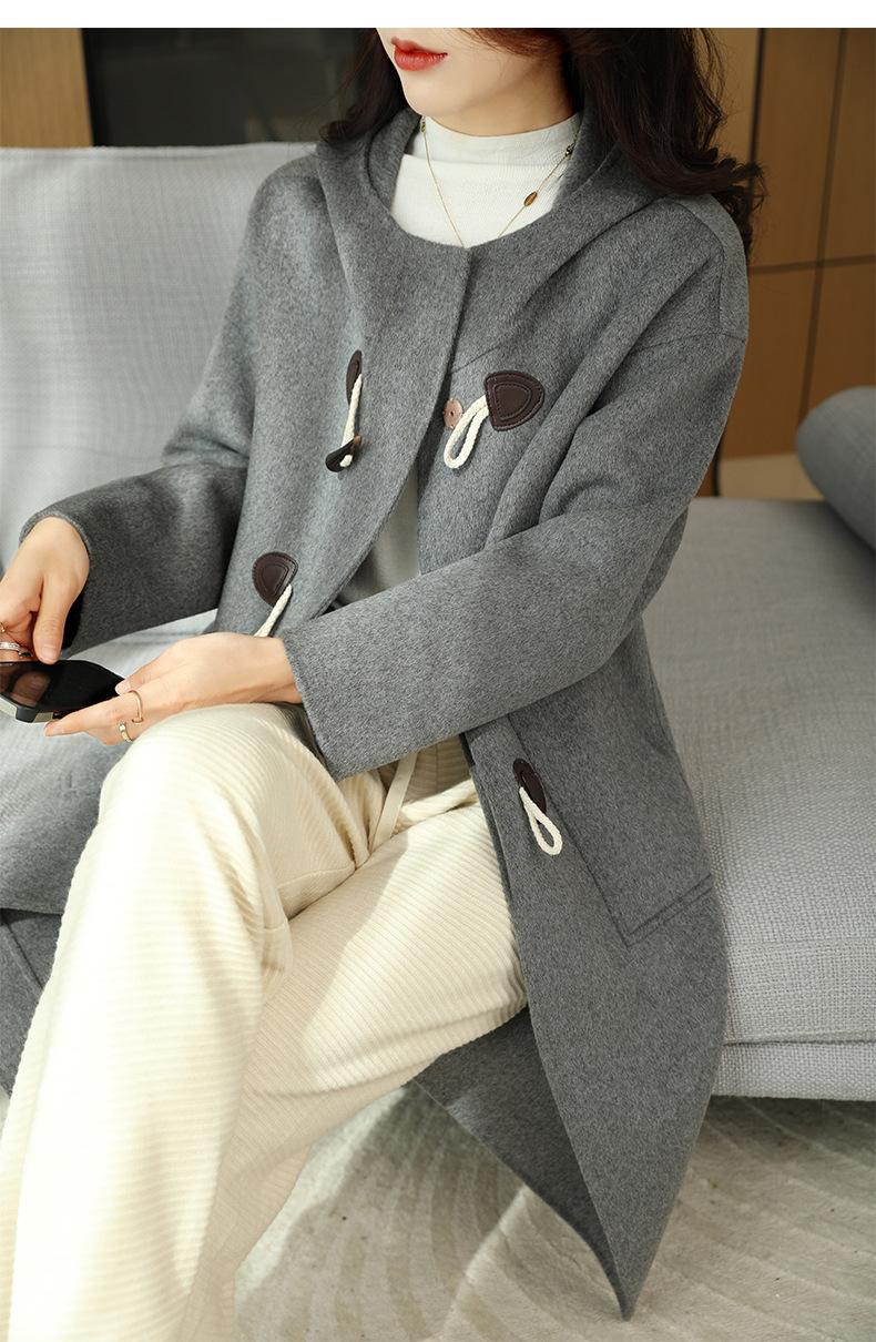 Chaqueta de lana con capucha y hebilla de doble cara para mujer, nueva moda de otoño e invierno, con capucha por encima de la rodilla, elegante abrigo de lana