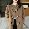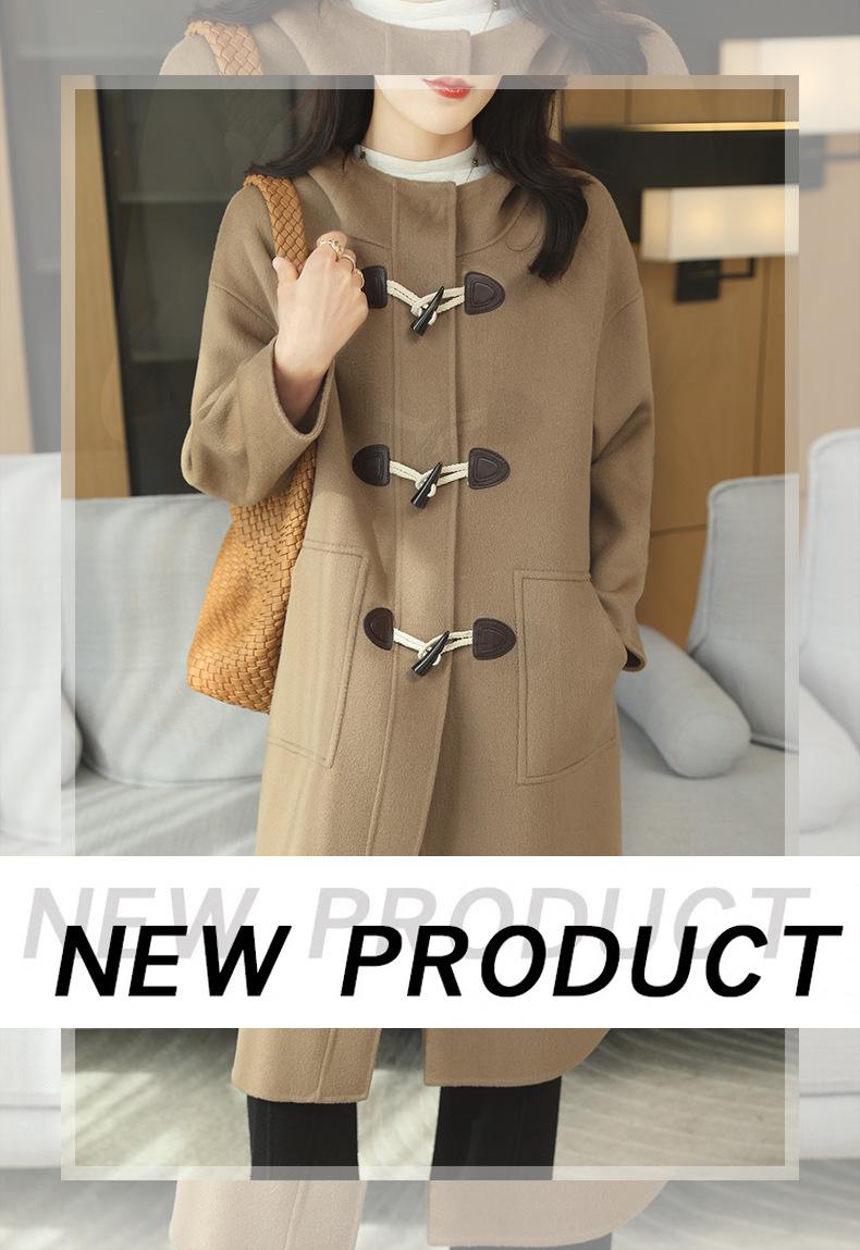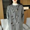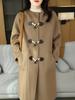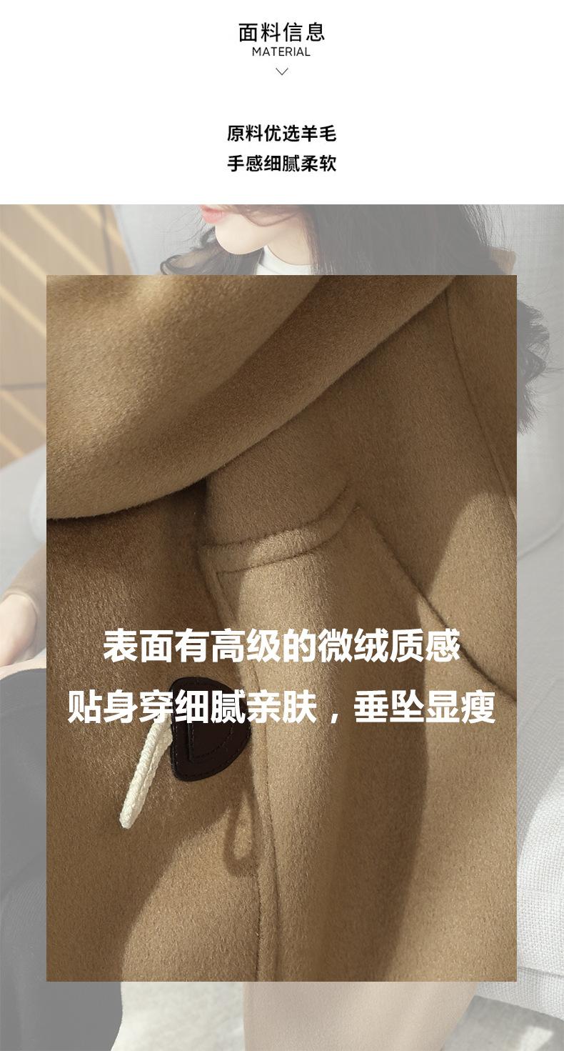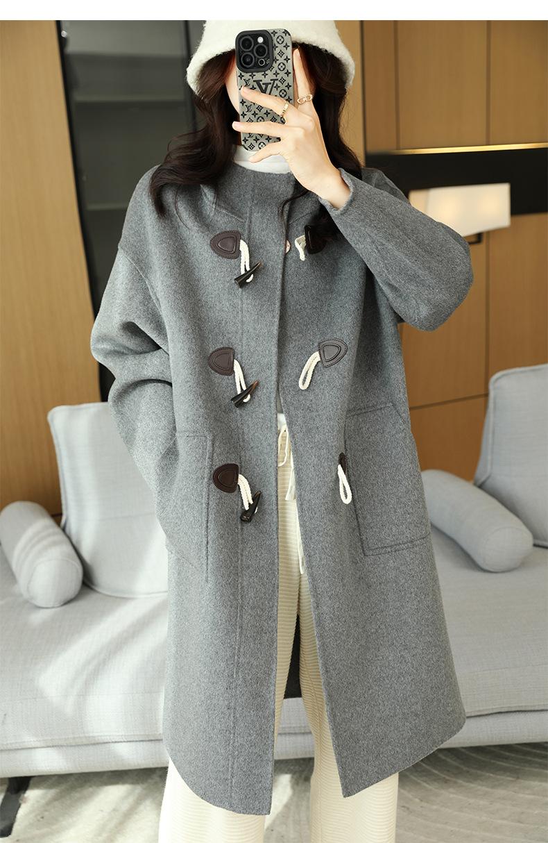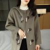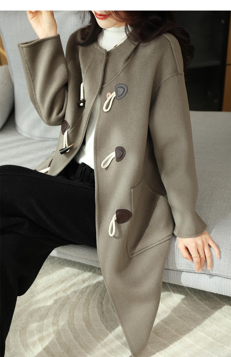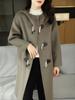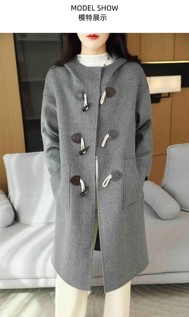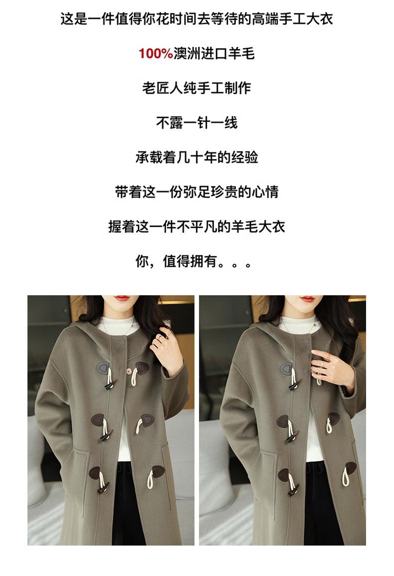 Chaqueta de lana con capucha y hebilla de doble cara para mujer, nueva moda de otoño e invierno, con capucha por encima de la rodilla, elegante abrigo de lana