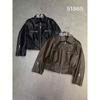 2025 Nueva Chaqueta de Cuero para Mujer con Solapa Otoño e Invierno Chaqueta Estilo Motociclista Retro 51865 Holgada y Ajustada
