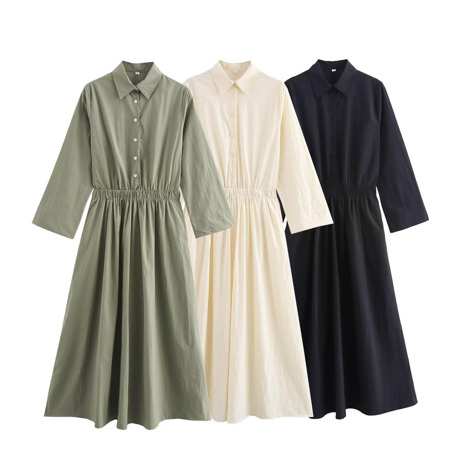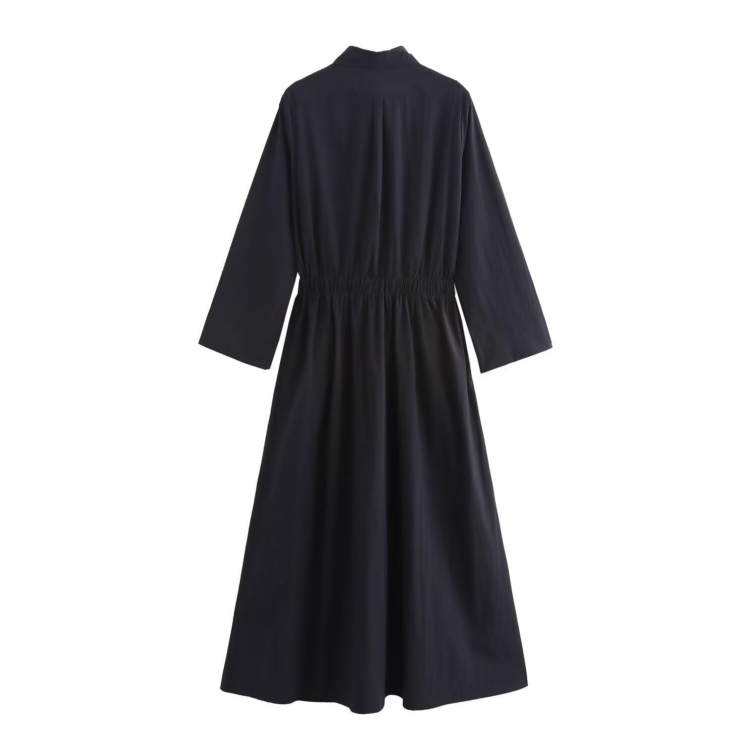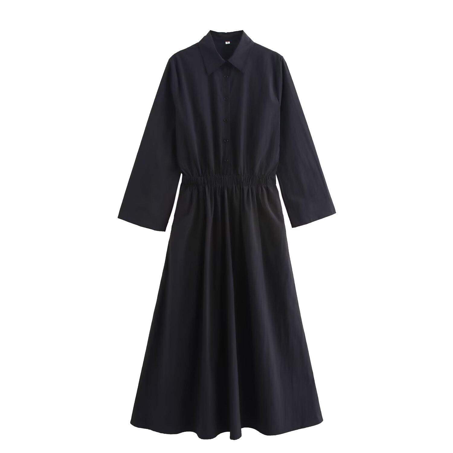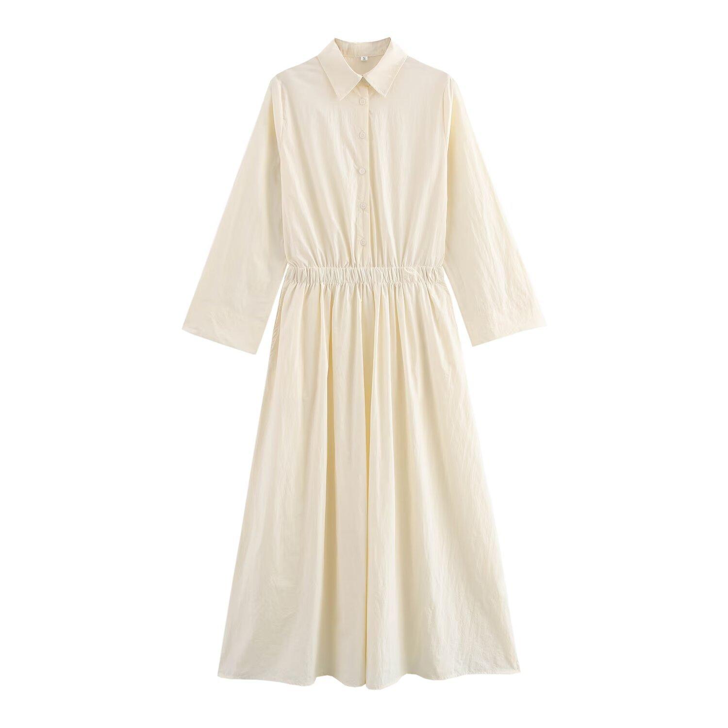 Ropa de Mujer Estilo Europeo y Americano 2024 Otoño Nueva Moda Color Puro Simple Versátil Estilo Camisa Vestido Midi Largo