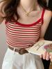 Camisola de mujer, ropa interior de verano, ropa exterior, cintura alta, corta, súper sexy, top de punto de seda helada a rayas, diseño de nicho de sentido