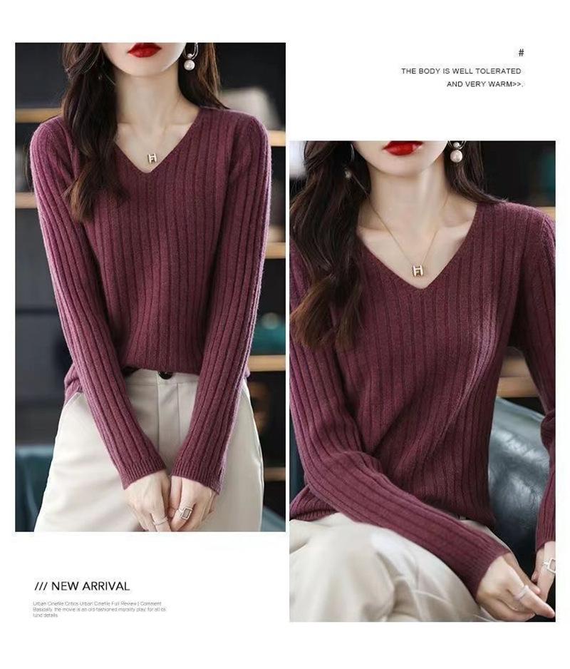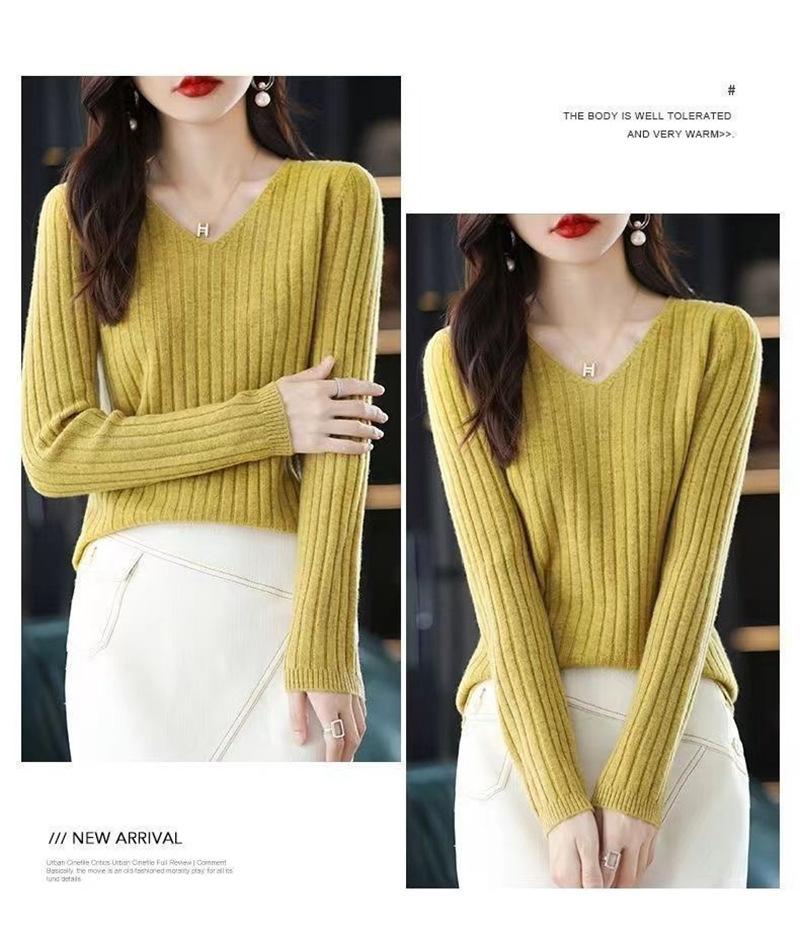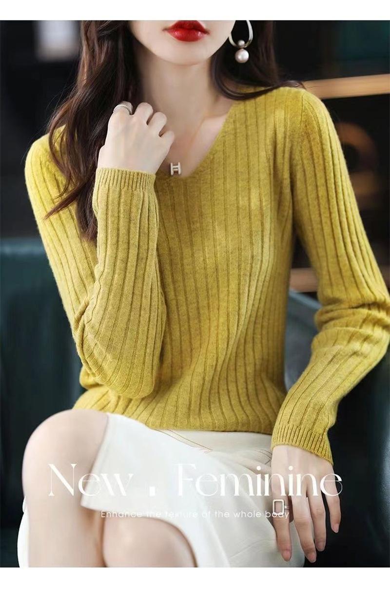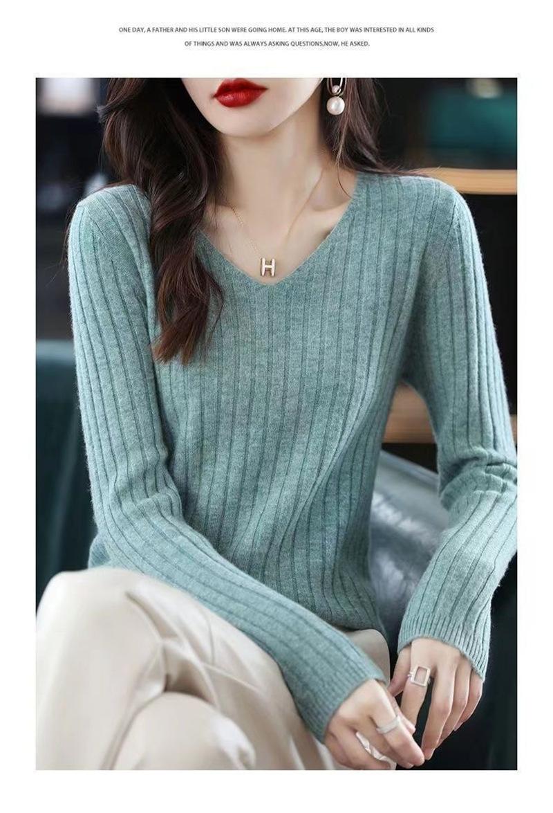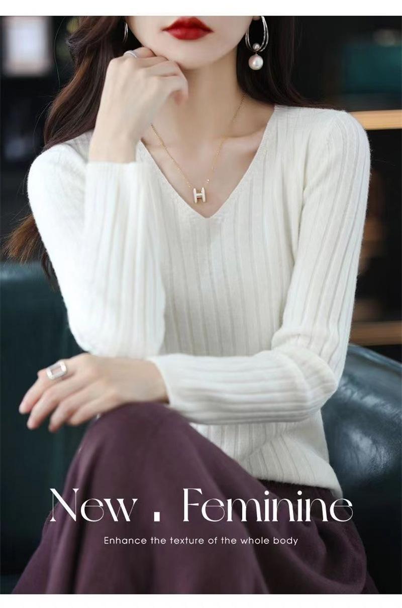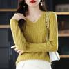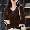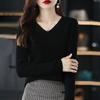 Nuevo Otoño e Invierno 2024 Estilo Coreano Suéter Ajustado para Mujer Suave Ceroso Cuello en V Tejido Jersey Camiseta de Fondo Top de Mujer