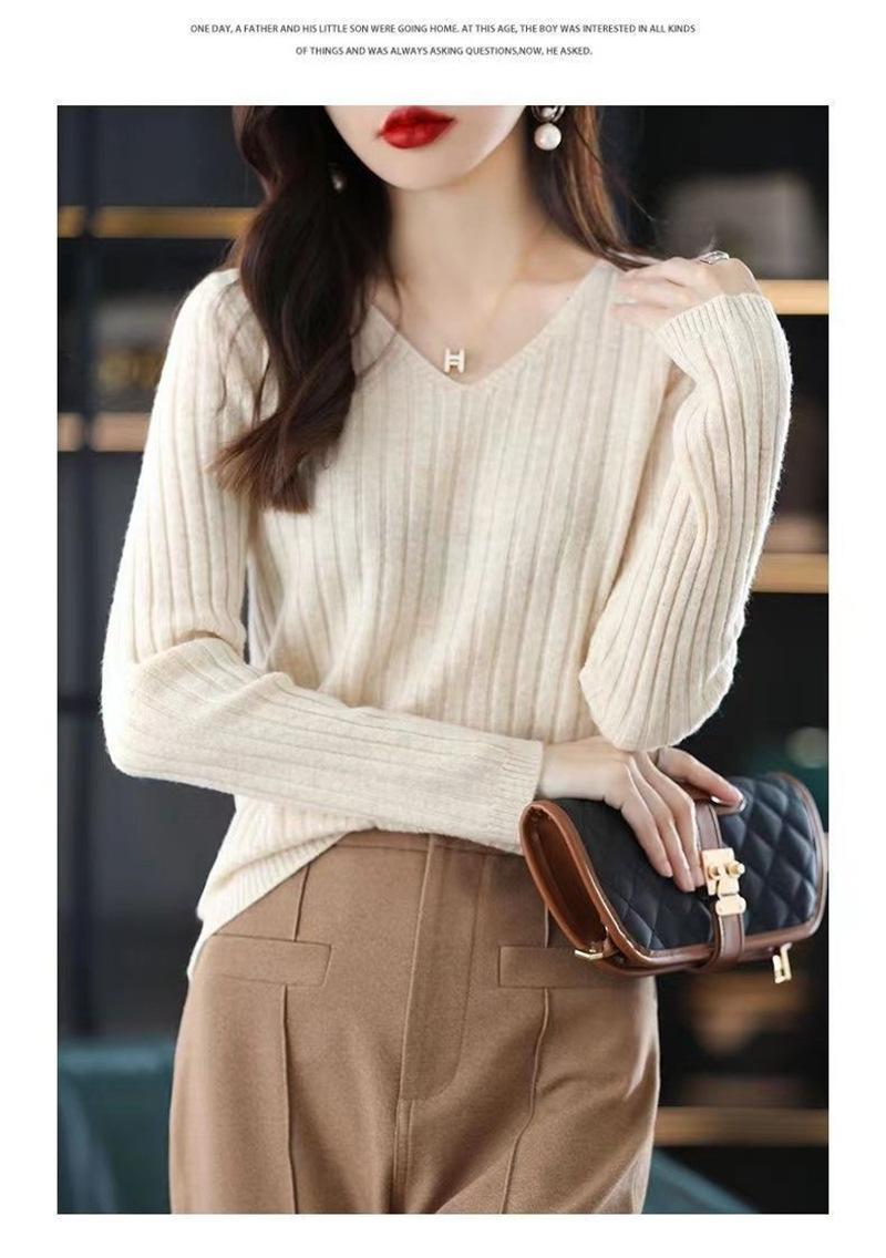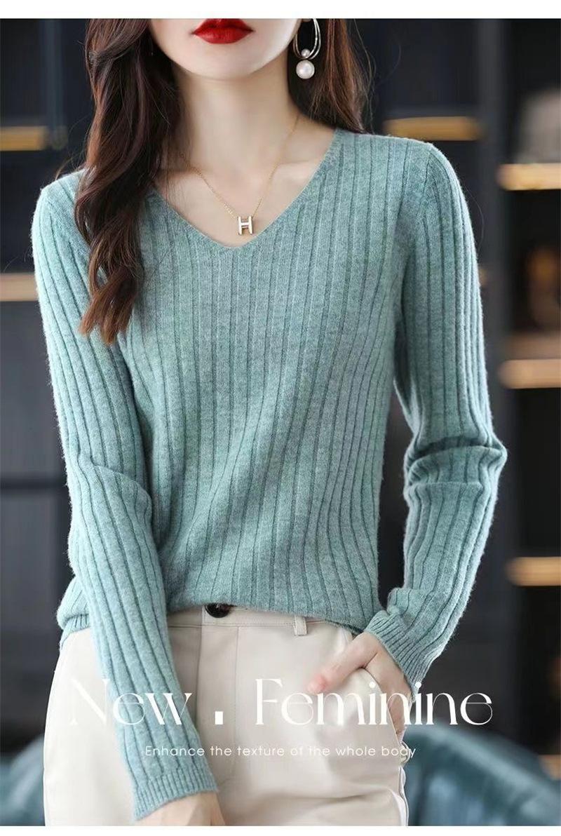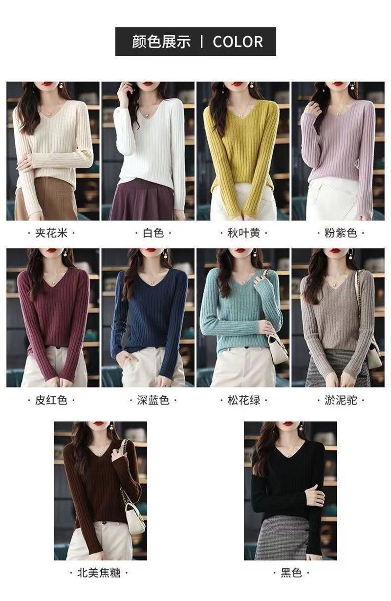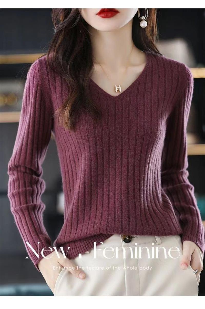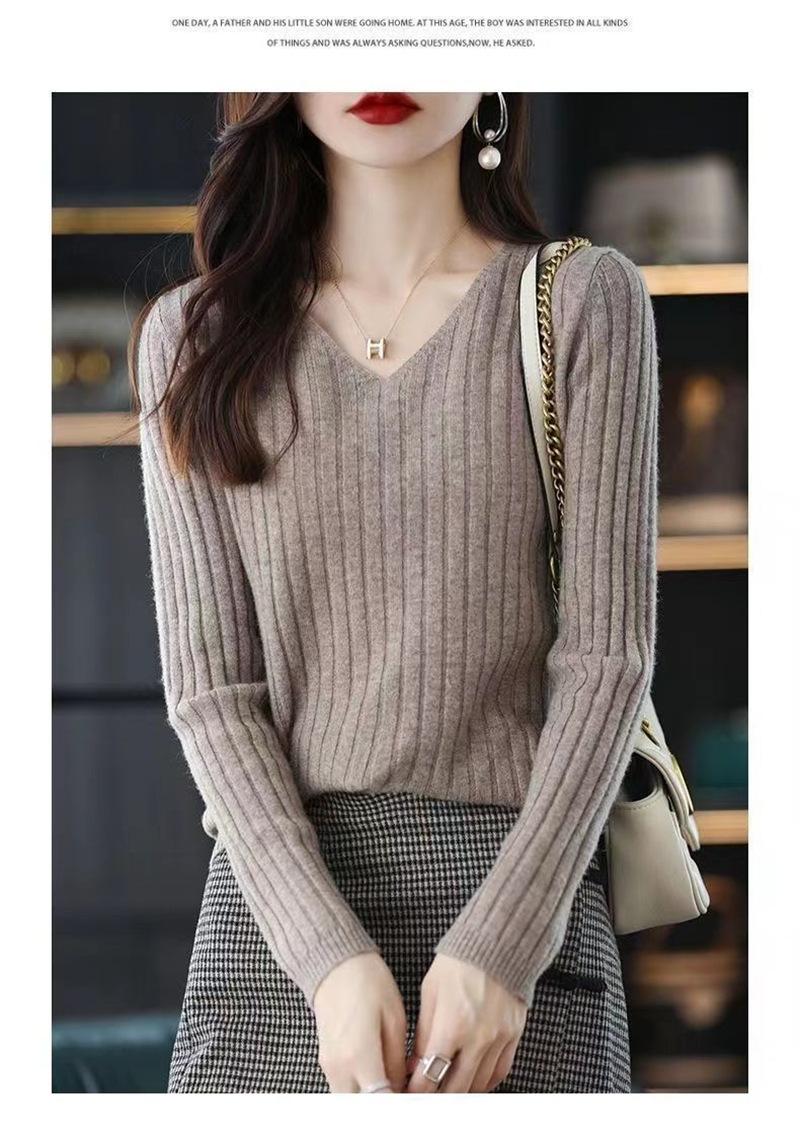Nuevo Otoño e Invierno 2024 Estilo Coreano Suéter Ajustado para Mujer Suave Ceroso Cuello en V Tejido Jersey Camiseta de Fondo Top de Mujer
