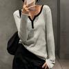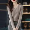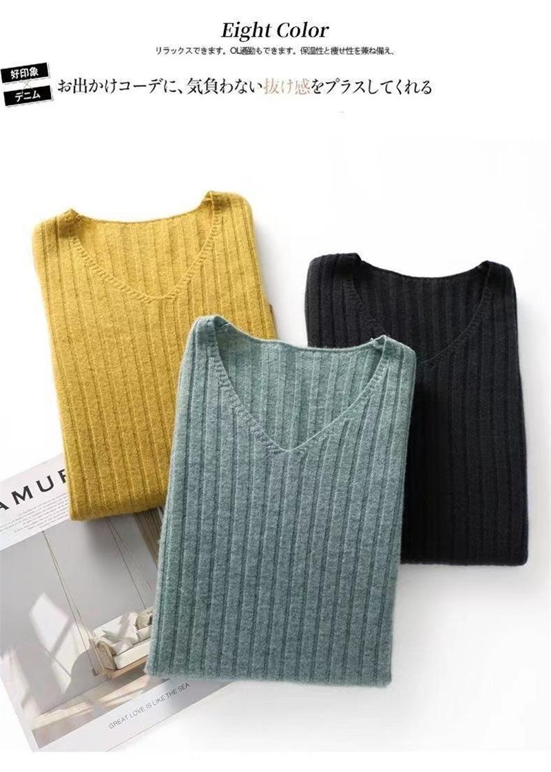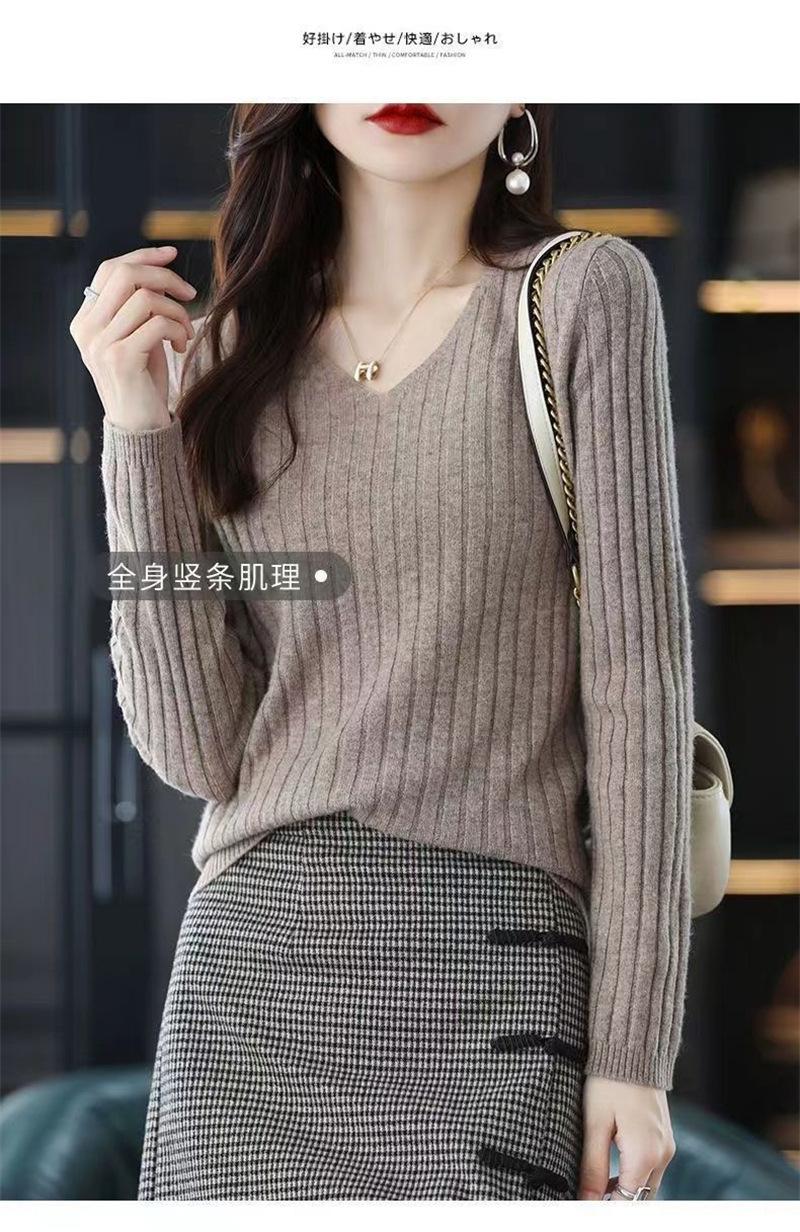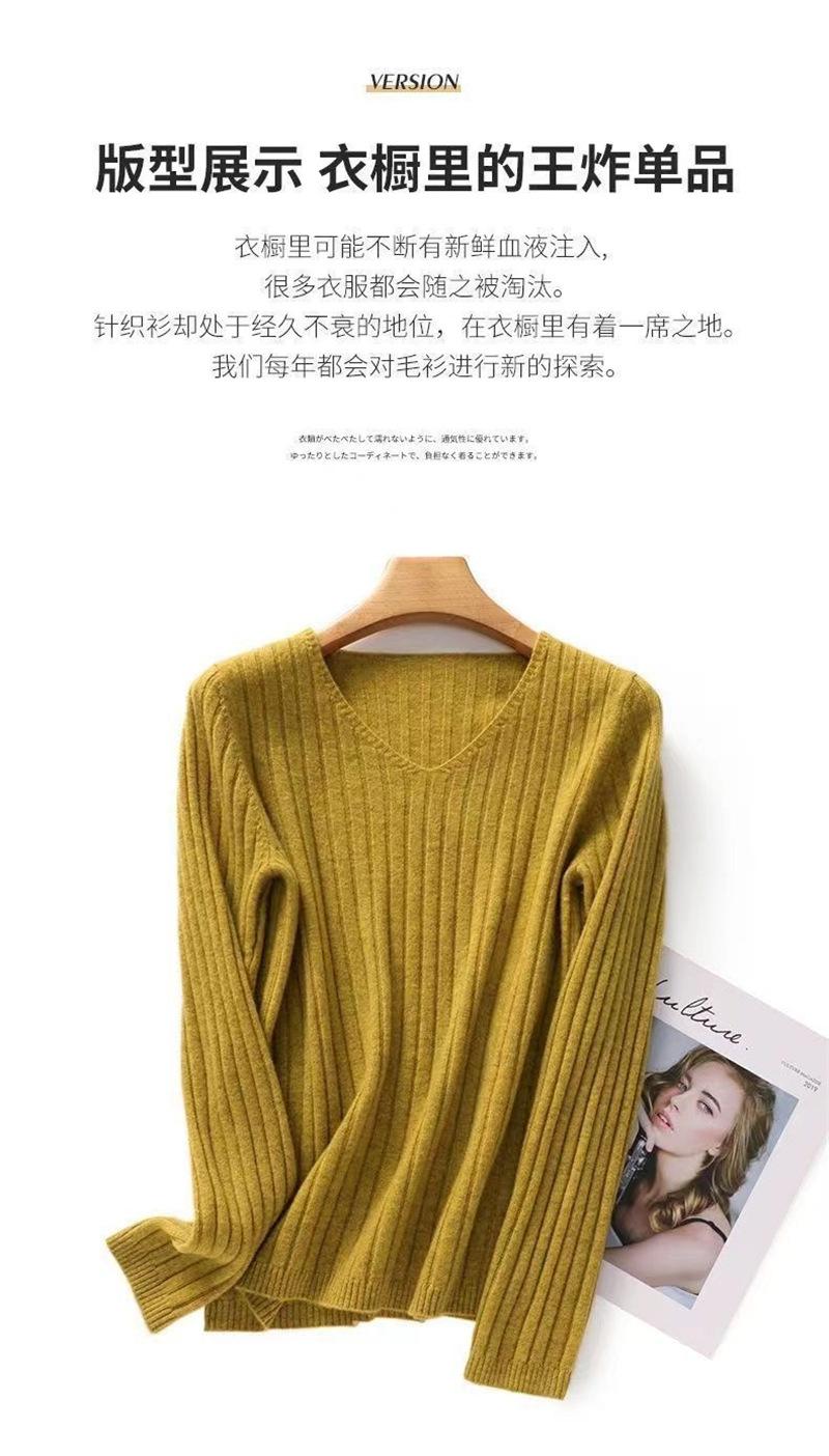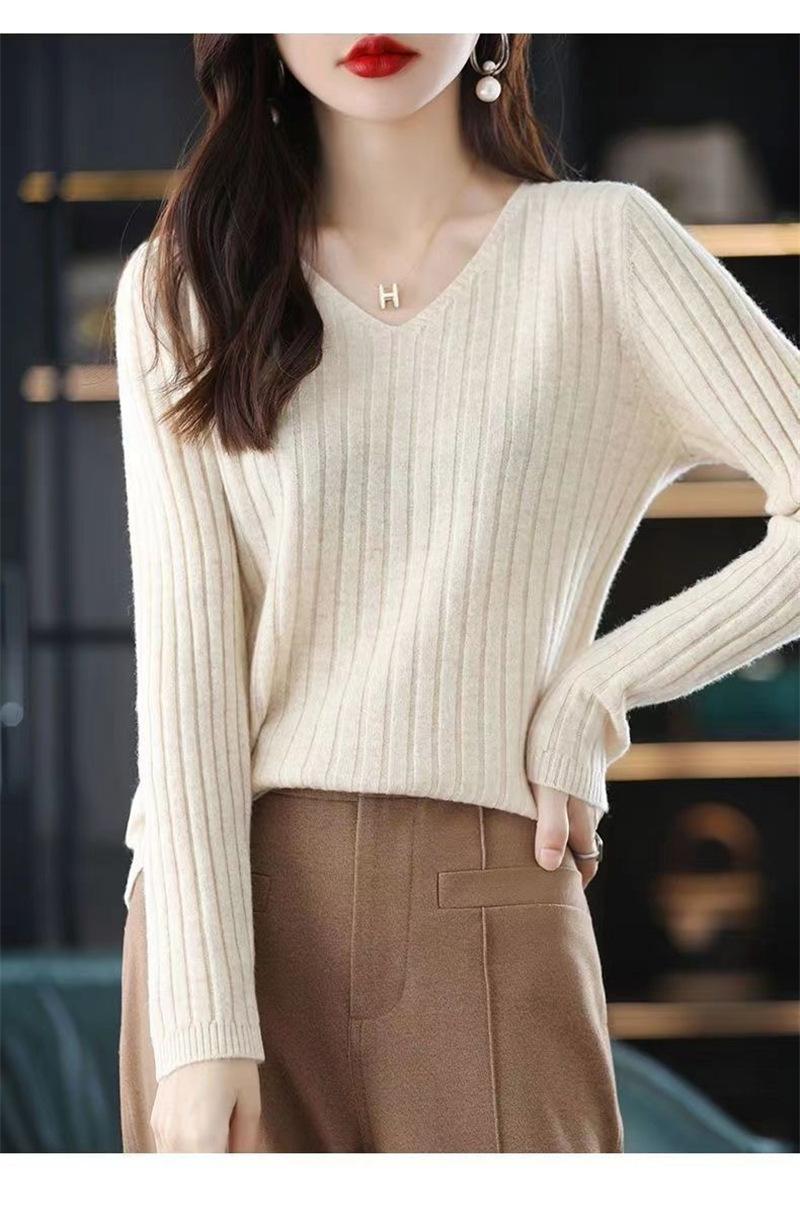Nuevo Otoño e Invierno 2024 Estilo Coreano Suéter Ajustado para Mujer Suave Ceroso Cuello en V Tejido Jersey Camiseta de Fondo Top de Mujer