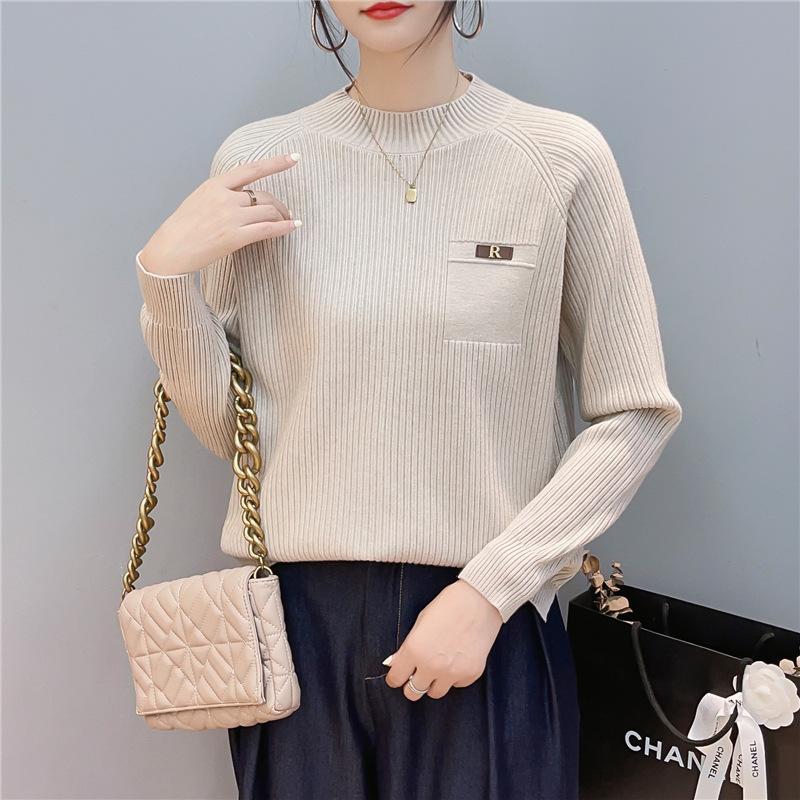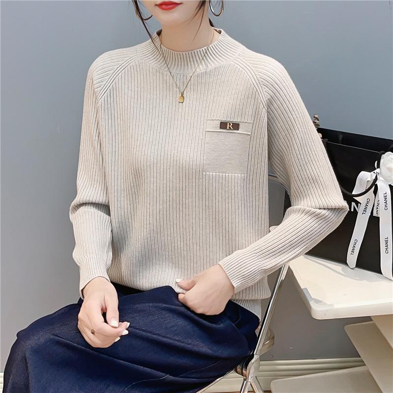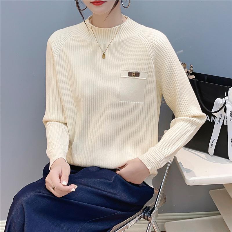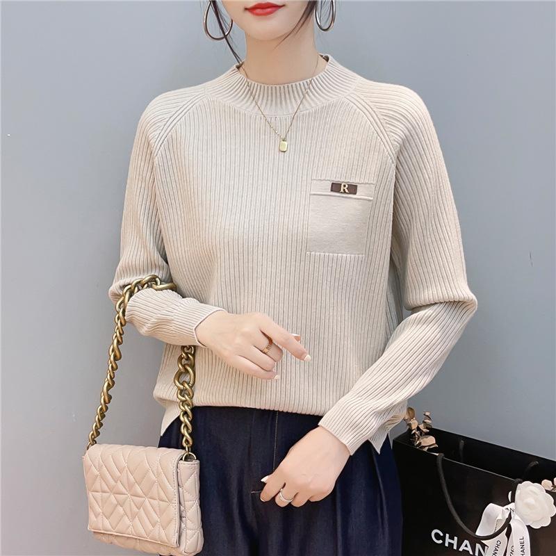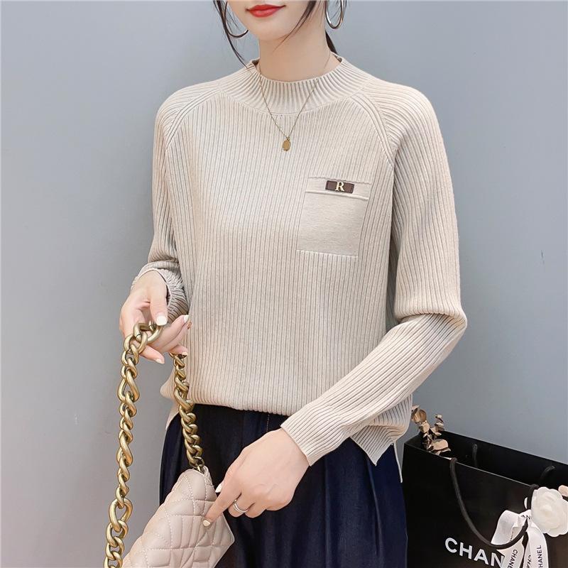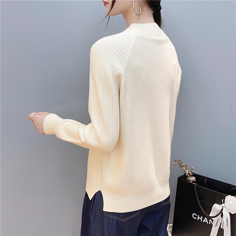 Suave Sensación de Cachemira Cuello Alto Primavera Tejido Camiseta Base para Mujer Otoño e Invierno Suave Color Sólido Suéter Pulóver Interior